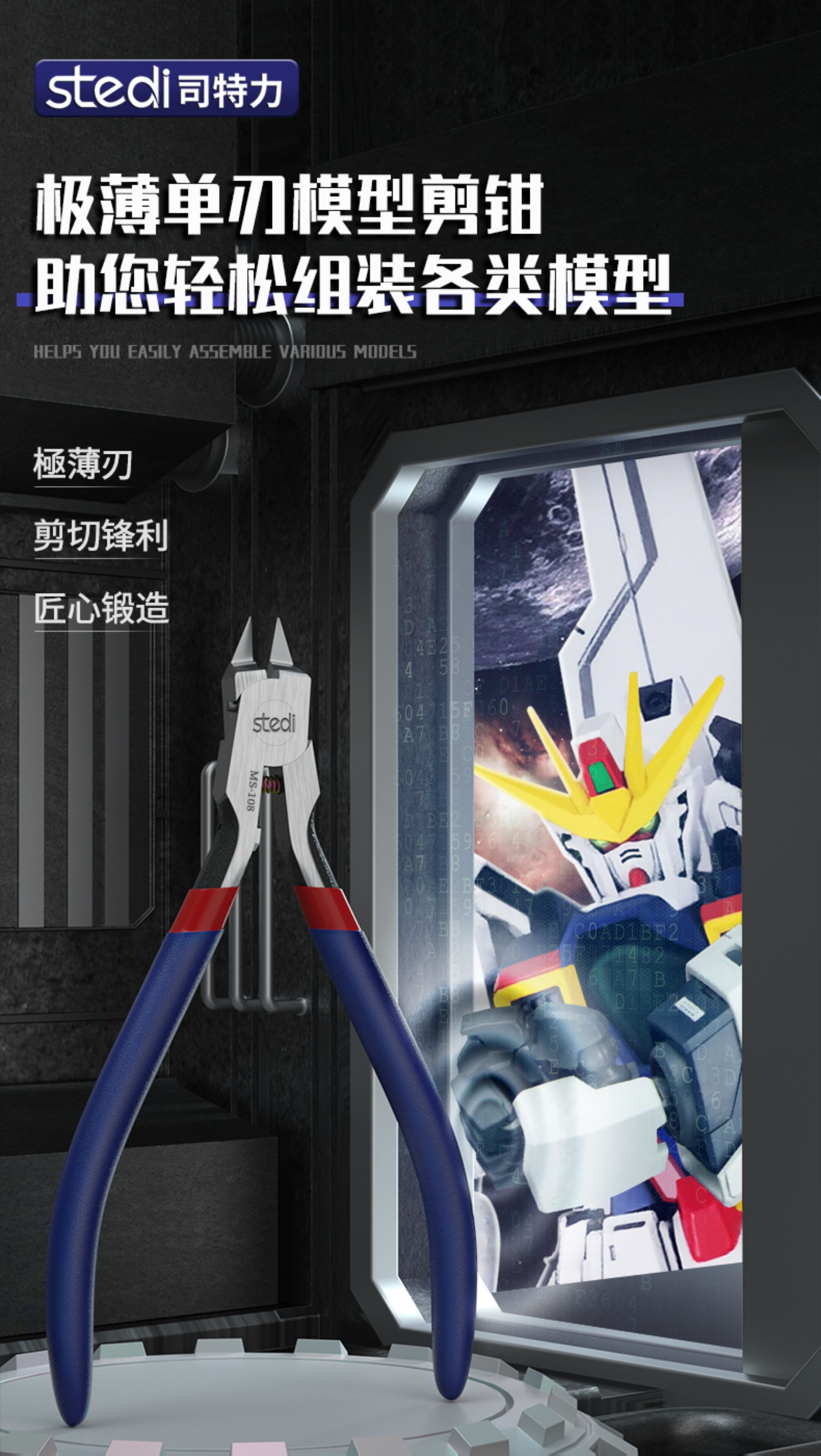 Stelite single-edged scissors MS-108 model nozzle pliers ultra-thin single-edged Gundam military model assembly tool thin blade God's Hand MS-108 high-end model