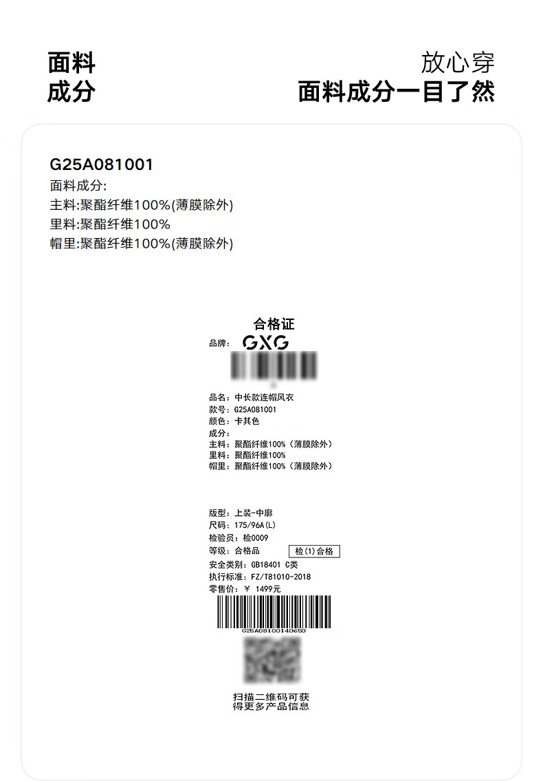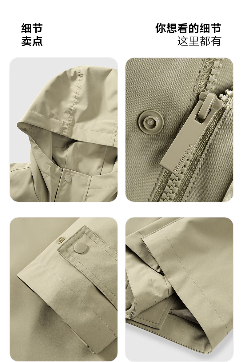 GXG Jingdong Outlet Men's Multicolor Commuting Fashion Mid-Length Hooded Jacket Windbreaker Jacket Khaki 2XL