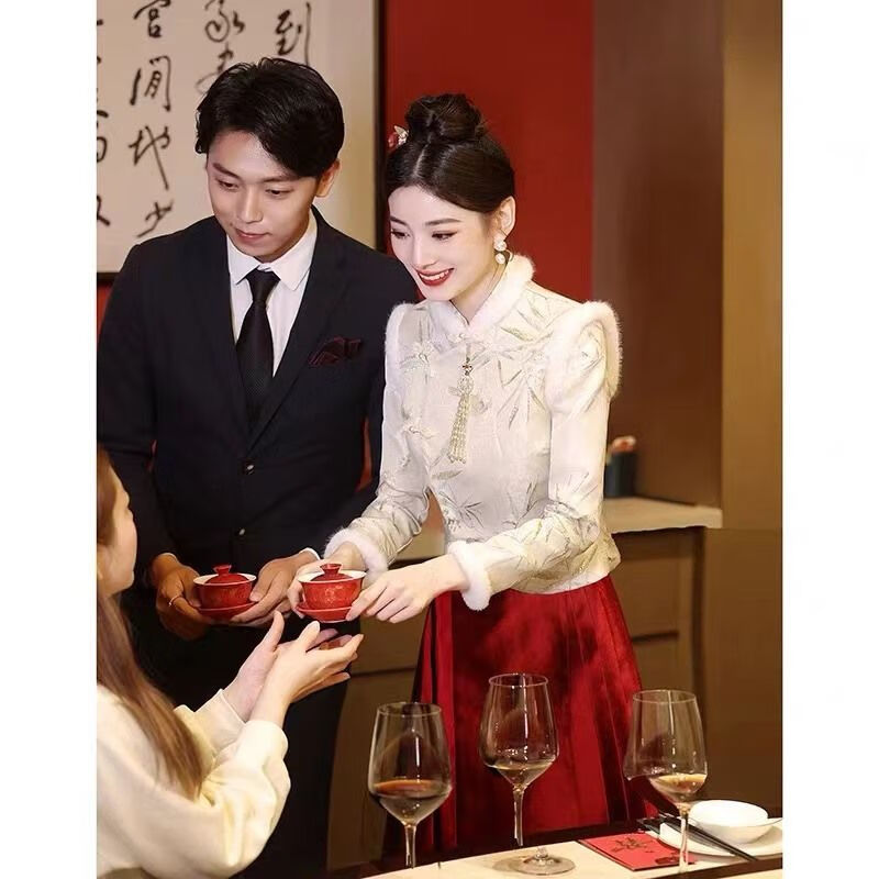 Hengyuanxiang plus size female fat mm new Chinese style Chinese style quilted thickened dress furry button top horse face skirt suit 200Jin Jin equals 0.5kg top + Phoenix print horseface skirt L recommended 100-120Jin Jin equals 0.5kg