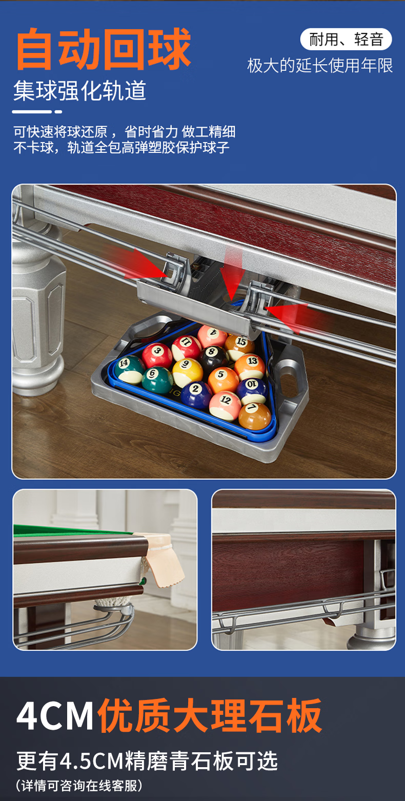 PNT (delivery package installation) pool table marble standard adult home American black eight billiards commercial table 9 feet silver wooden library + automatic ball collection model best-selling in the store Chinese black eight standard table