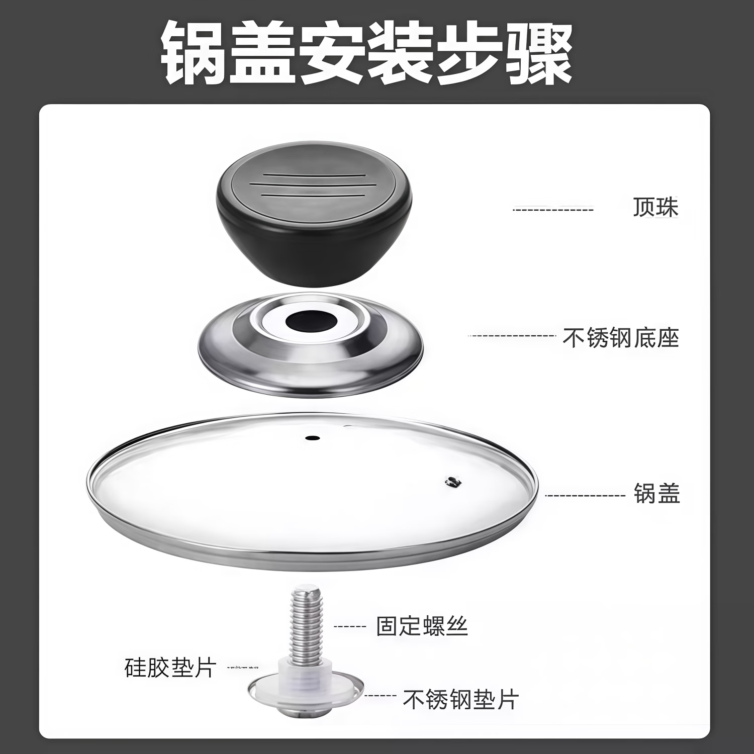 Limited sale, pot lid handle anti-scalding accessories, wok, steamer, glass pot lid, bead handle cap on top of lid, event, 1 shot, 2 shots, 1 pot lid + 1 set of screws