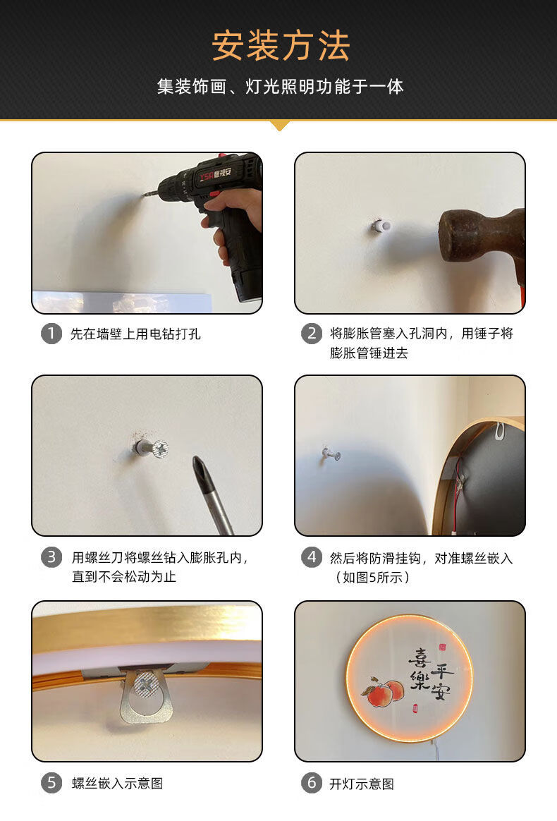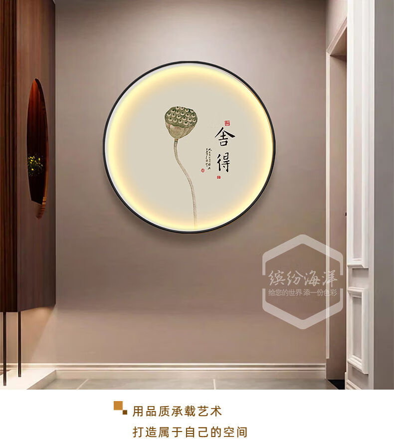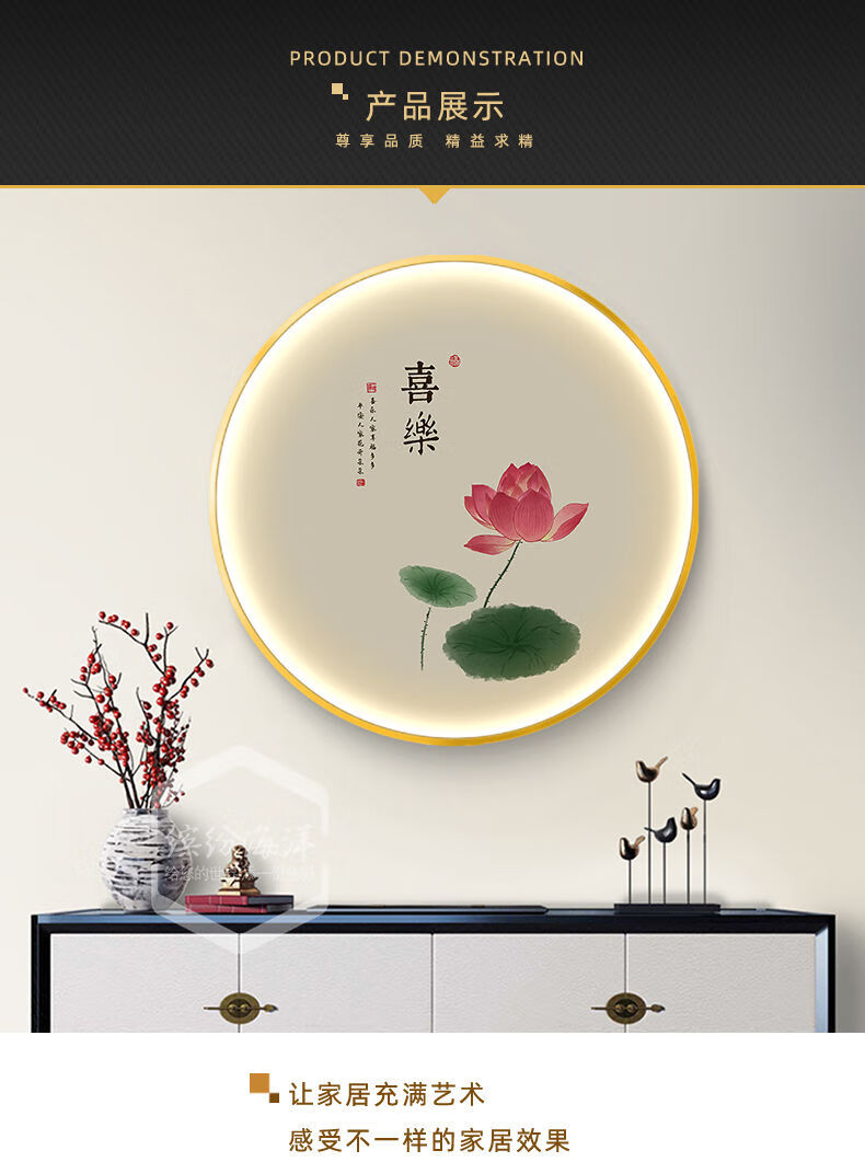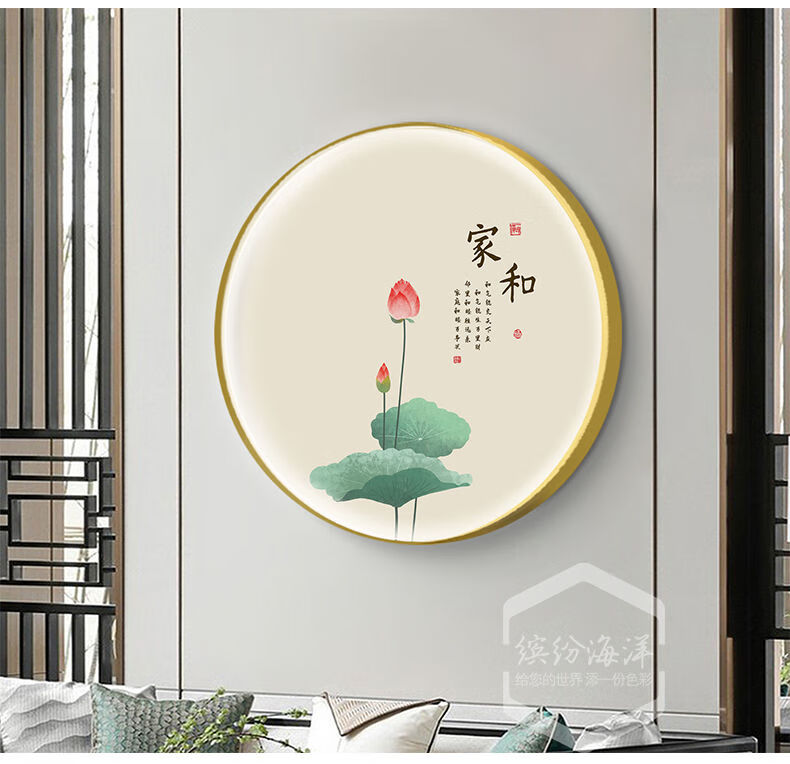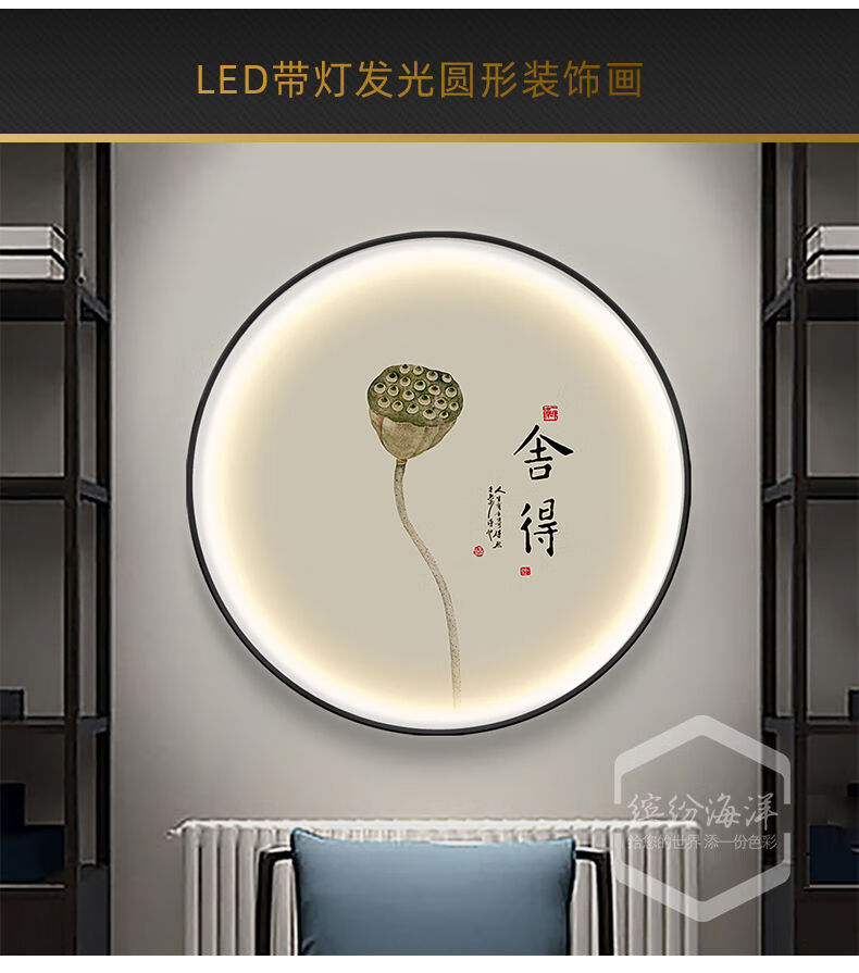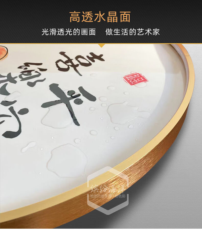 Fantasy circular decorative painting living room lamp painting tea room hanging painting atmosphere layout mural 34528 40x40 noble aluminum frame high transparent crystal surface (with light) gold frame (aluminum alloy frame)