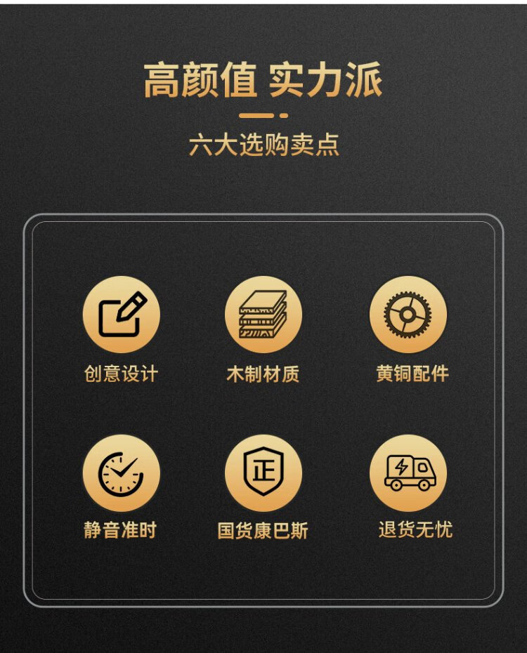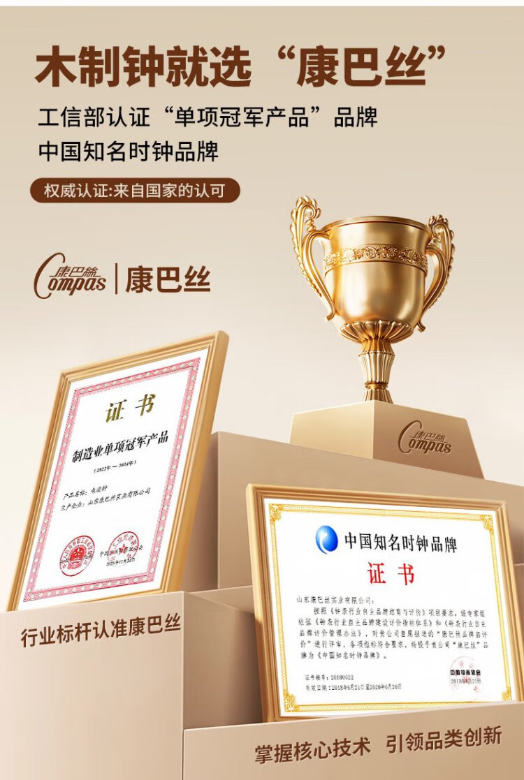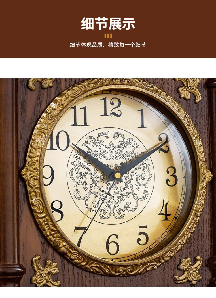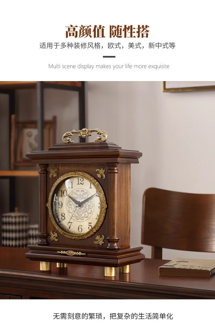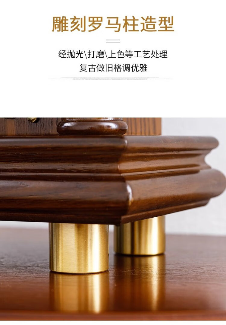 Compas new Chinese style solid wood clock, light luxury brass home living room clock, European and American retro table clock, classical clock ornaments, brass column style - metal dial