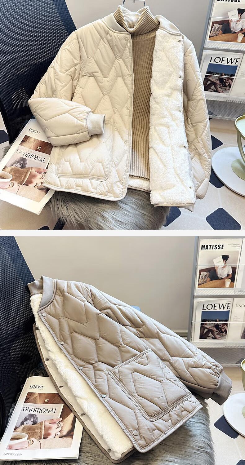 Lamb velvet cotton-padded jacket for men in winter, middle school and high school uniforms, with down-padded jackets, Northeast minus 30 cold-proof cotton-padded jackets SX2533 - off-white full body plus velvet, same style for men and women M 110-120Jin Jin is equal to 0.5 kg