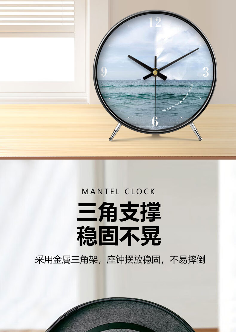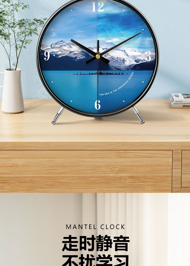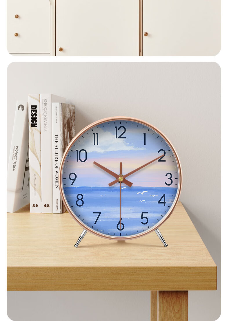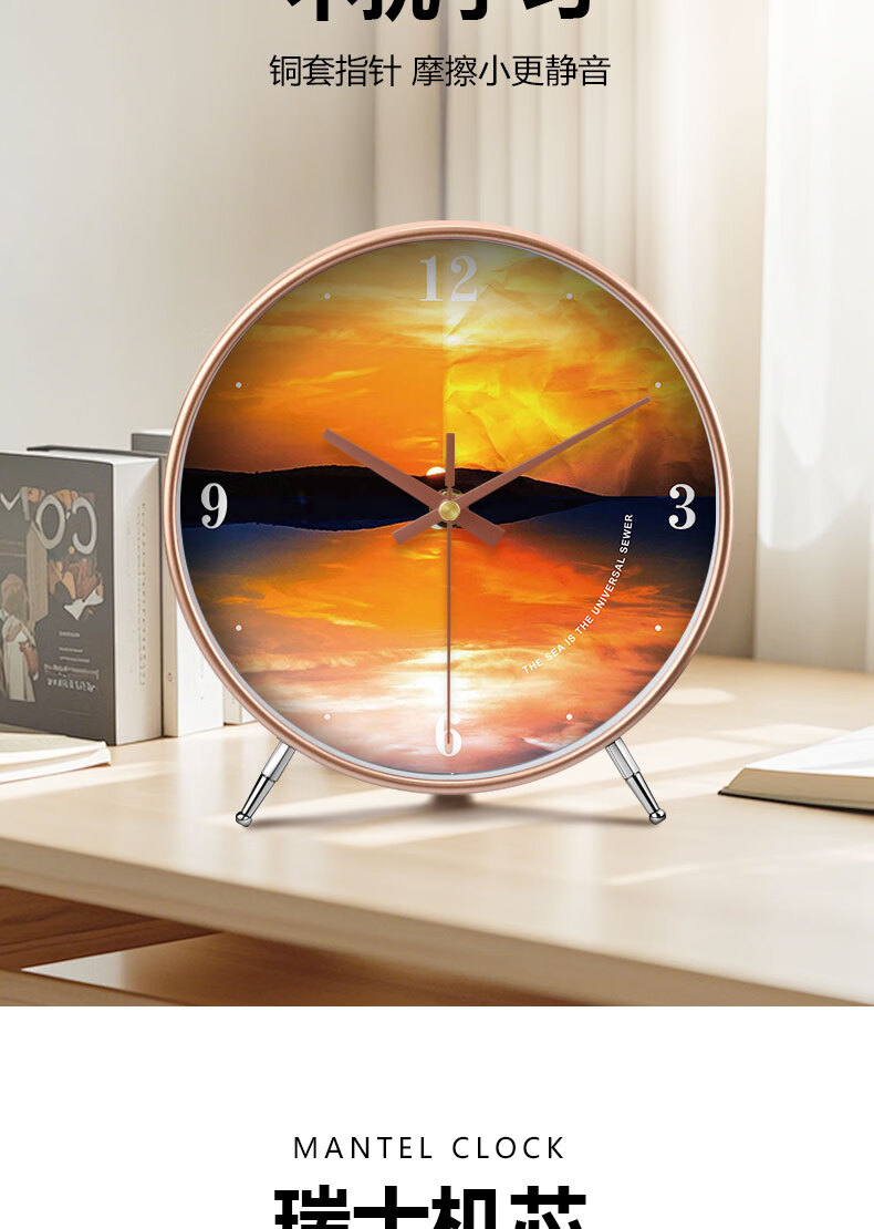 Ocean display clock, table clock, living room ornaments, home desktop high-end table clock, simple and atmospheric clock, modern creativity, table clock A839 gold, Swiss movement, accurate and durable, 8 inches in diameter, 20 cm