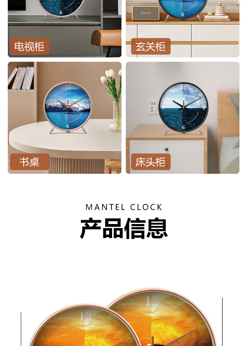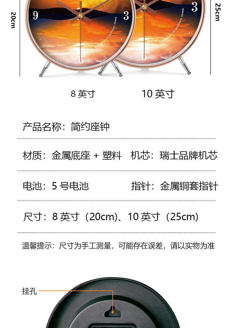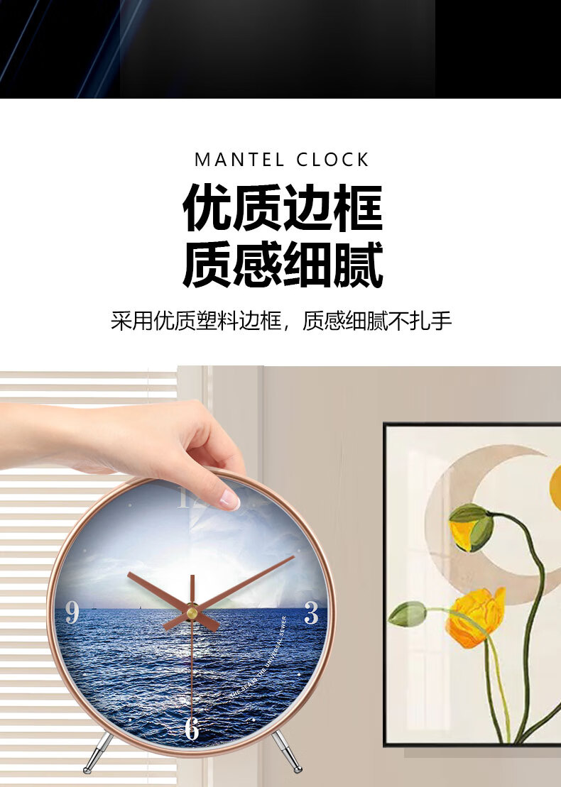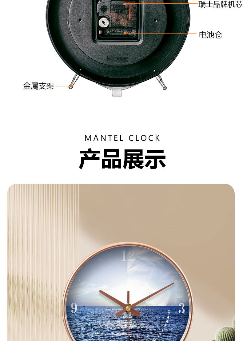 Ocean display clock, table clock, living room ornaments, home desktop high-end table clock, simple and atmospheric clock, modern creativity, table clock A839 gold, Swiss movement, accurate and durable, 8 inches in diameter, 20 cm