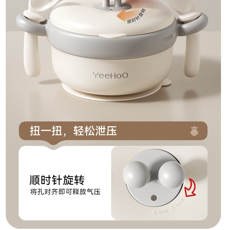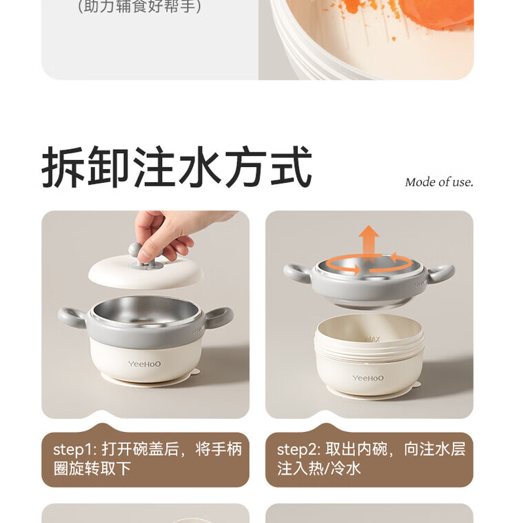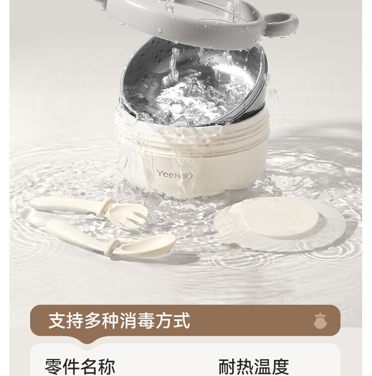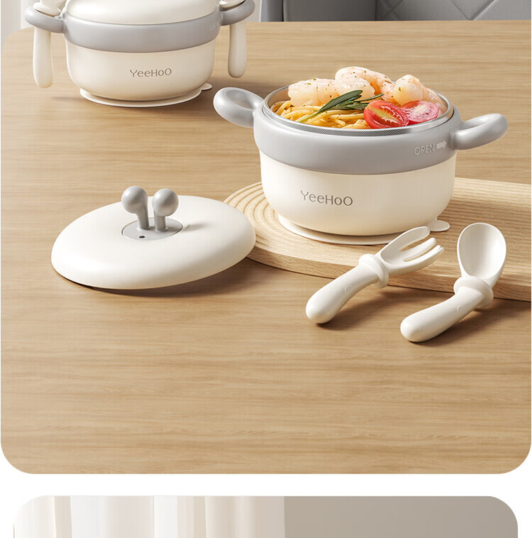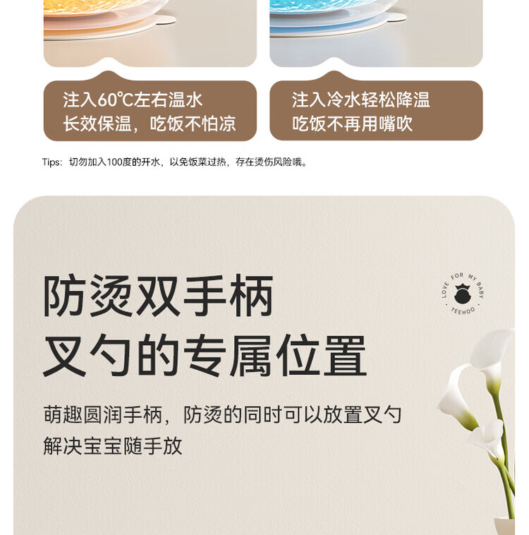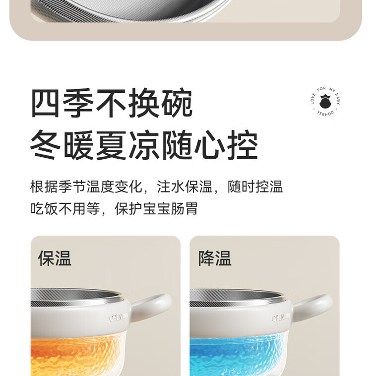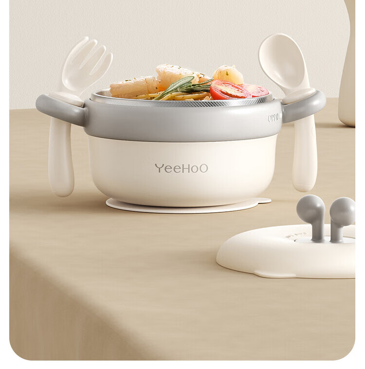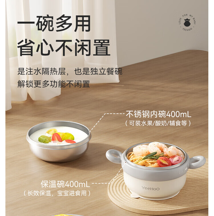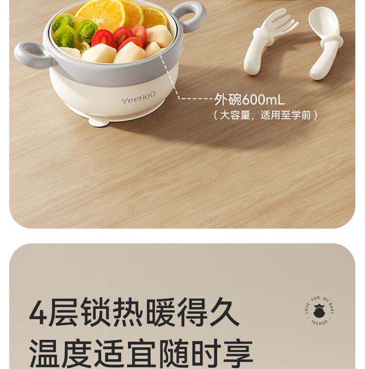 TLXT German quality baby food bowl, infant special water-insulated rice noodle constant temperature set for infants and young children, crab treasure water-filled bowl, four-layer temperature lock, 316L stainless steel liner, with fork and spoon