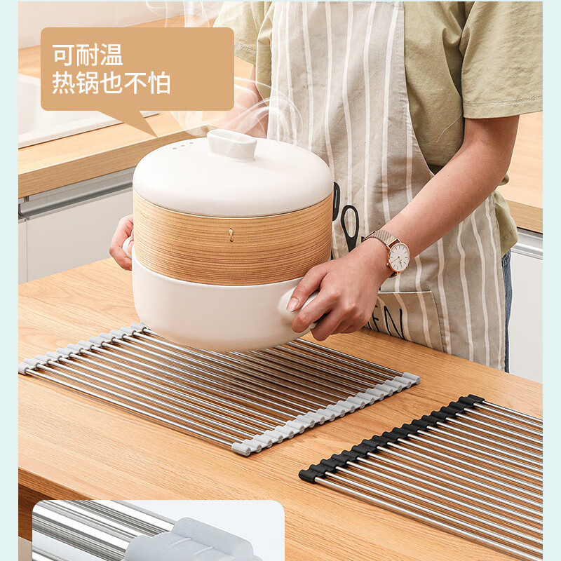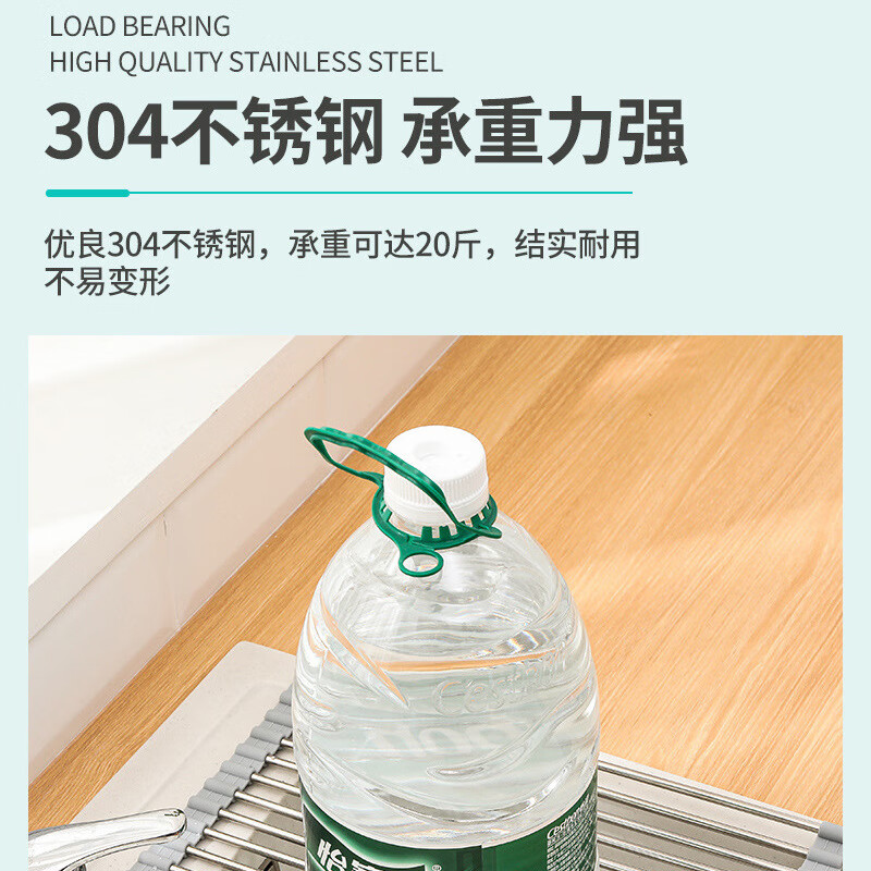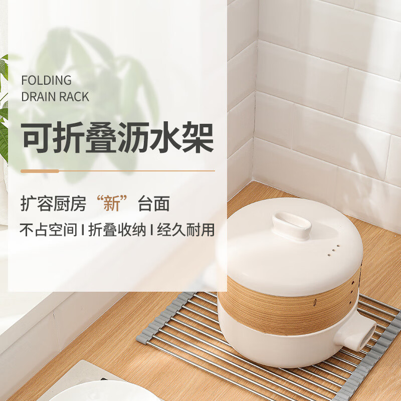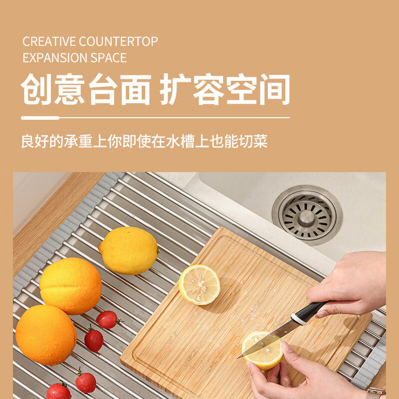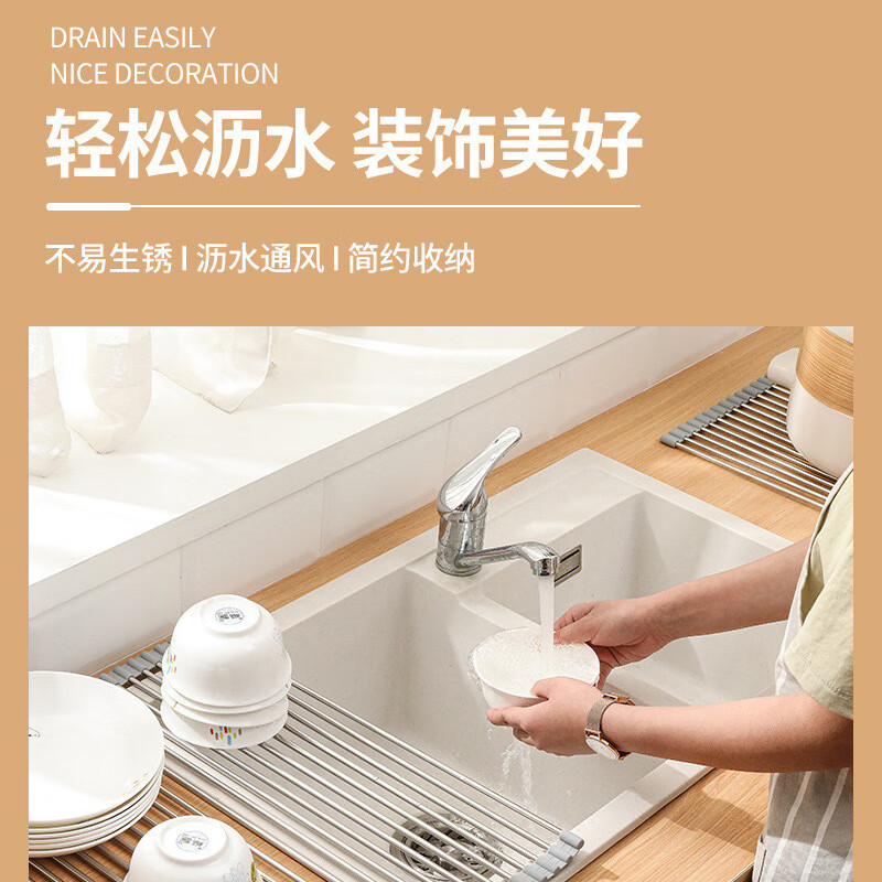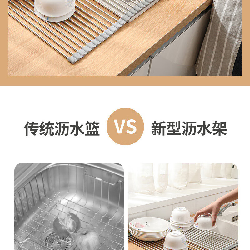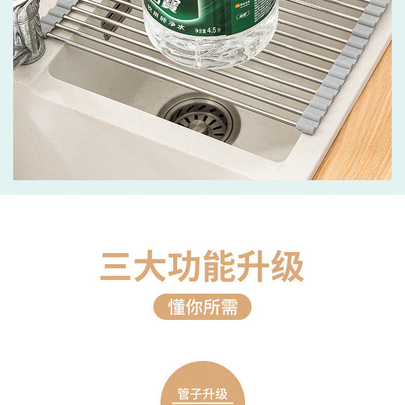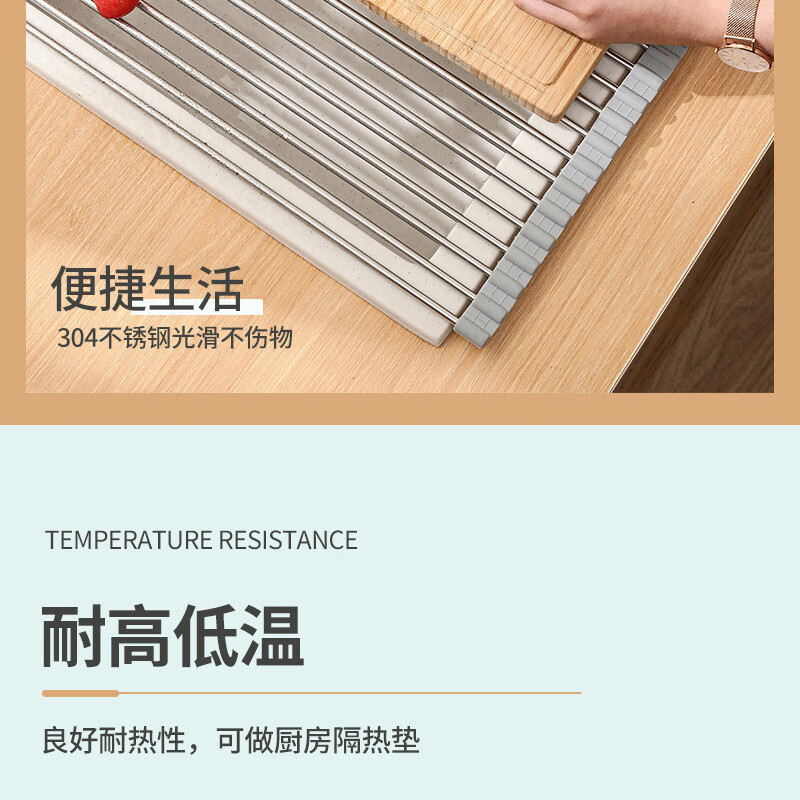 Stainless steel drain roller curtain kitchen sink drain rack foldable drain rack mildew-proof silicone storage rack jt large thickened drain rack-folding storage kitchen expansion/takes up no space/high and low temperature resistance