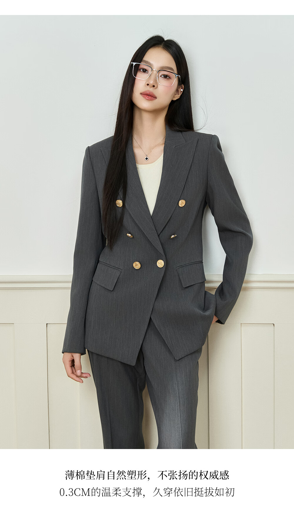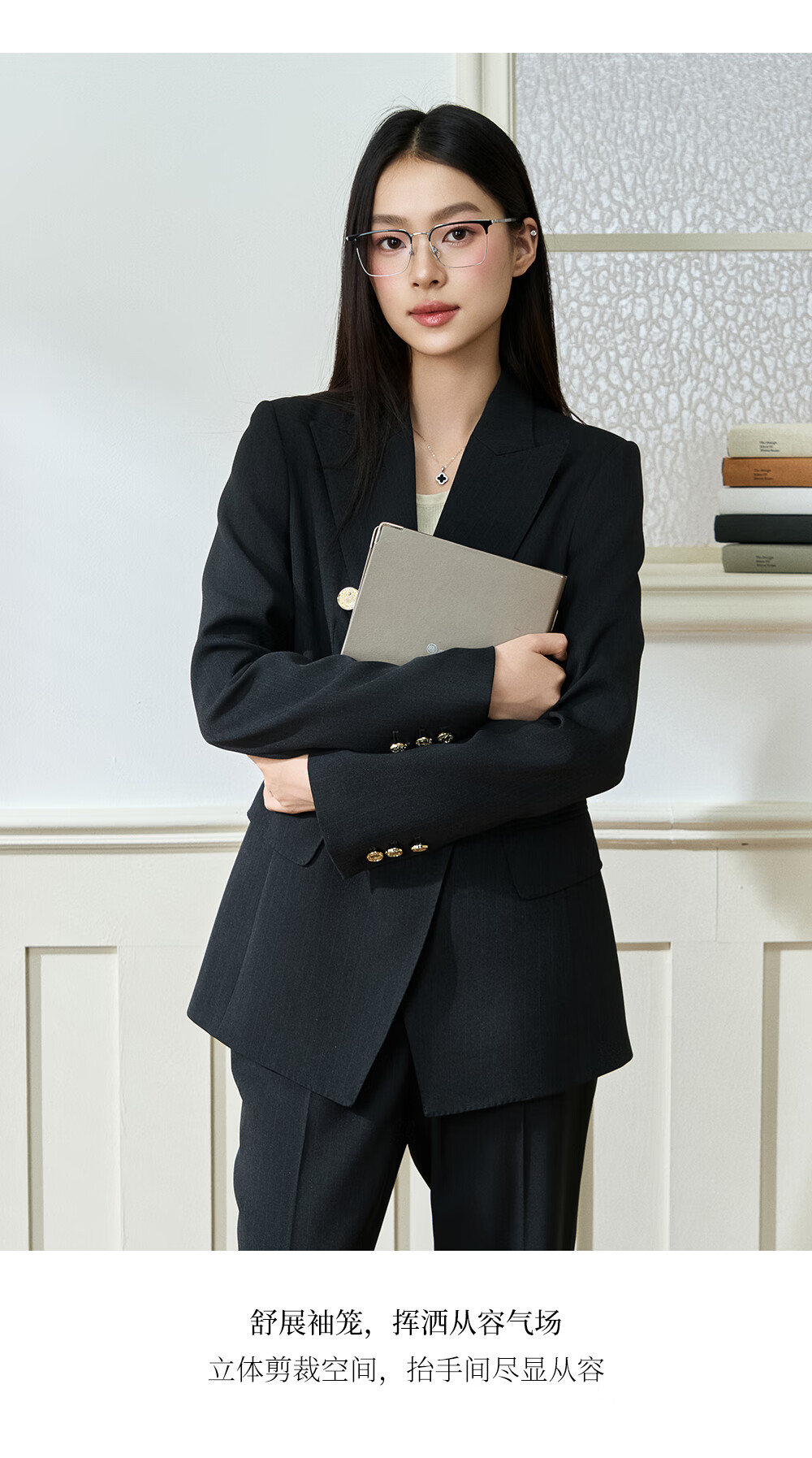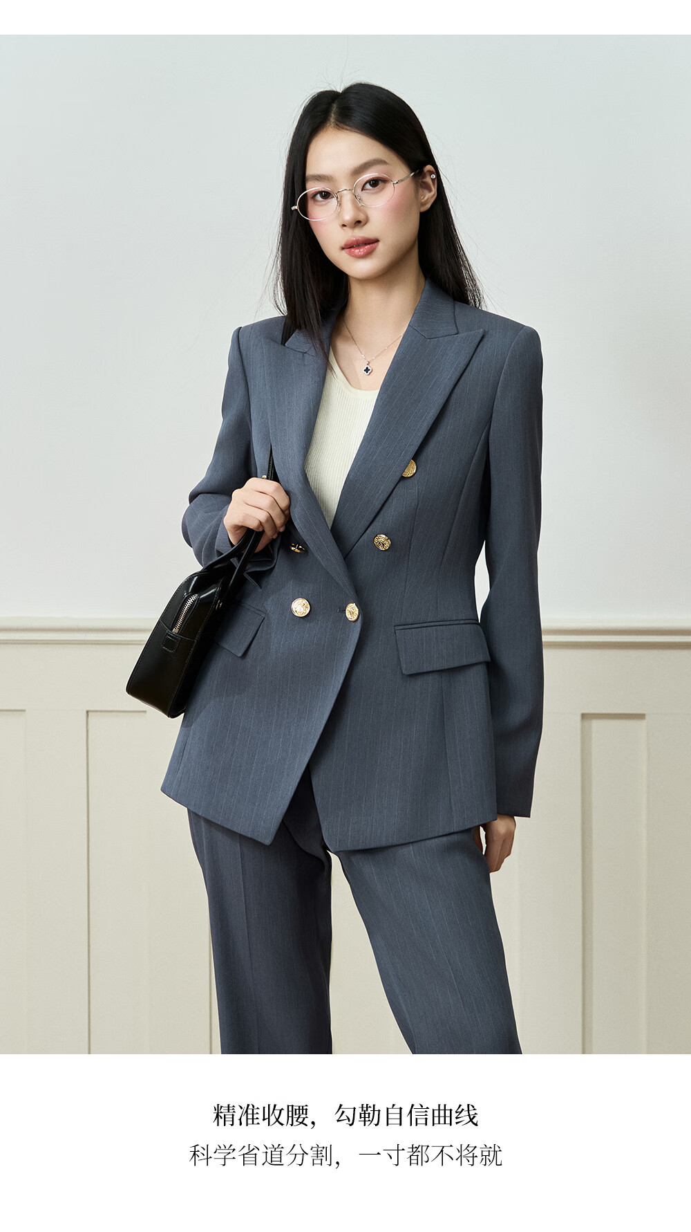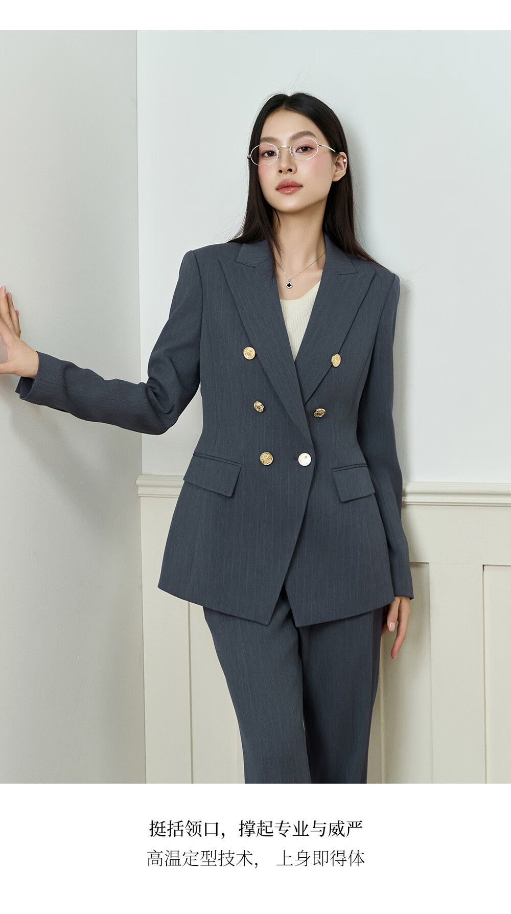 Lady Bird suit suit for women, high-end professional formal wear, business workplace commuting suit, twilight gray blue, high-definition striped style XL, suitable for weight 120-130 Jin Jin equals 0.5 kg