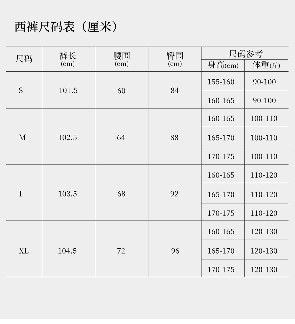 Outseam (cm) 99 cm 101.5 cm 104 cm 106.5 cm 109 cm
