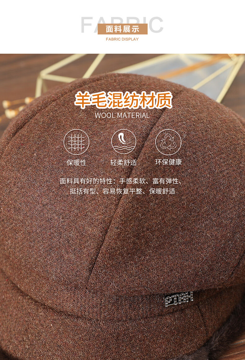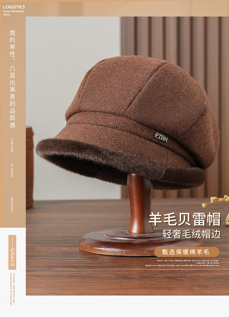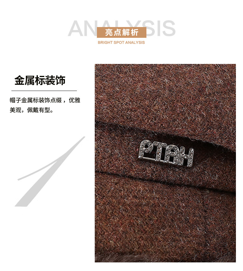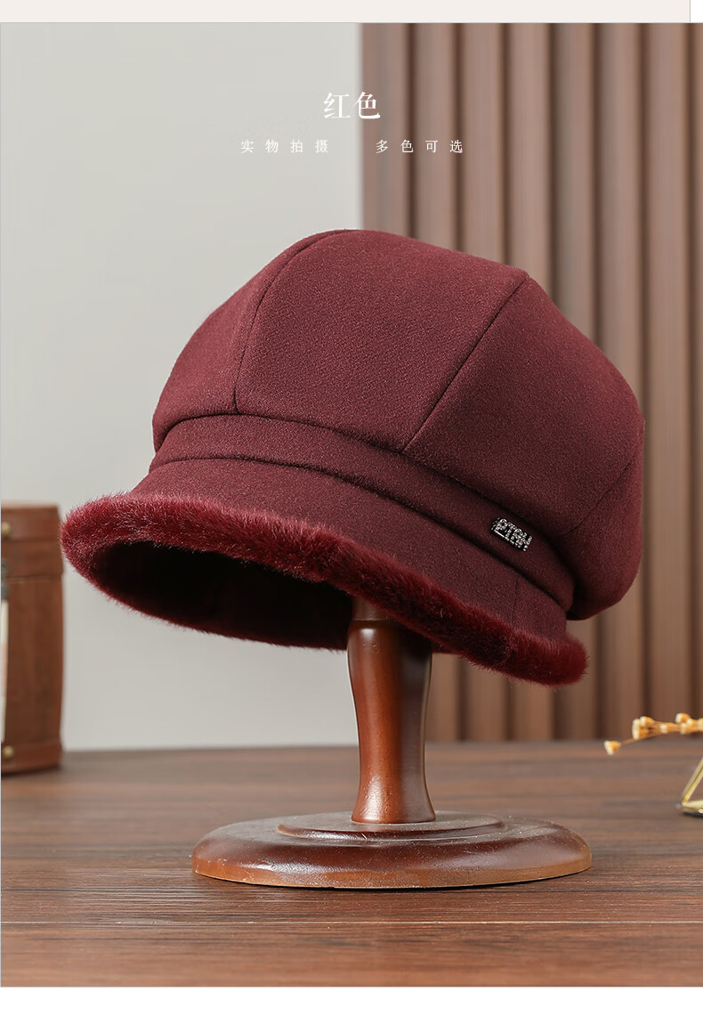 PTAH hat women's octagonal beret autumn and winter versatile wool hat blended bud fashion simple face showing small street keeping warm black