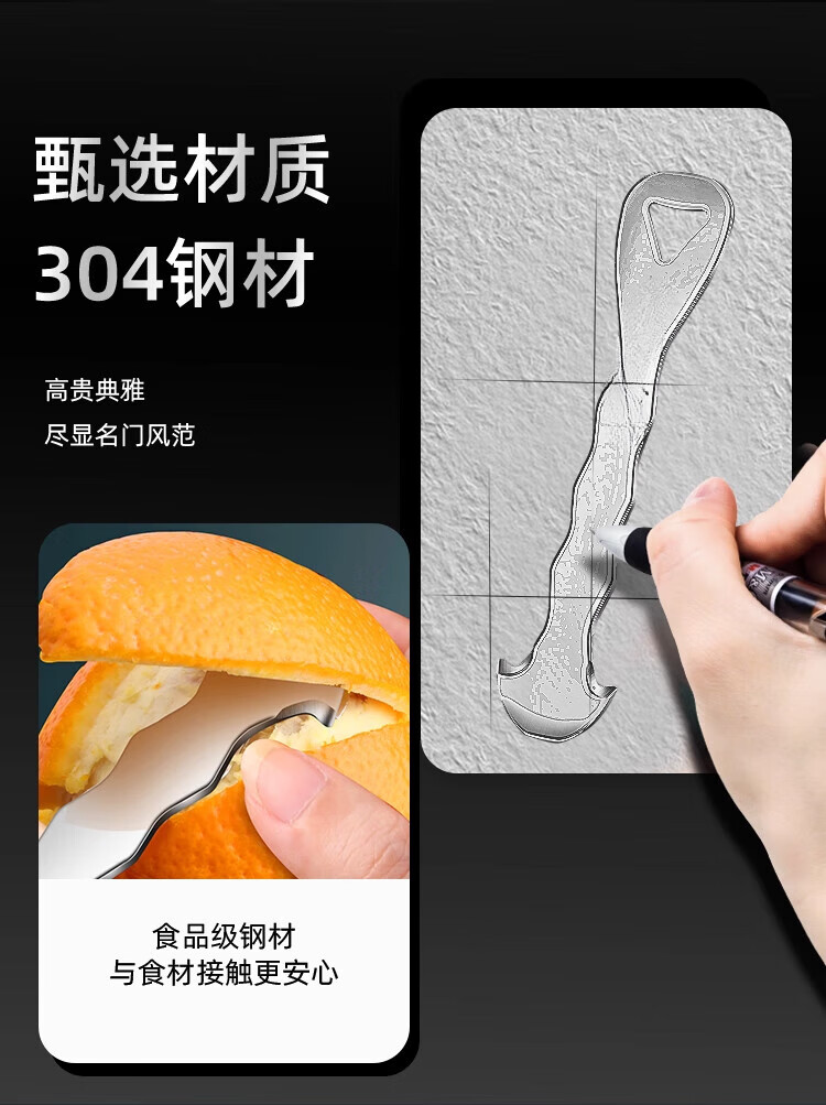 Meishute orange peeling tool 304 stainless steel navel orange orange opener orange grapefruit tool Wogan peeler orange peeling knife Maiman 304 orange peeler ax-shaped double blade