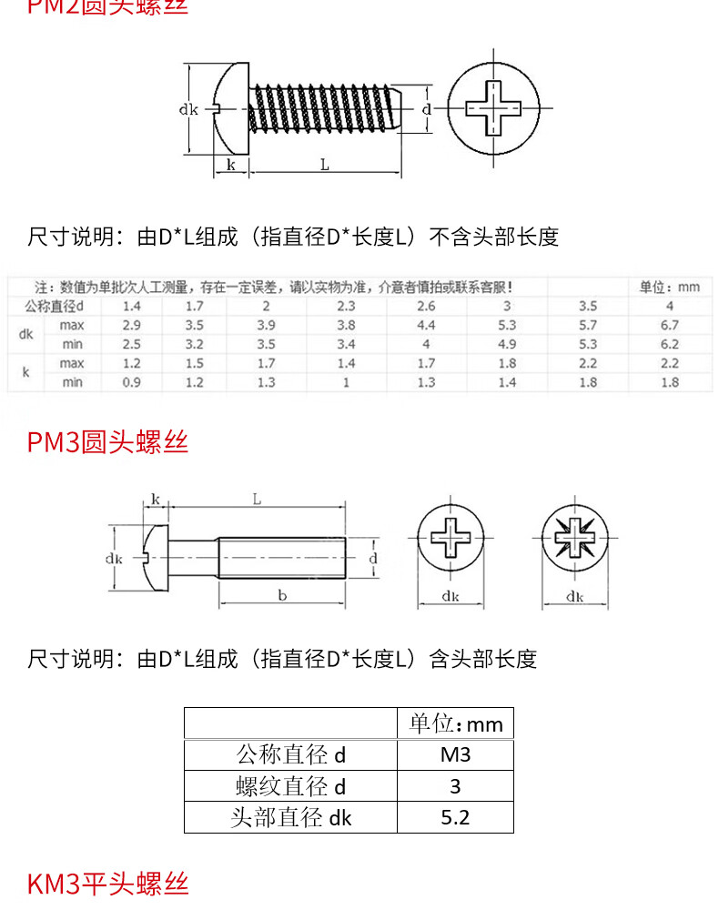PM2/PM3/KM3/PWM3 round head flat head cap screws Phillips screws M3*5/6/8/10/12/20, etc. Round head_PM2*3 (100 pieces) No Specifications