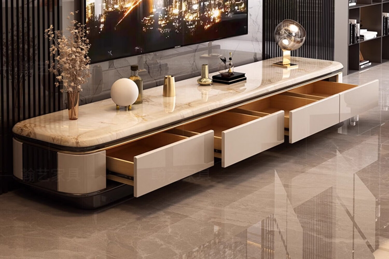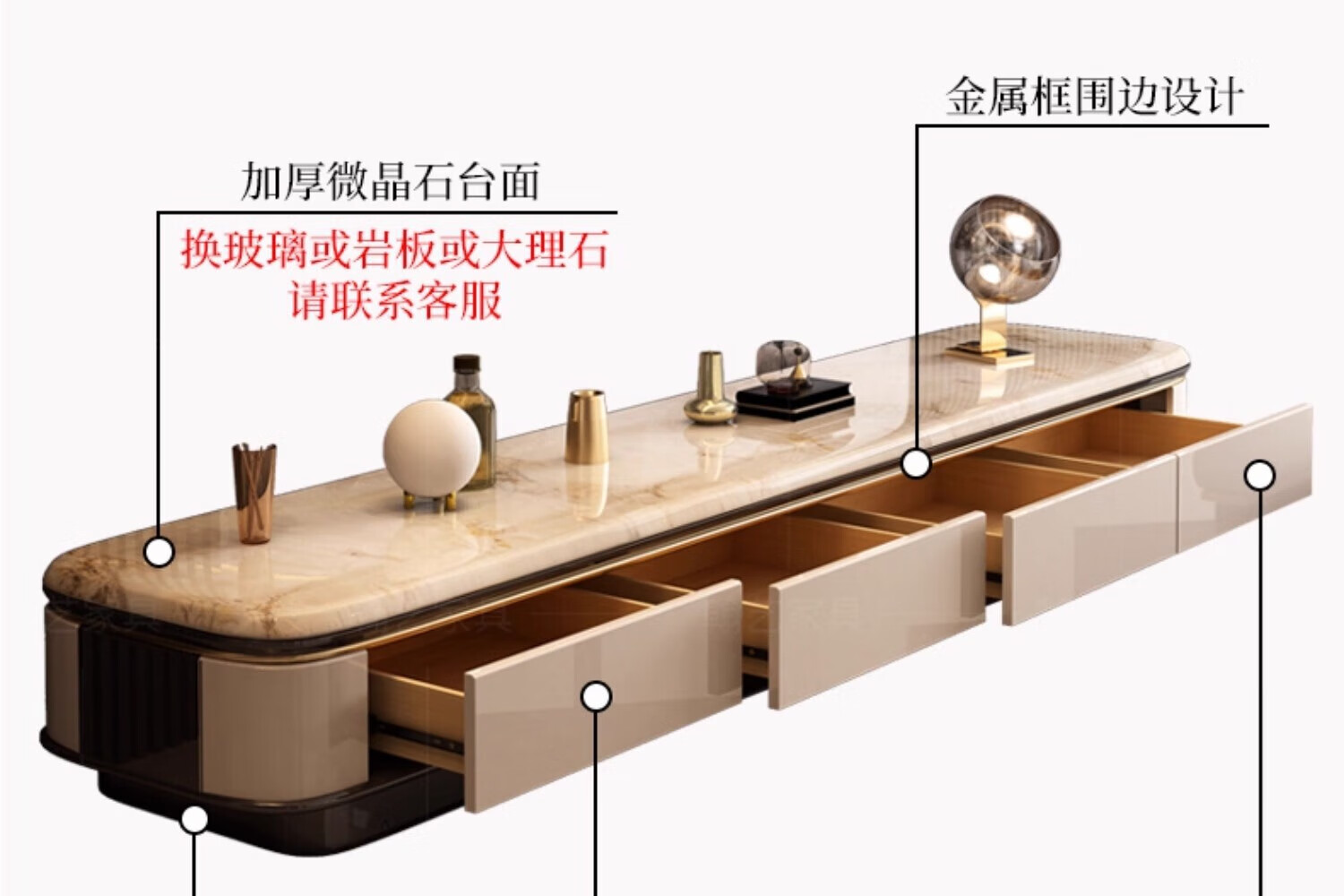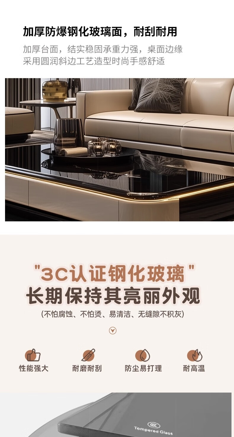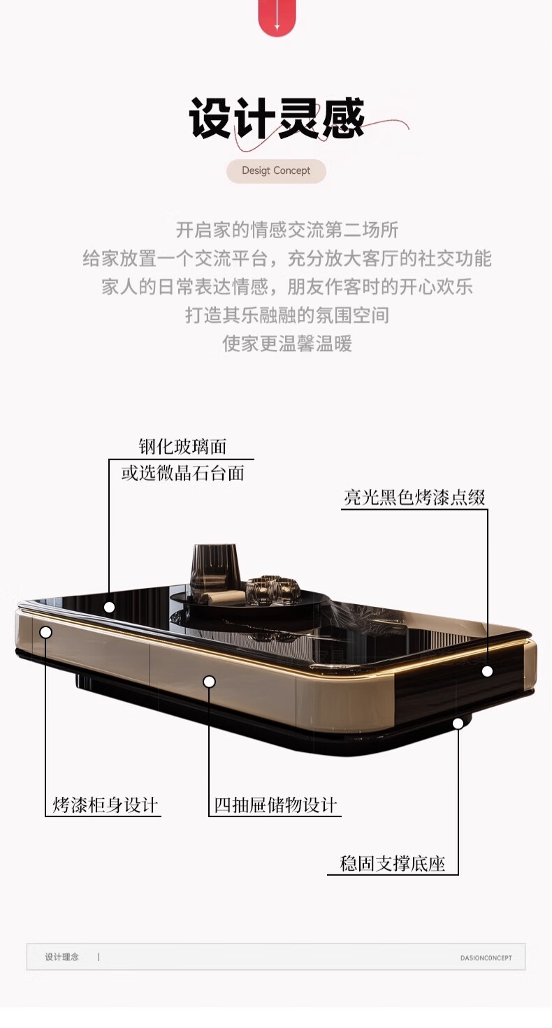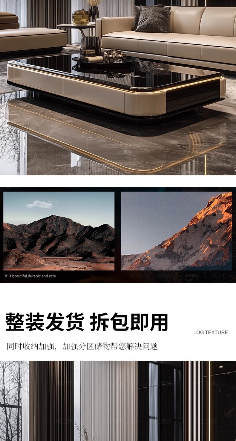 Aiyoushang light luxury high-end coffee table living room home Italian minimalist 2025 new tea table microcrystalline stone creative modern tea table A220 coffee table glass table + four drawers 140*80*40cm