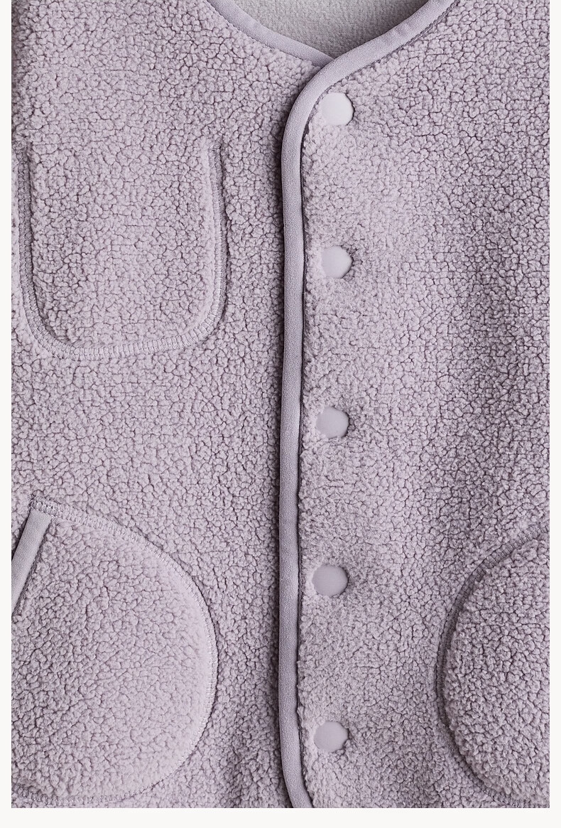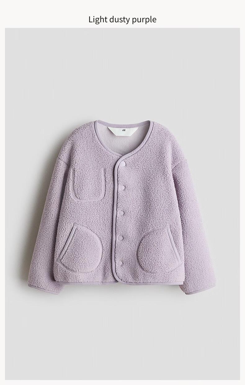 H&M 2026 spring new children's clothing children's teddy velvet jacket 1320074 light gray purple 120 120/60 (4-6Y)