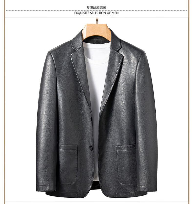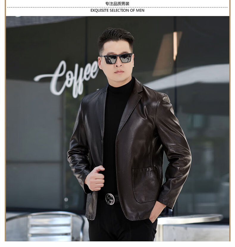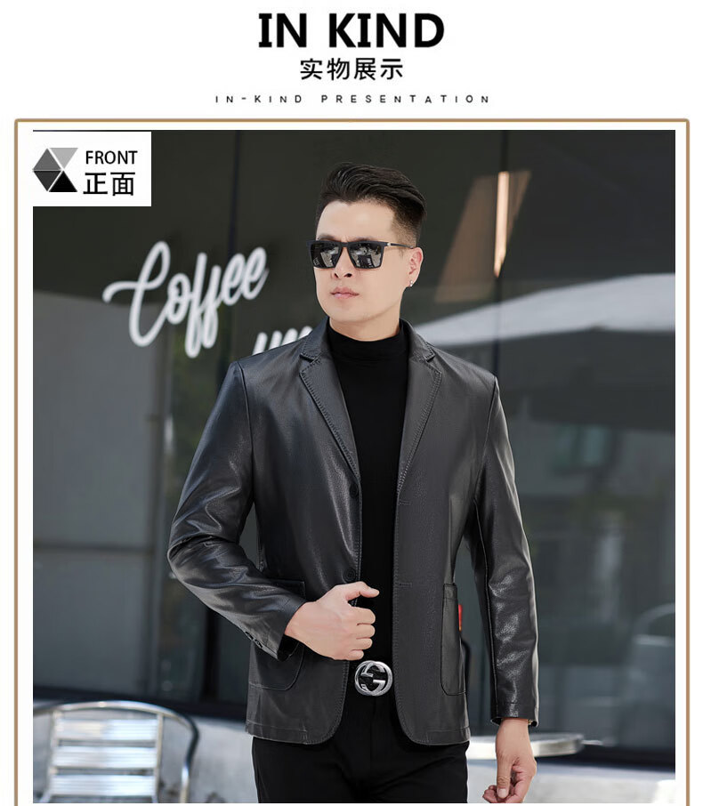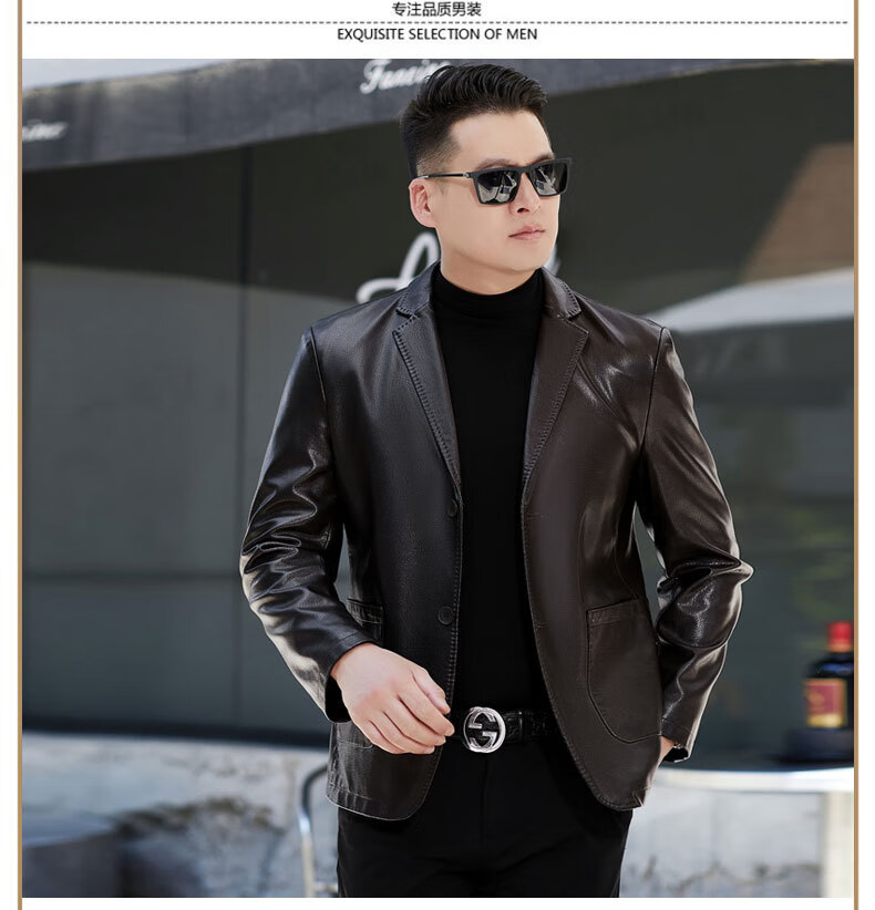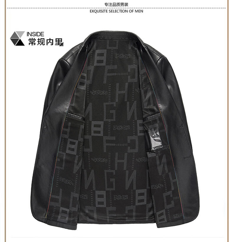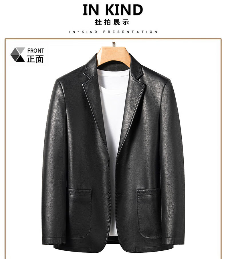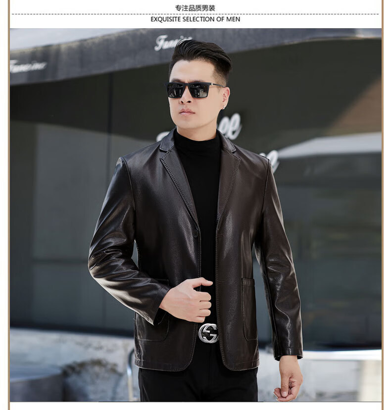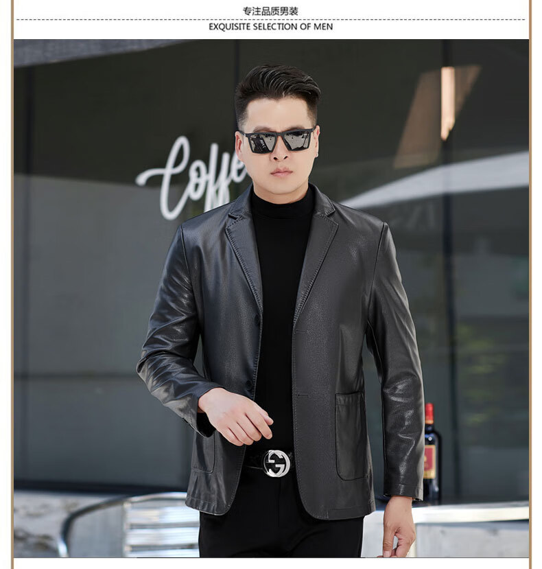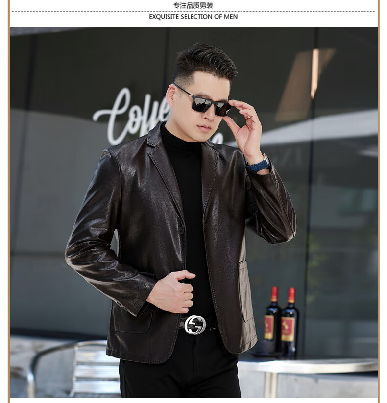 New first-layer sheepskin suit collar men's leather jacket men's slim leather jacket black M 170