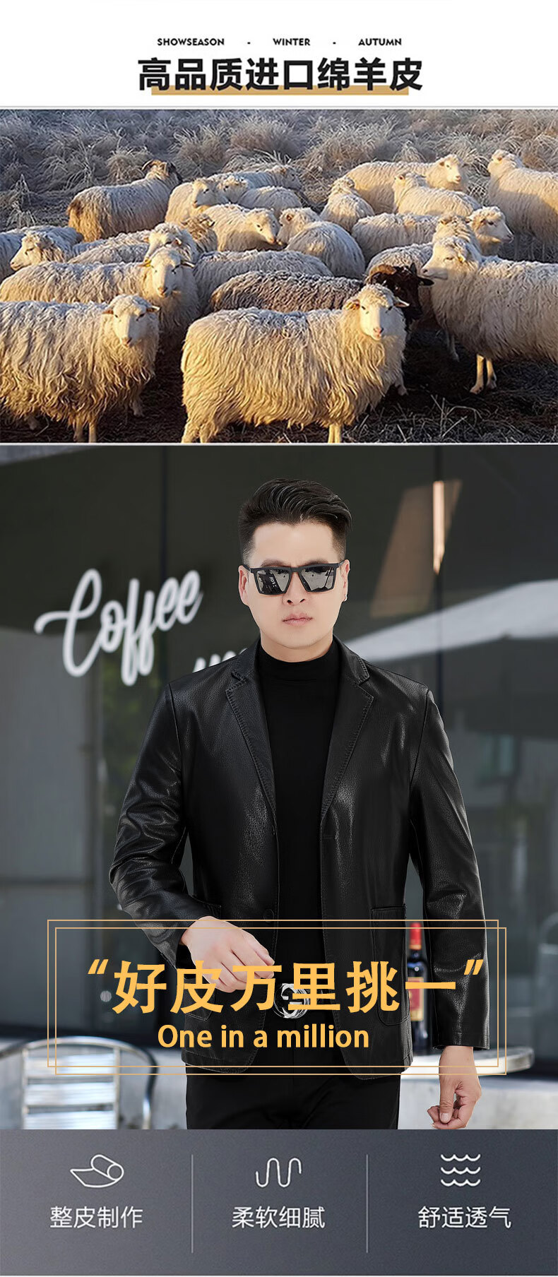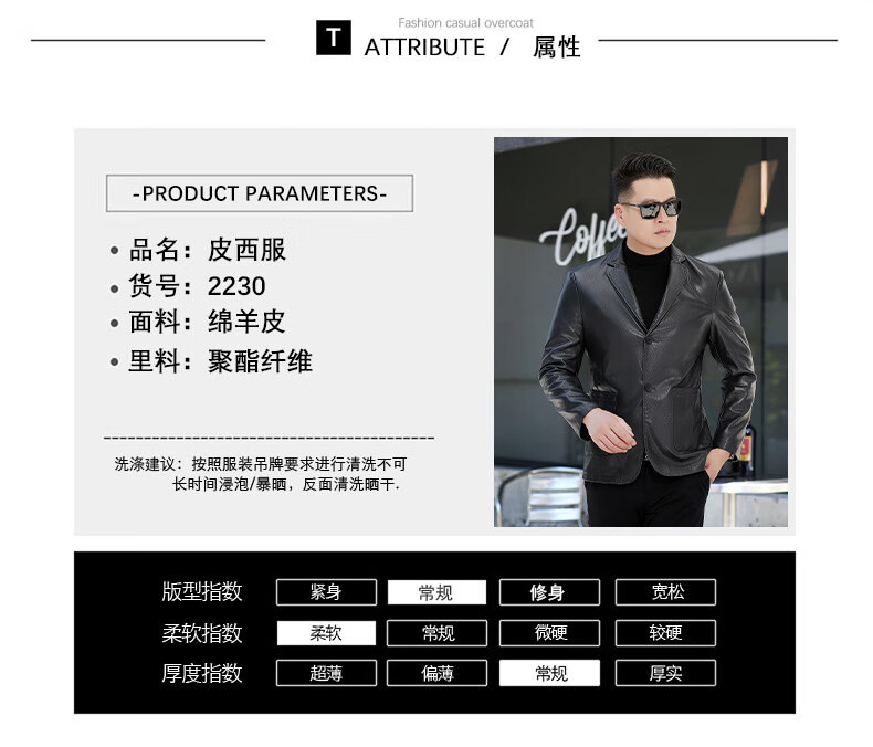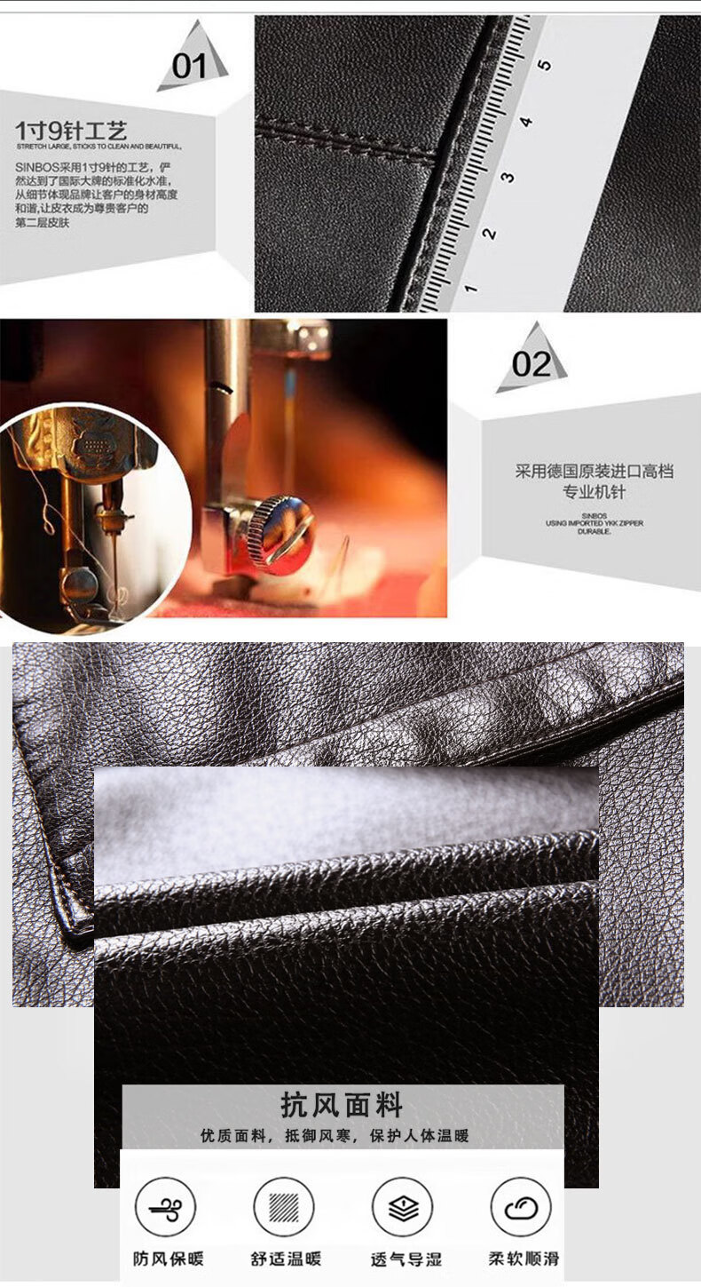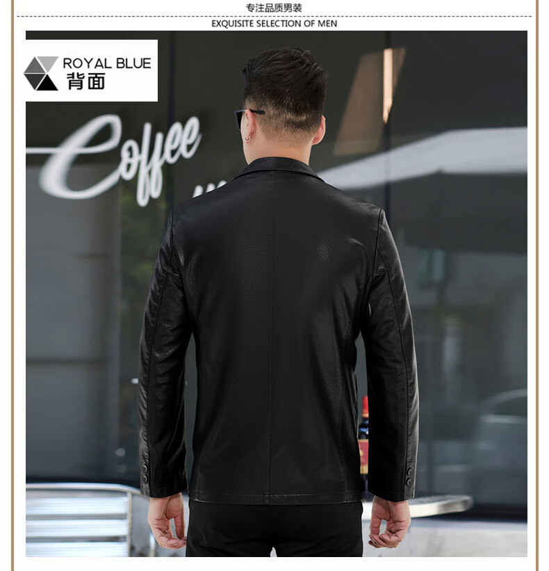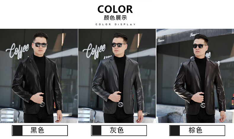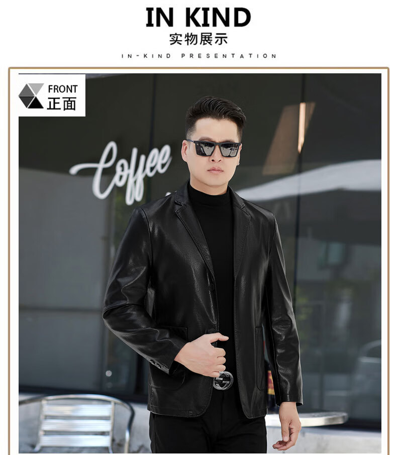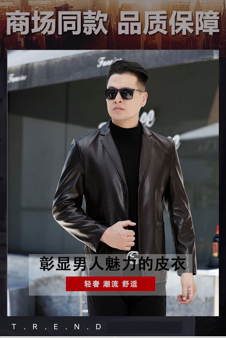 New first-layer sheepskin suit collar men's leather jacket men's slim leather jacket black M 170
