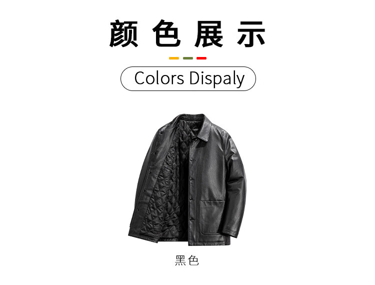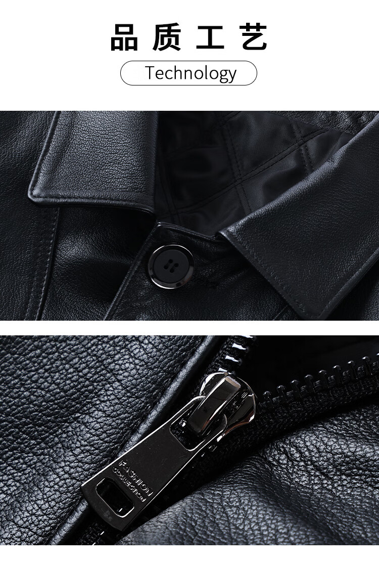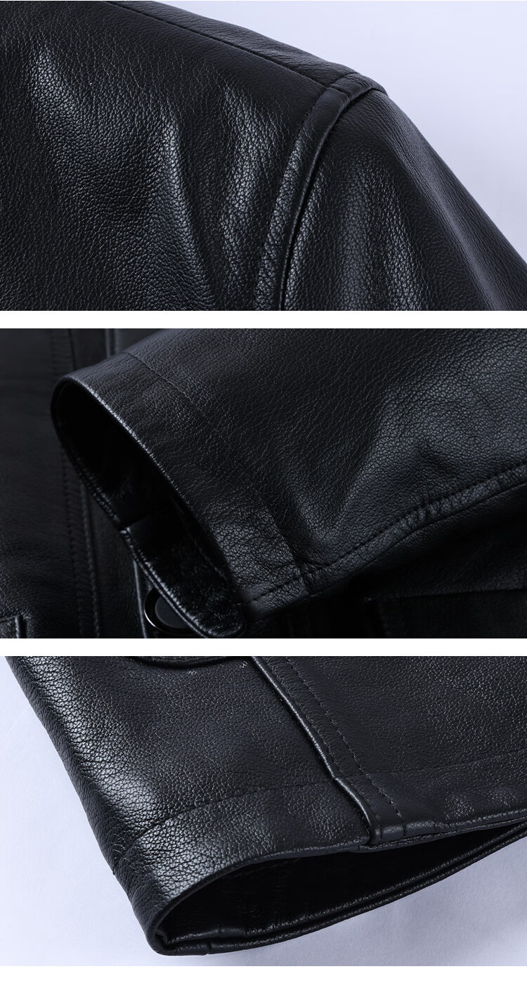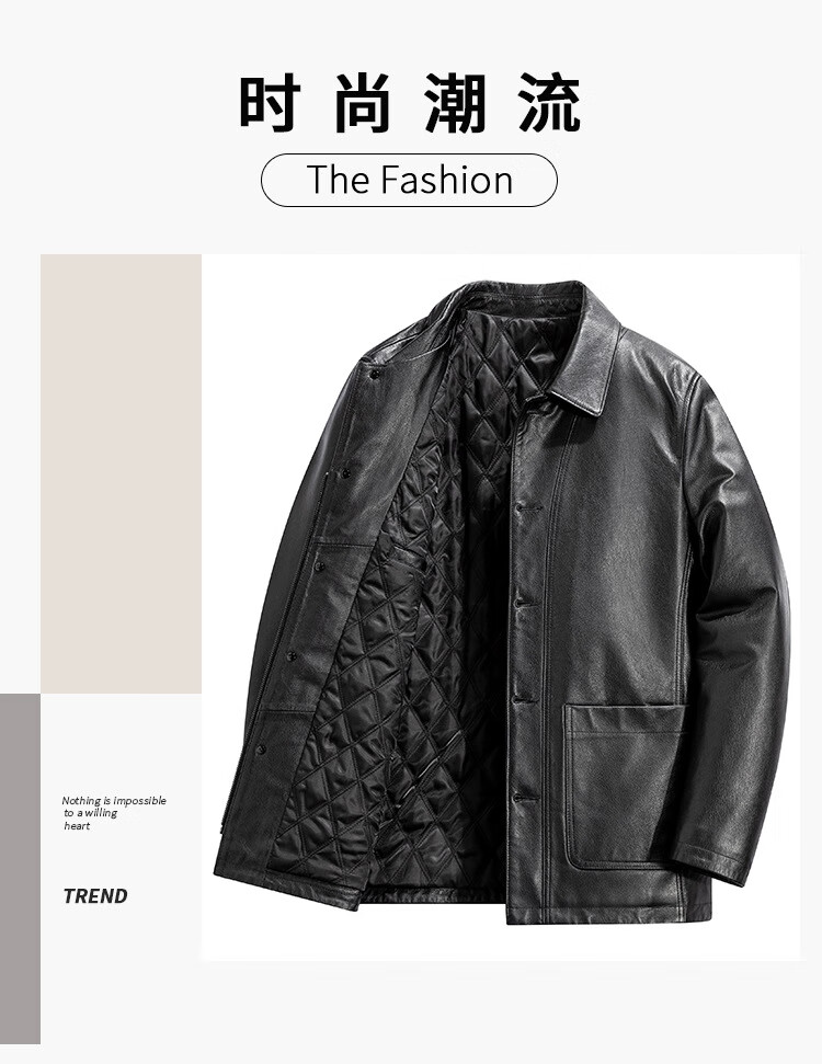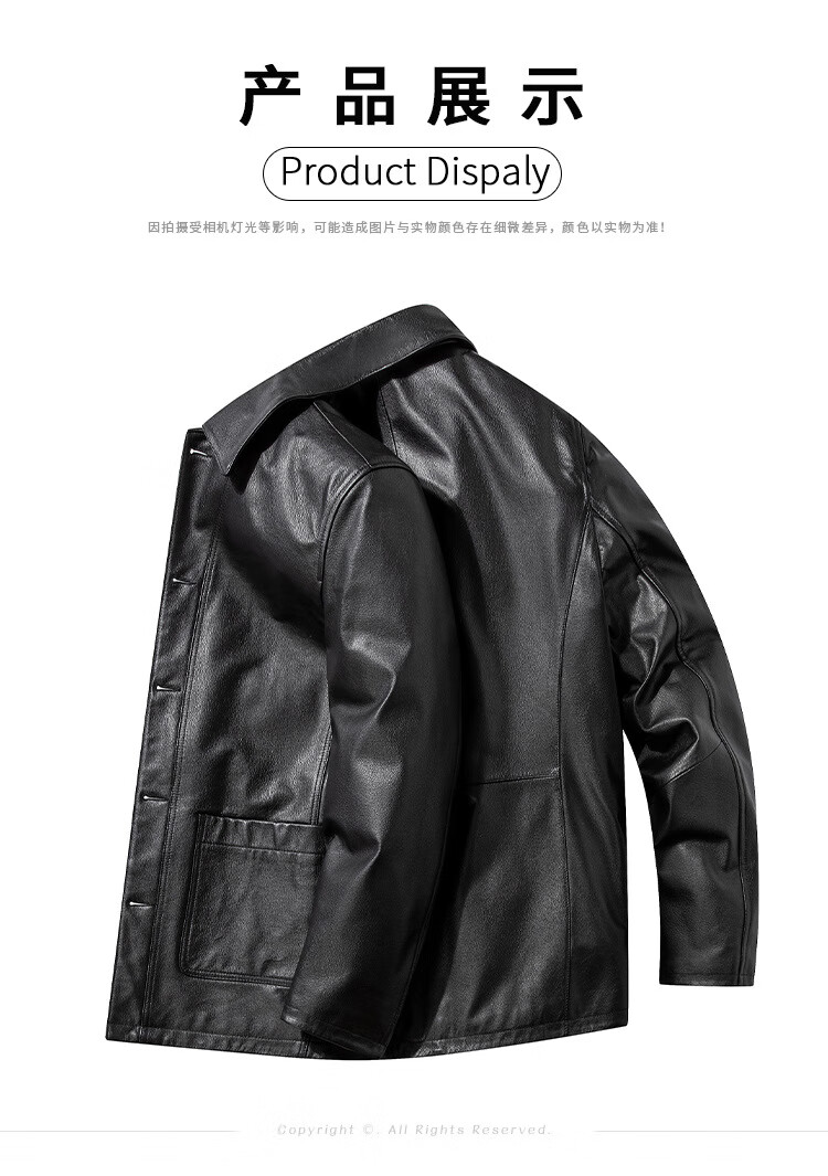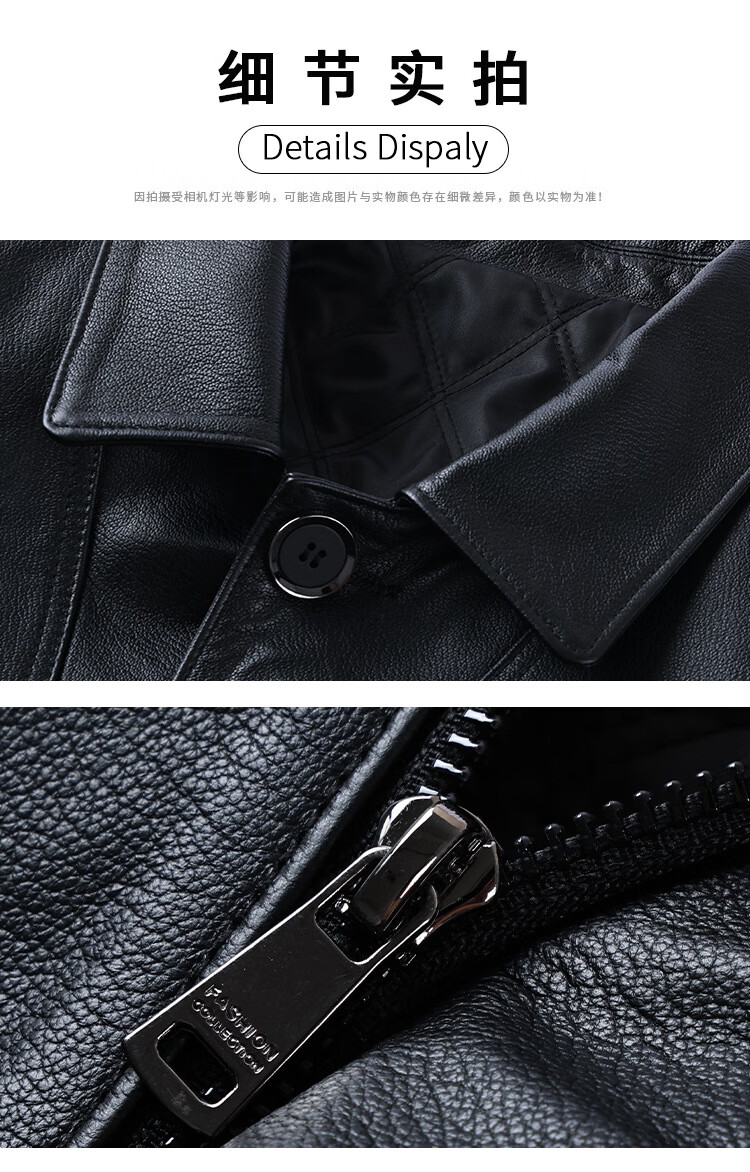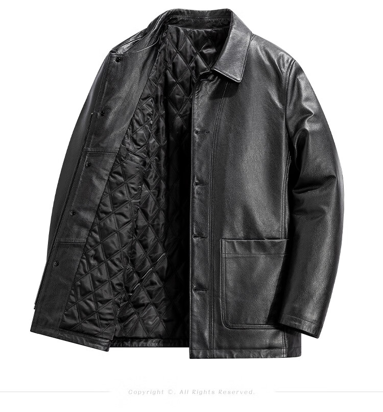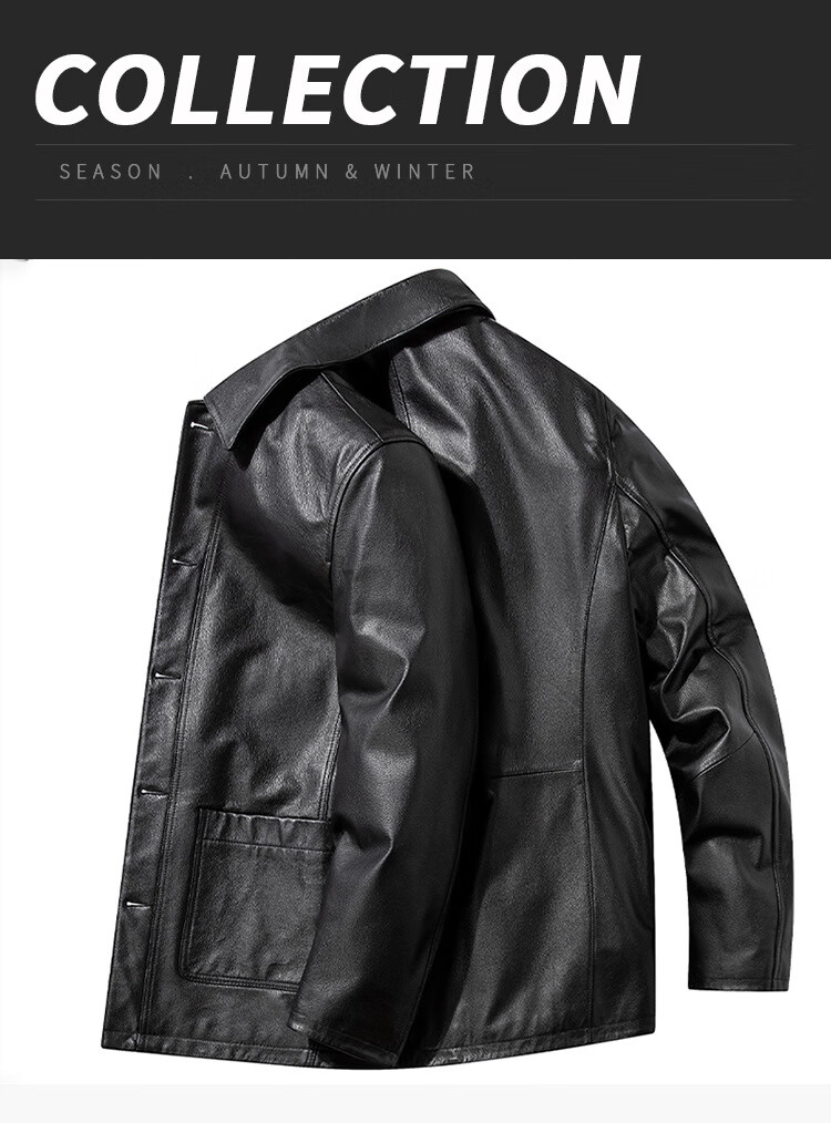 胖东来超市代购海宁皮衣男中年2025冬季新款爸爸装翻领牛皮秋同款 黑色 L 适合110-130斤