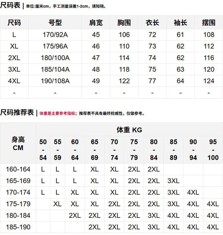 China (cm) 160-165/84-86 165-170 / 88-90 167-172 / 92-96 168-173 / 98-102 170-176 / 106-110