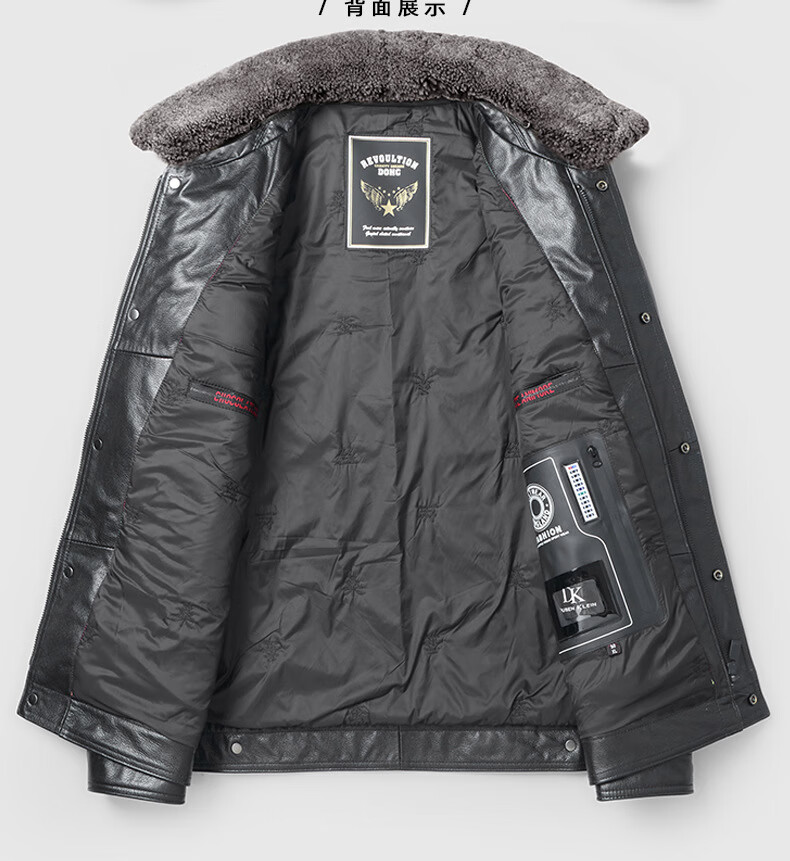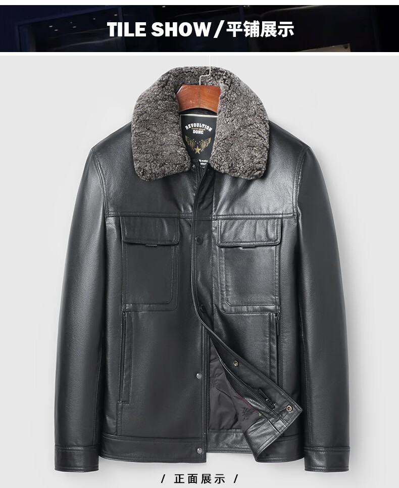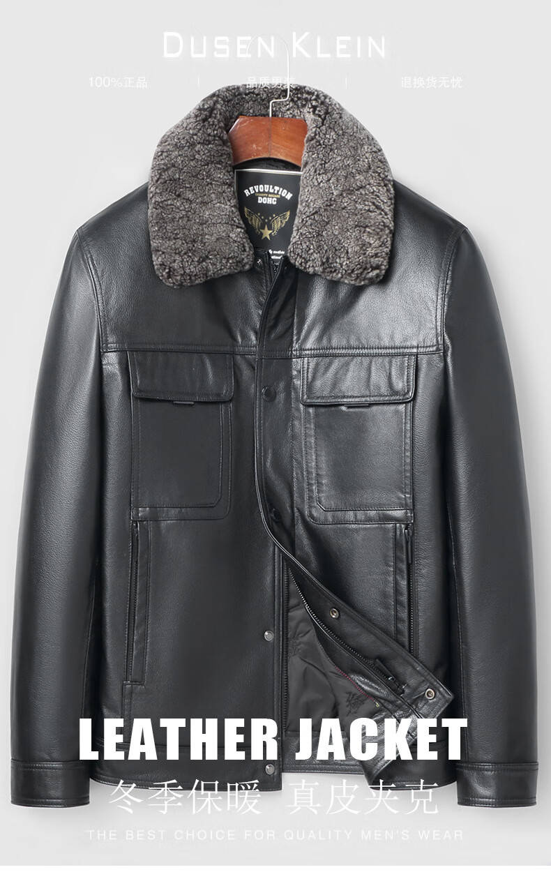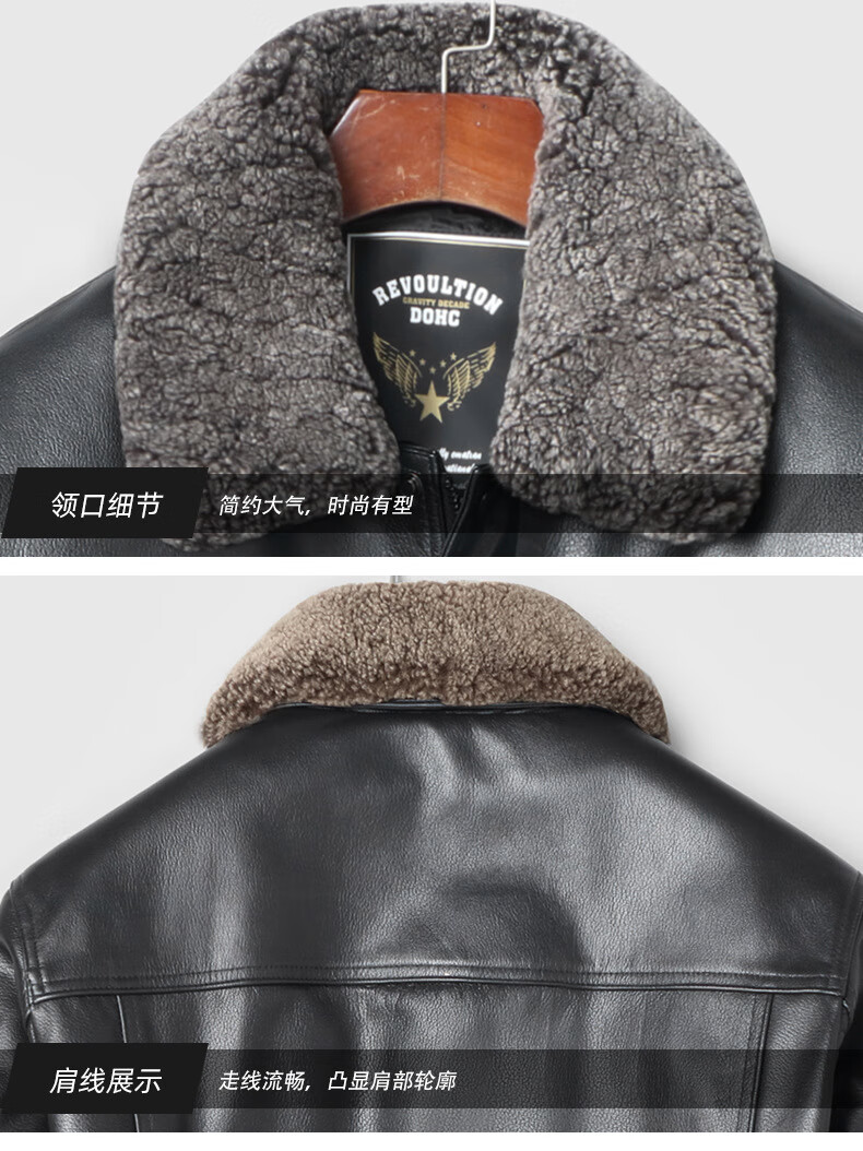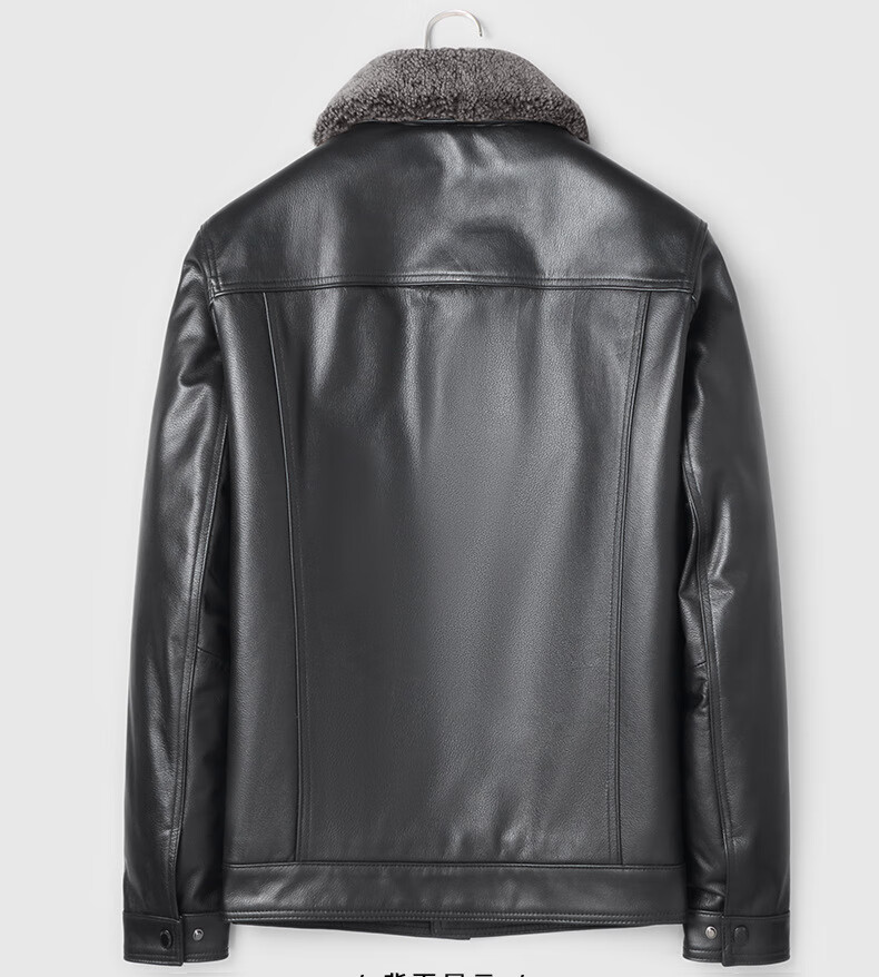 Haining leather jacket first-layer cowhide jacket with velvet and removable wool collar with thickened black M