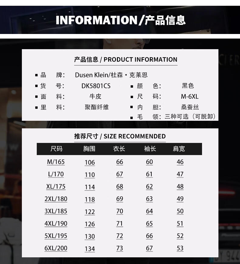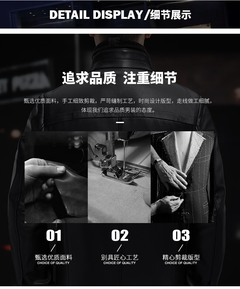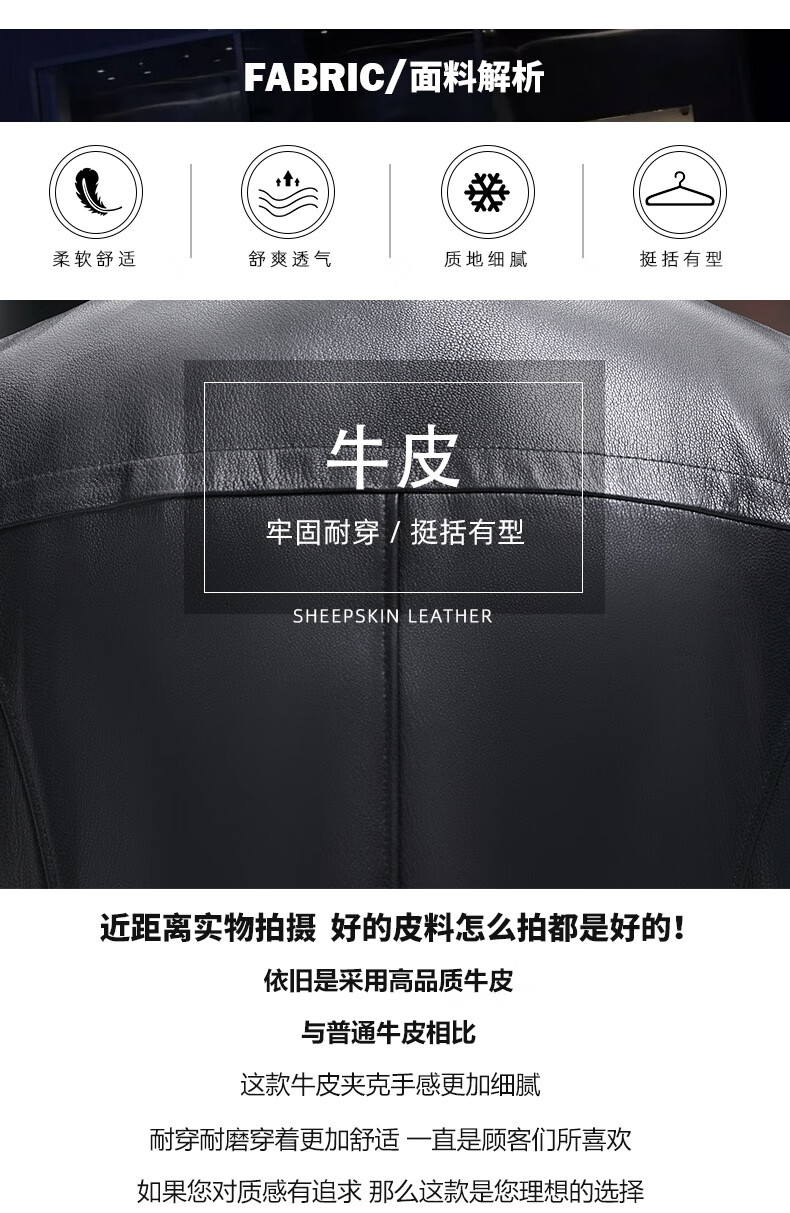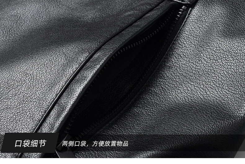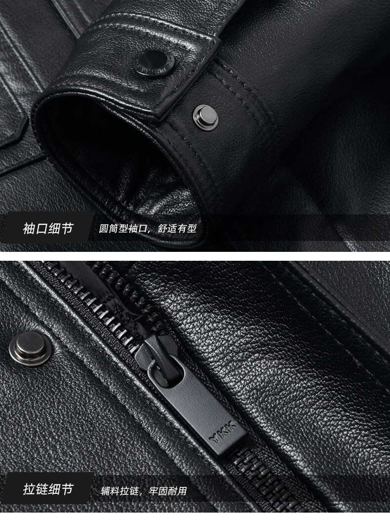 Haining leather jacket first-layer cowhide jacket with velvet and removable wool collar with thickened black M
