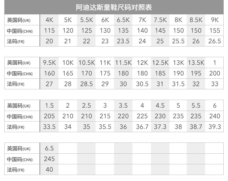 China (cm) 36 - 37 38 - 39 40 - 42 43 - 44 45 - 47