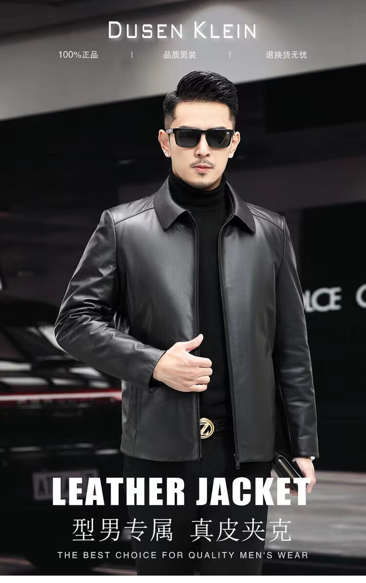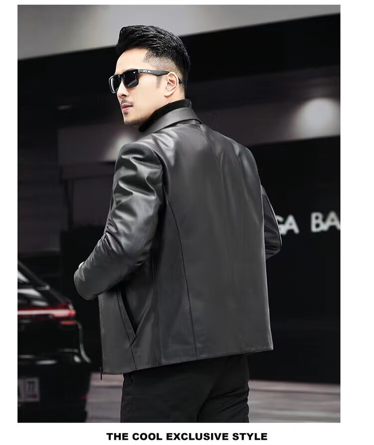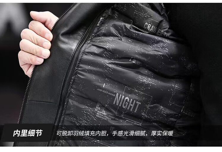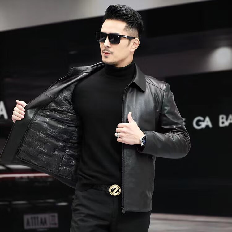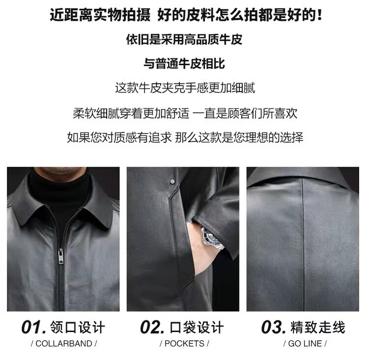 Haining Men's Leather Jacket Removable Liner Leather Jacket Men's First Layer Cowhide Lapel Machine Outer Black One Size 170L Suitable for 80-110Jin Jin is equal to 0.5 kg