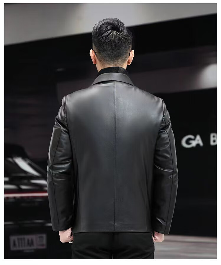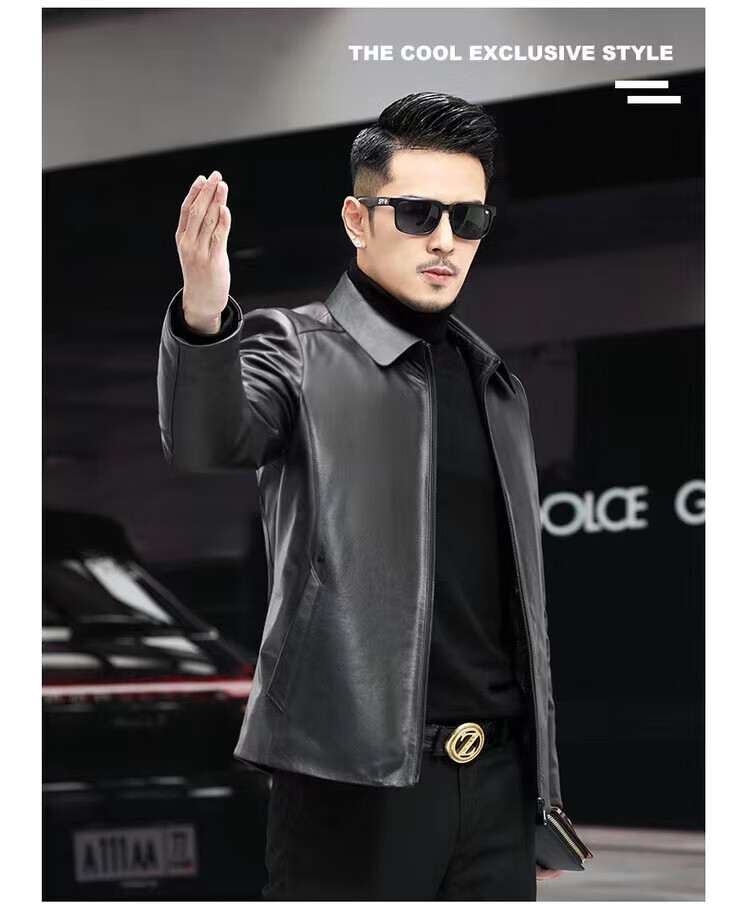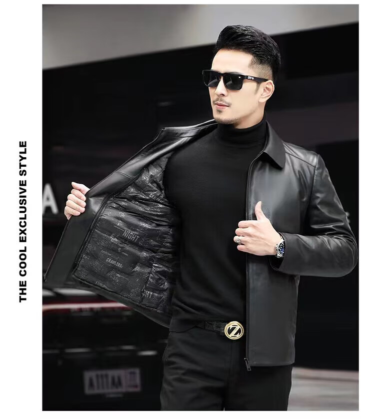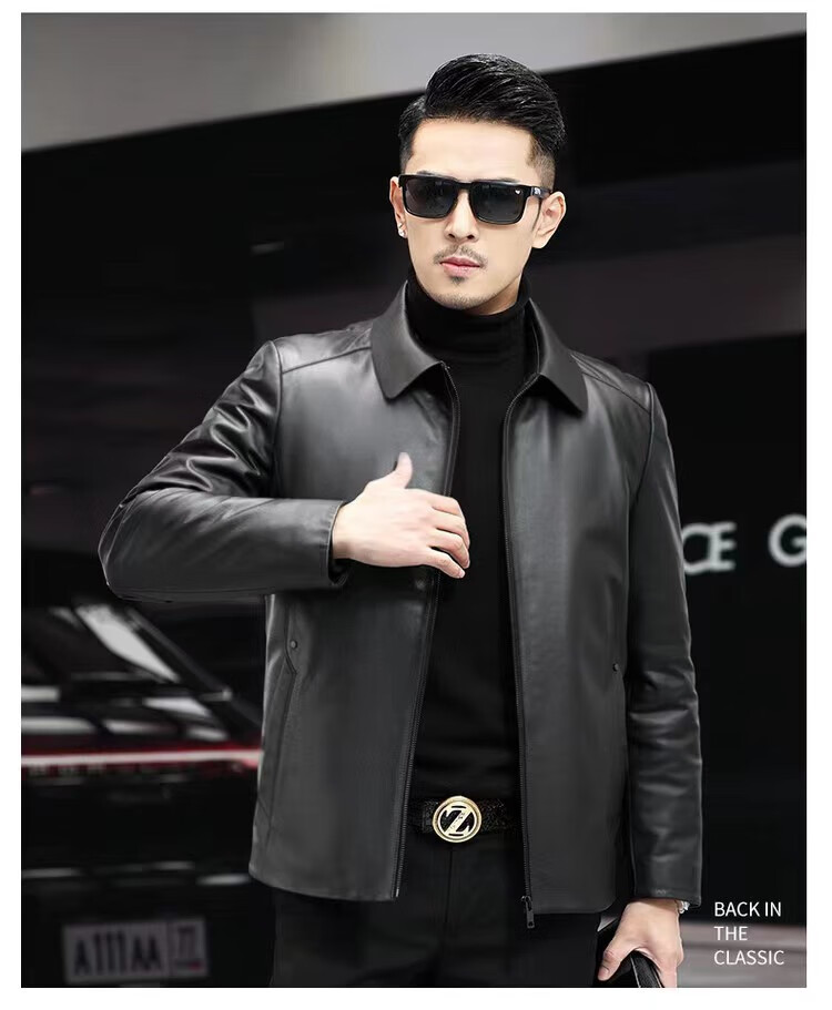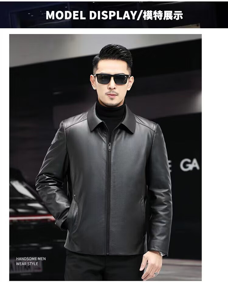 Haining Men's Leather Jacket Removable Liner Leather Jacket Men's First Layer Cowhide Lapel Machine Outer Black One Size 170L Suitable for 80-110Jin Jin is equal to 0.5 kg