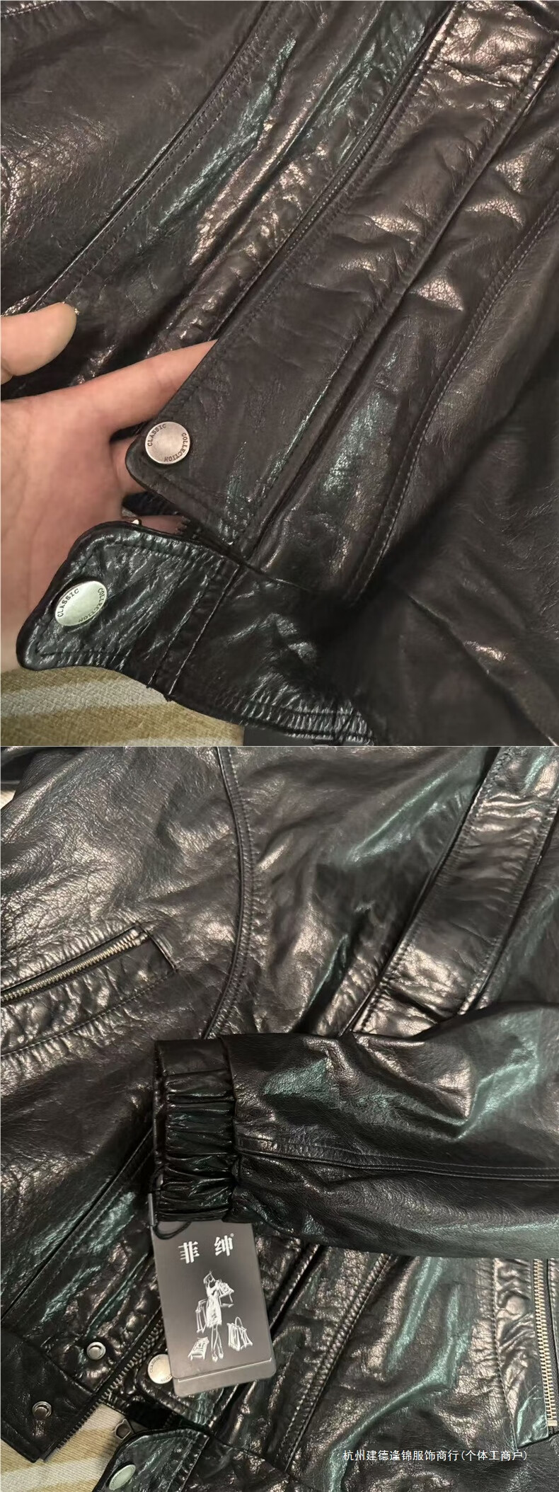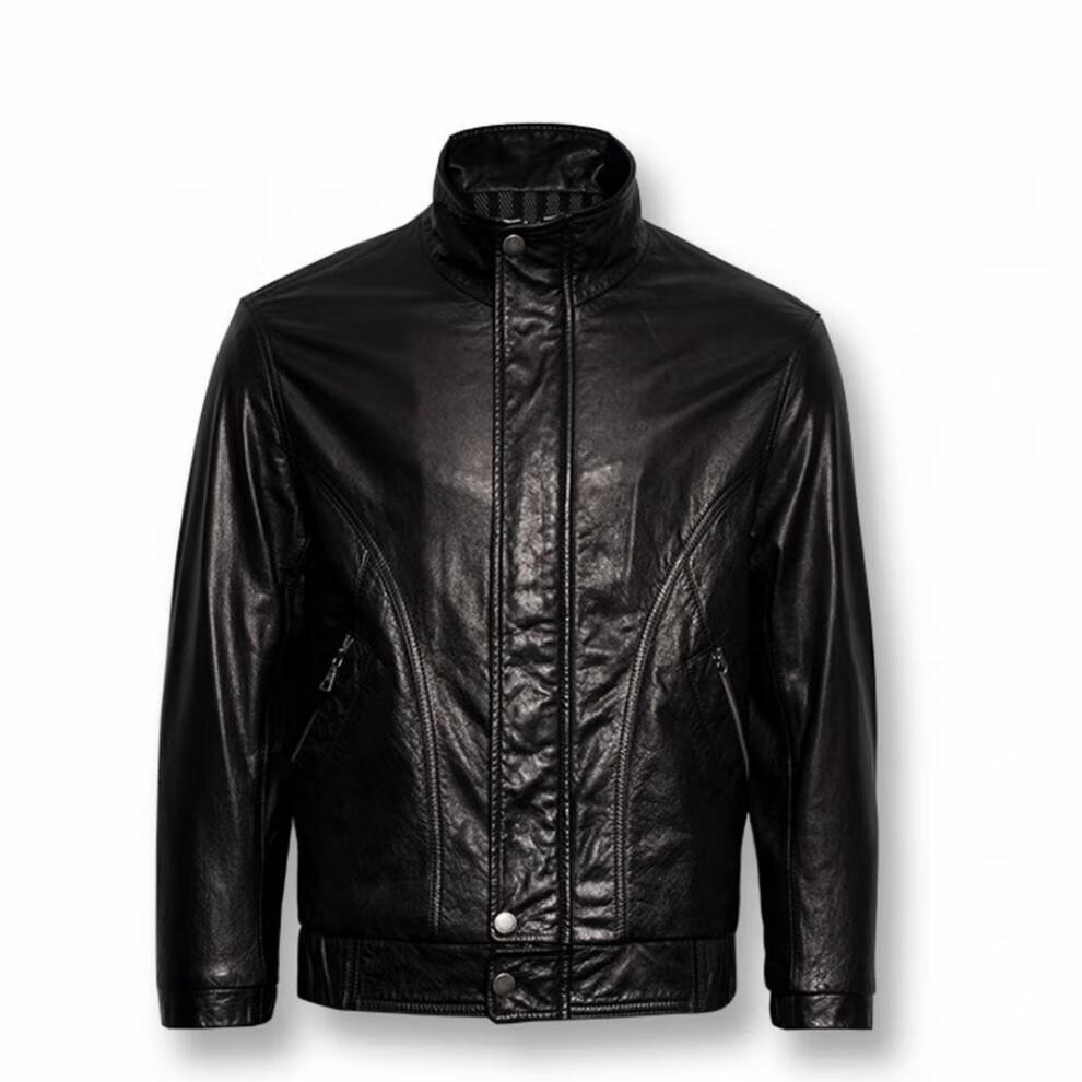 Супермаркет Fat Donglai закупает новые весенние и осенние кожаные пальто, вощеная воловья кожа первого слоя, рабочая одежда с воротником-стойкой, кошелек средней длины, того же стиля, черный L 175