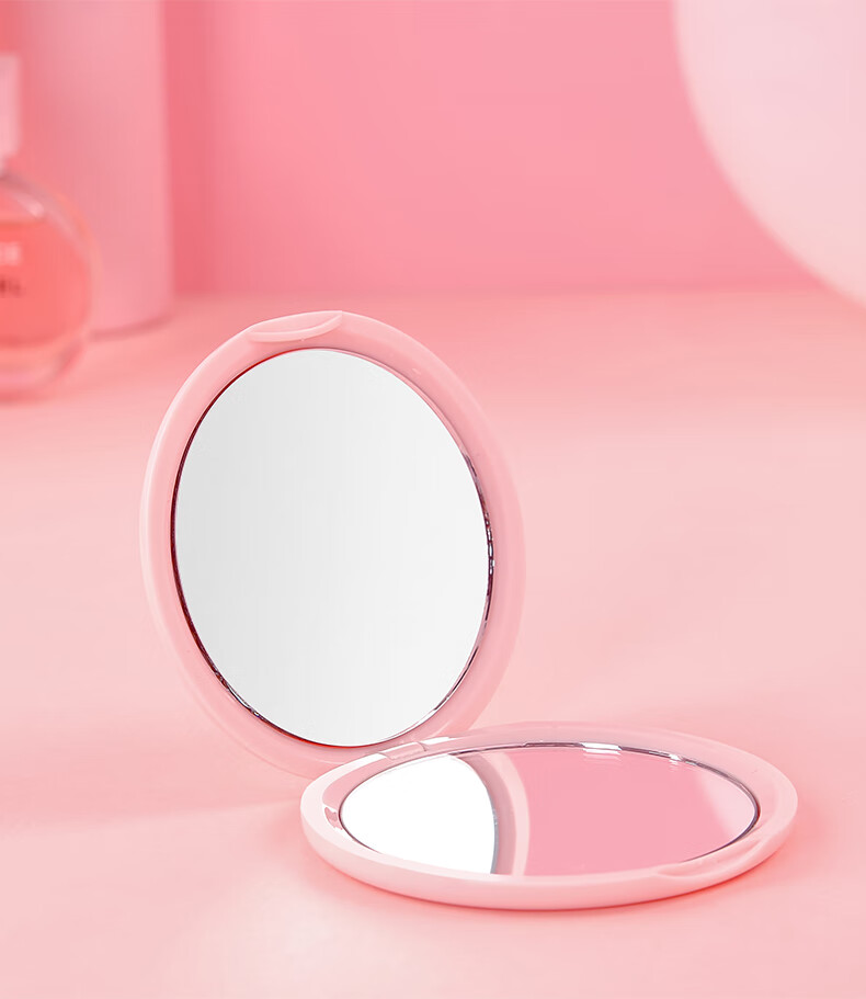 Fat Donglai same style makeup mirror portable mini double-sided small round mirror magnifying makeup mirror portable mirror mini makeup folding portable mirror travel lipstick girl model white X3