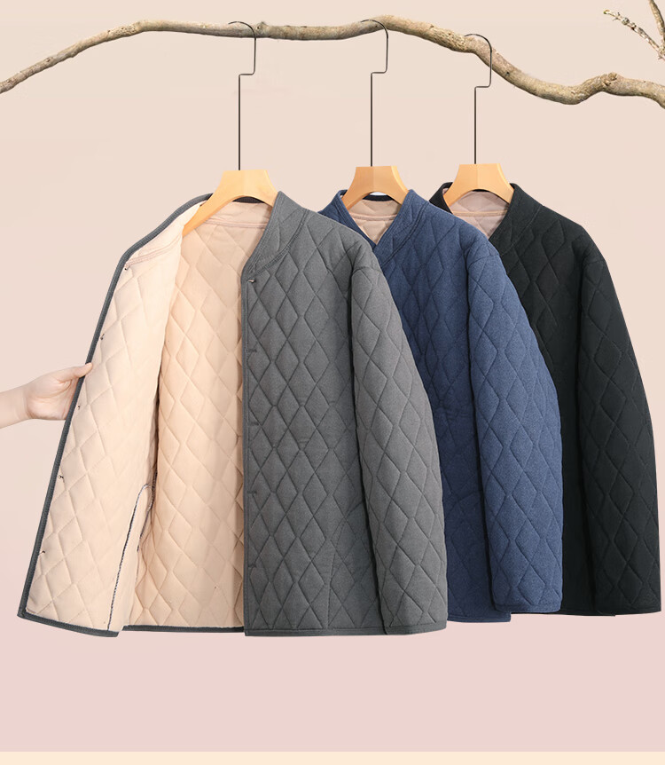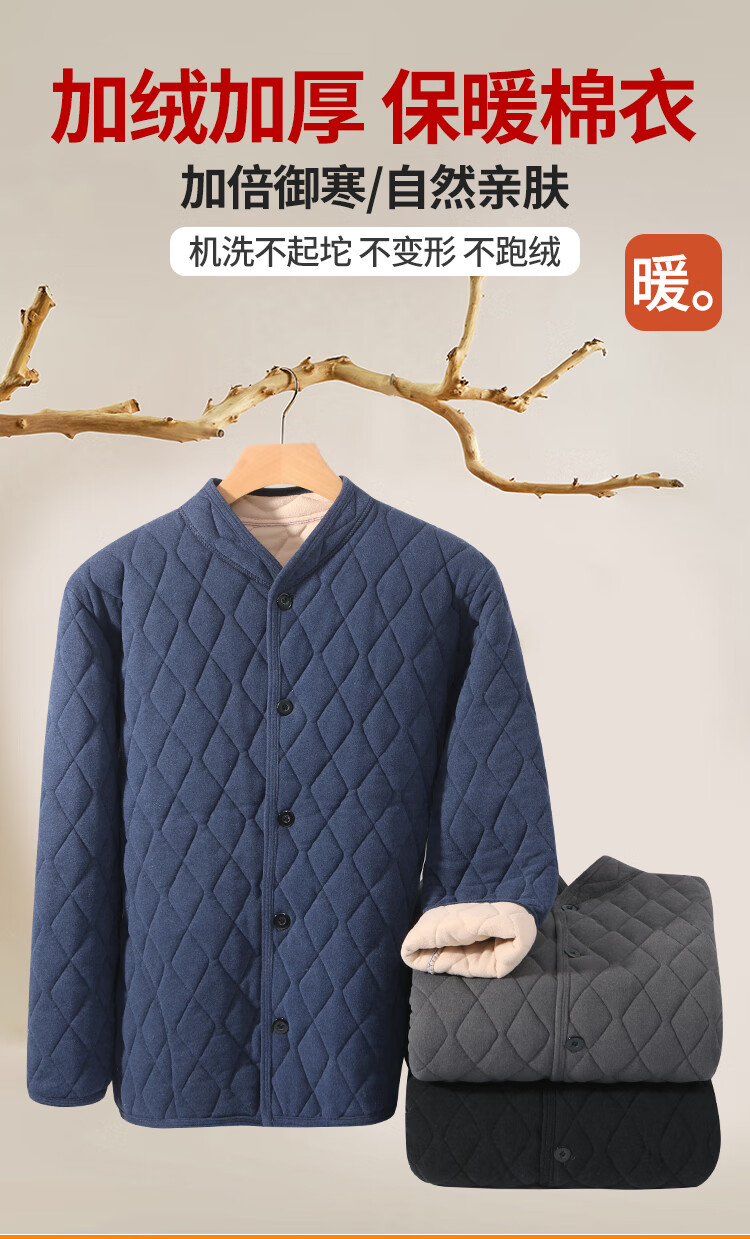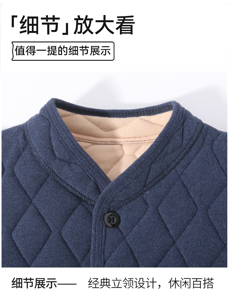 Close-fitting small cotton-padded jacket liner winter middle-aged and elderly men's father's jacket with cotton padding and thickened inner wear for outdoor warmth Blue cotton-padded jacket 3XL Recommended 160-180Jin Jin equals 0.5 kg