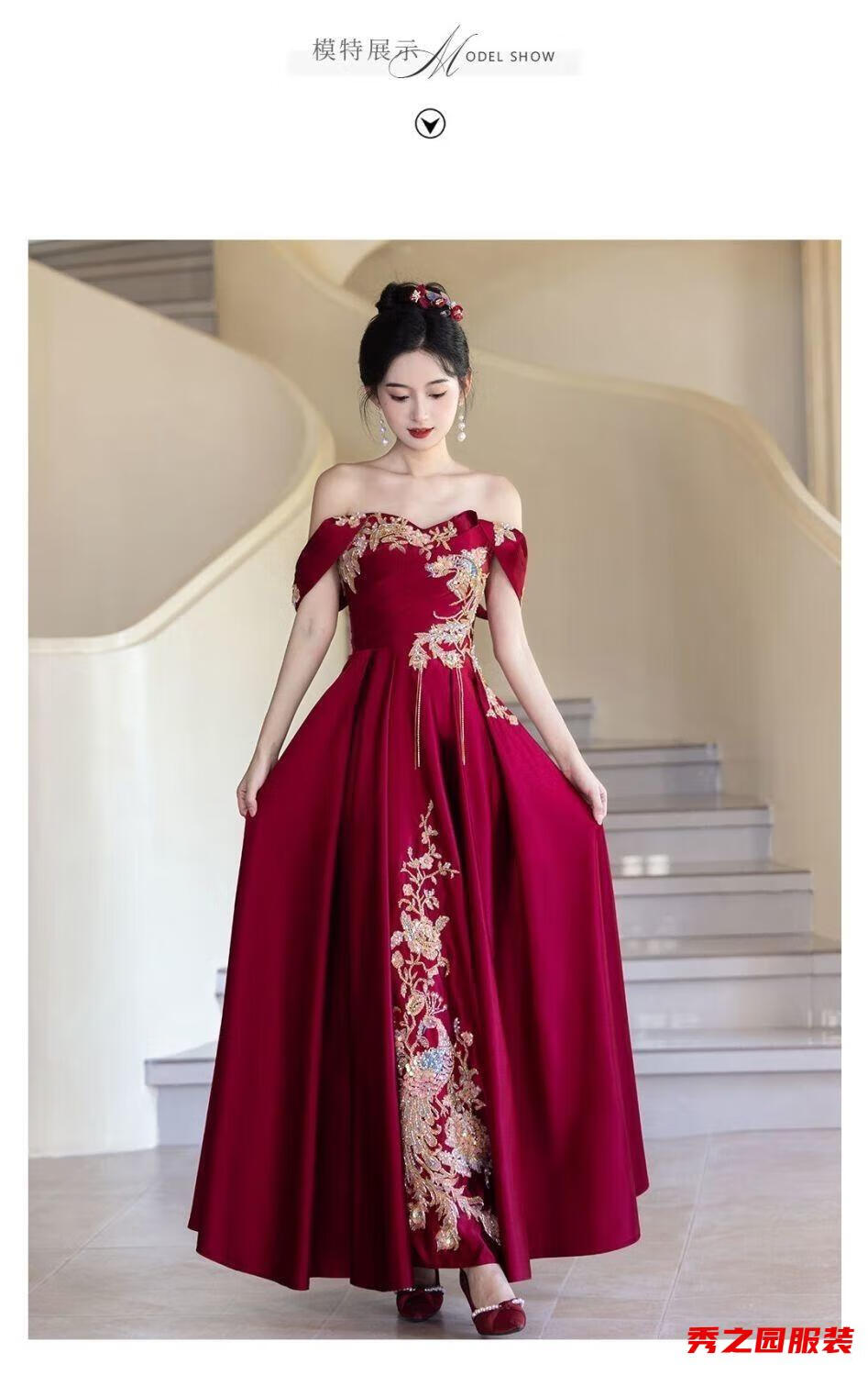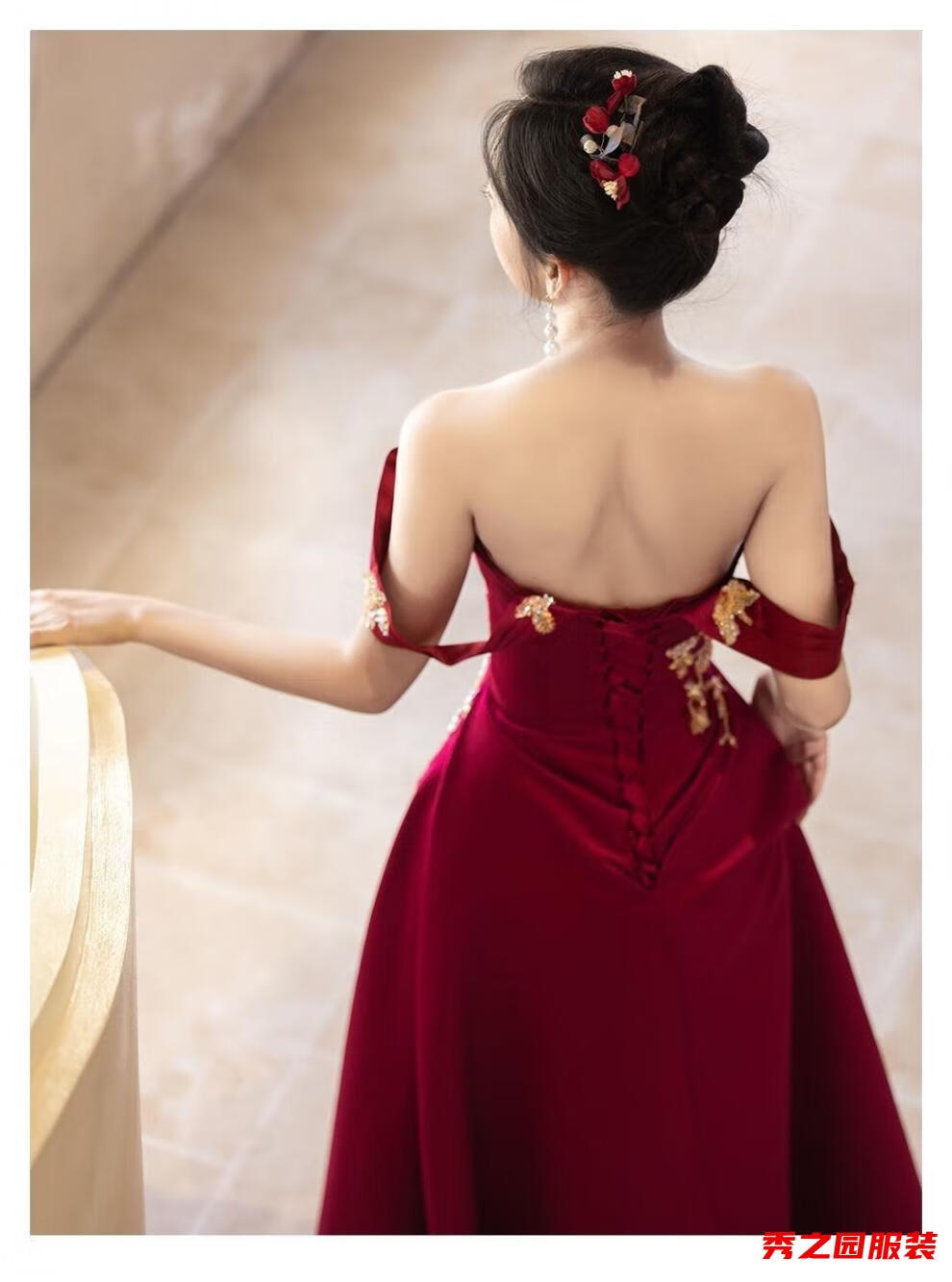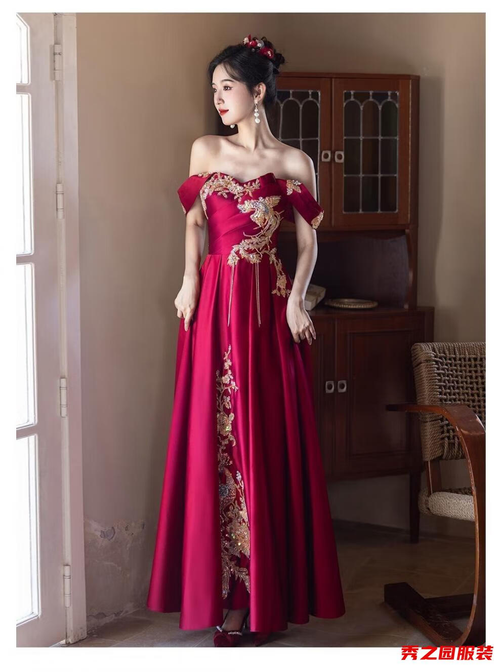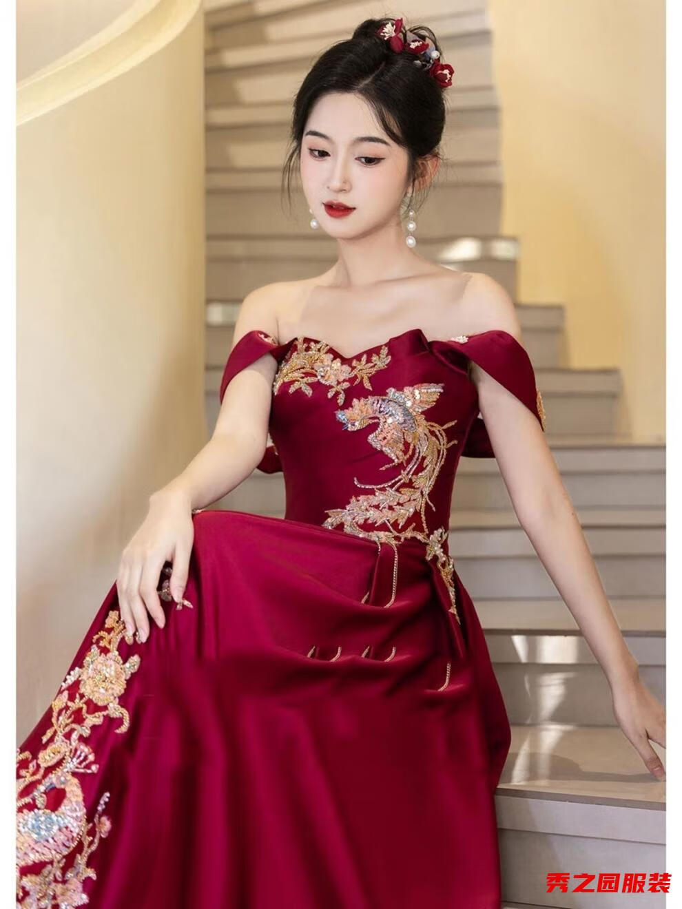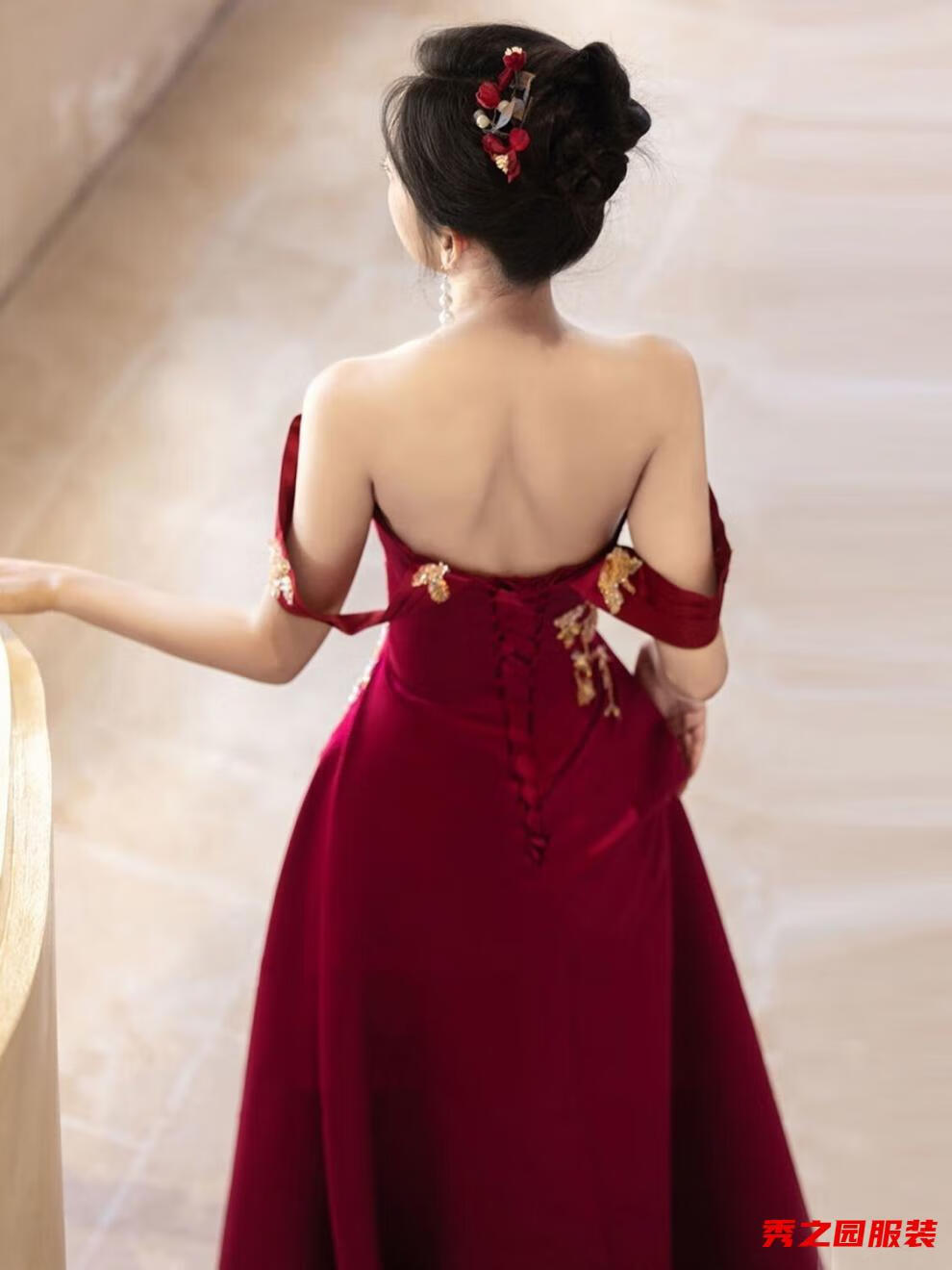 Verse Verse burgundy toast dress bride's dressing gown style engagement wedding dress new Chinese style one shoulder light luxury national style burgundy S