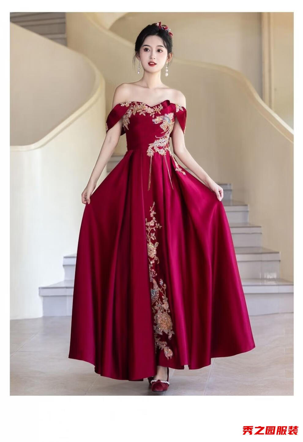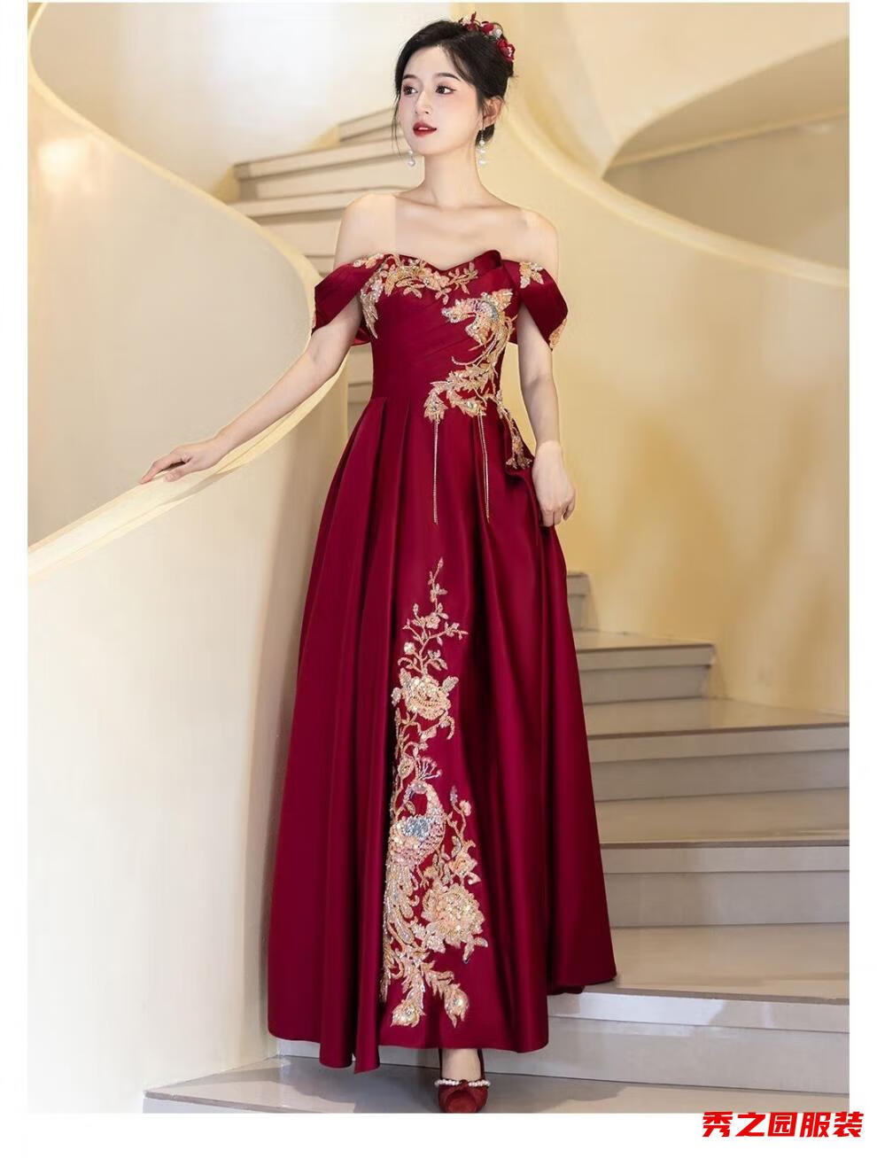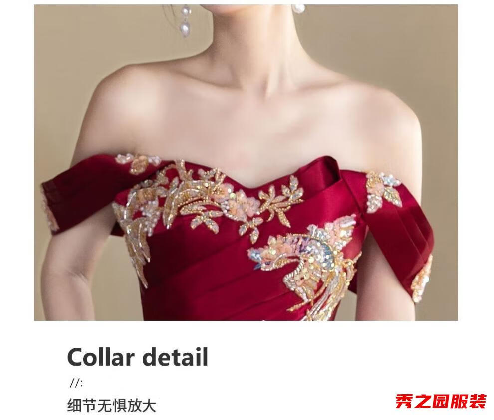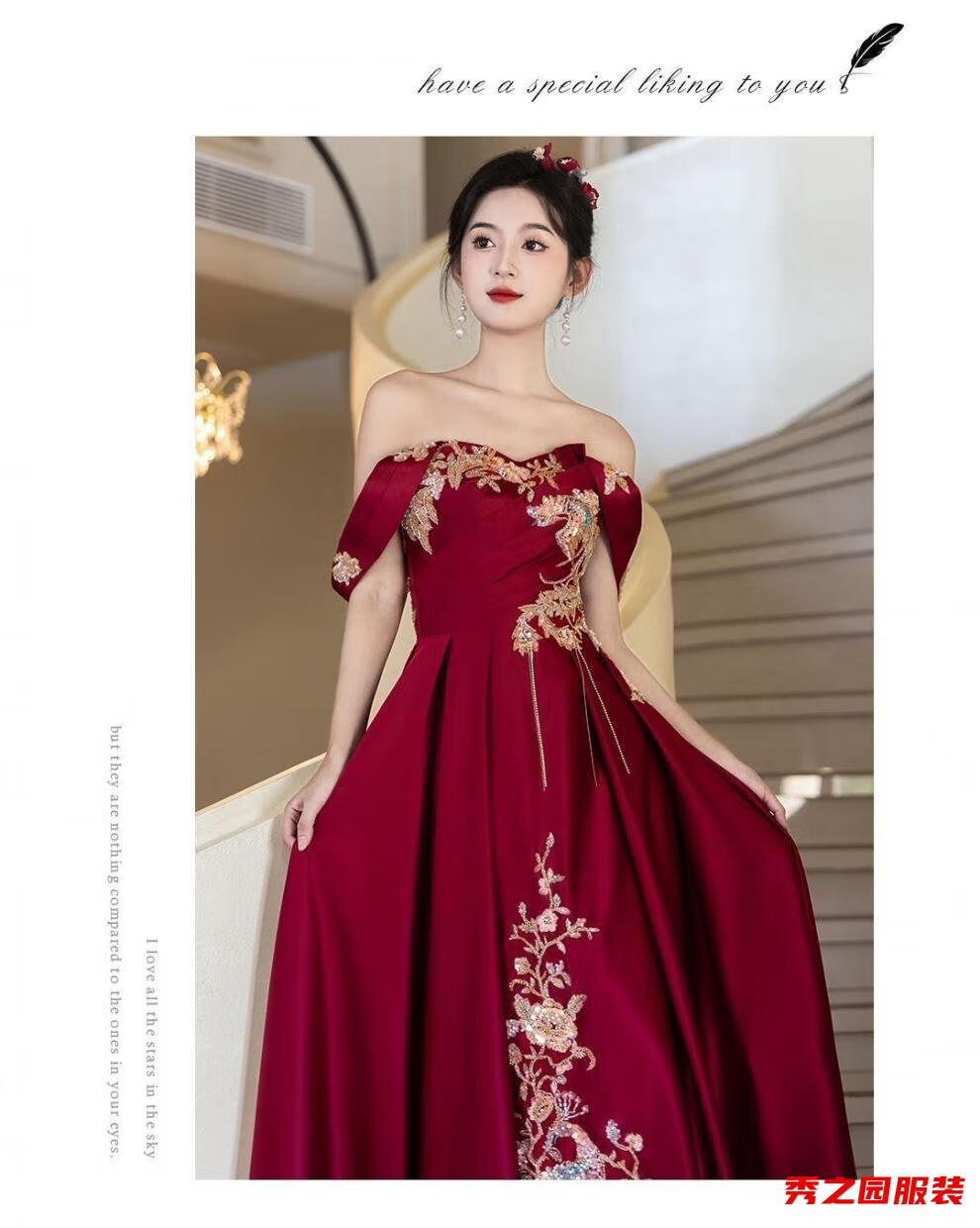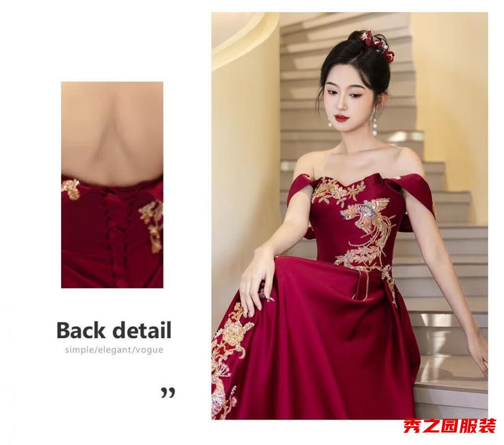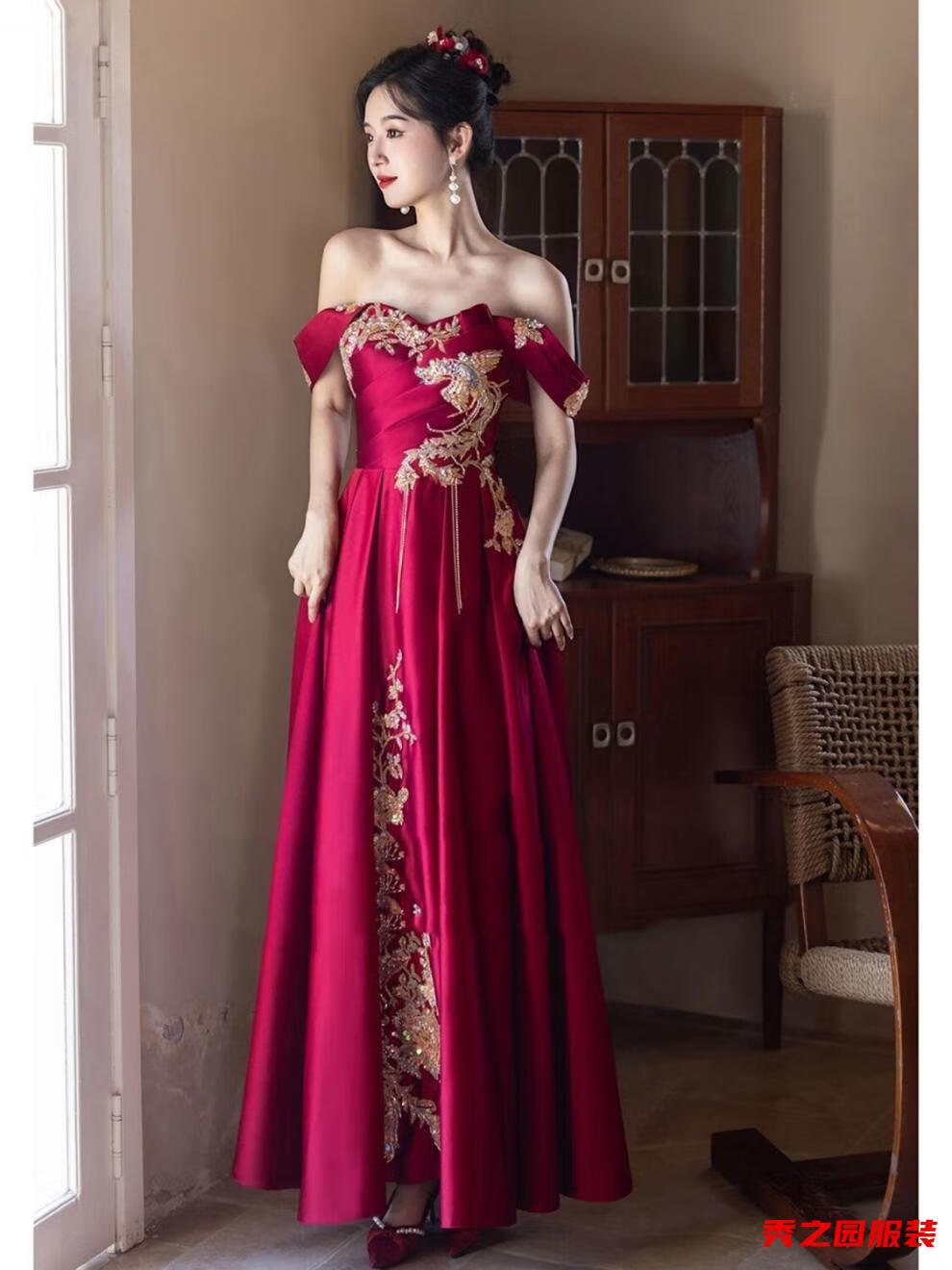 Verse Verse burgundy toast dress bride's dressing gown style engagement wedding dress new Chinese style one shoulder light luxury national style burgundy S