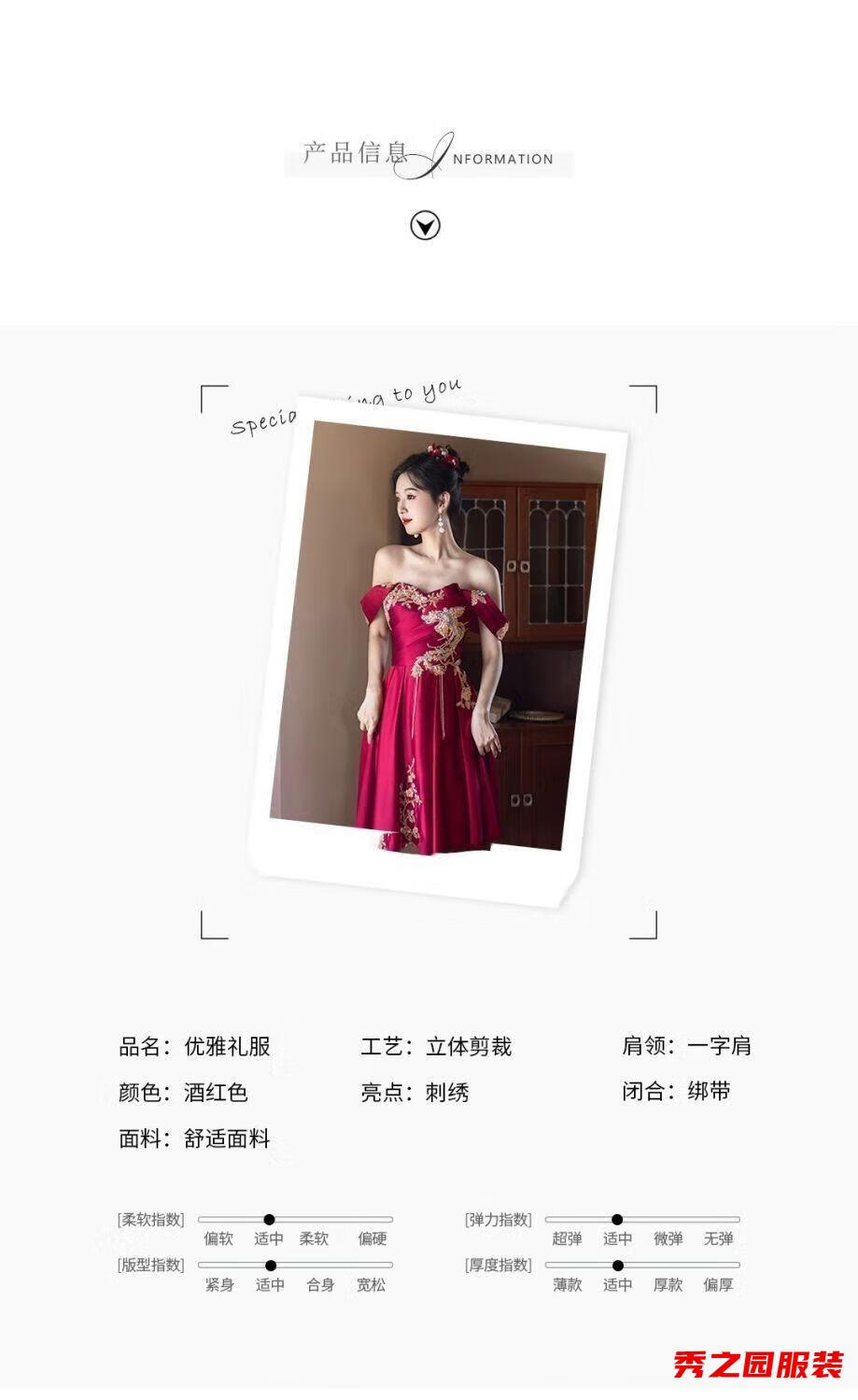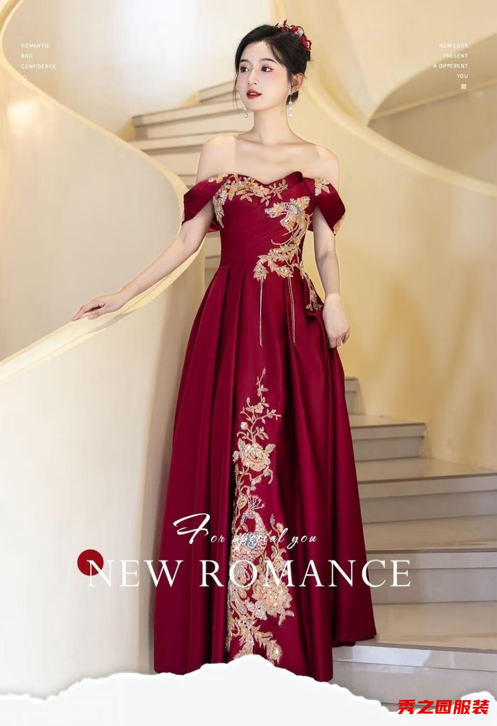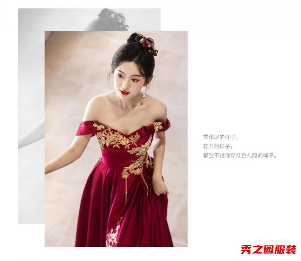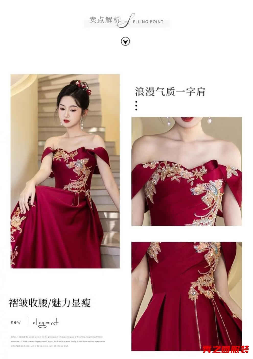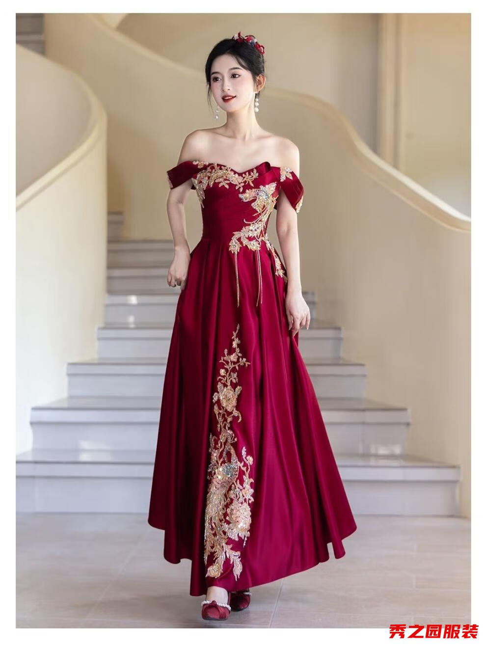 Verse Verse burgundy toast dress bride's dressing gown style engagement wedding dress new Chinese style one shoulder light luxury national style burgundy S