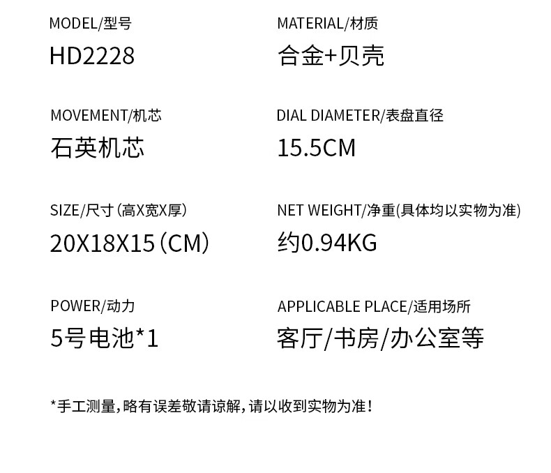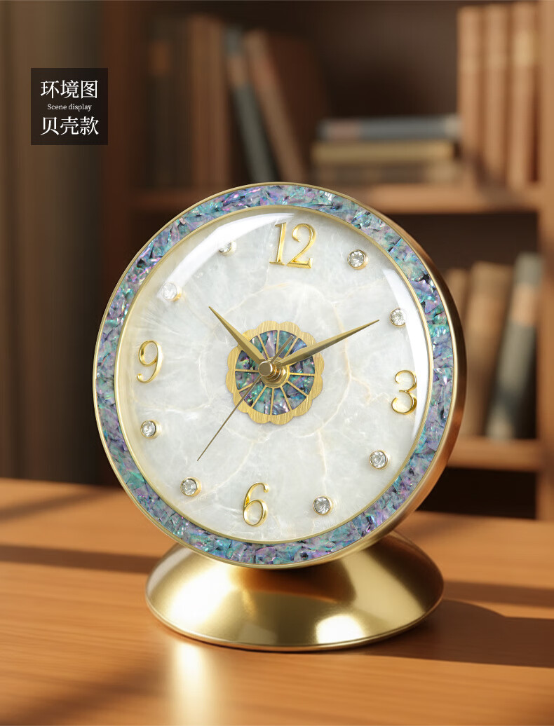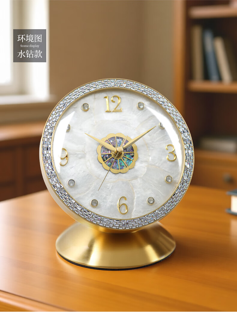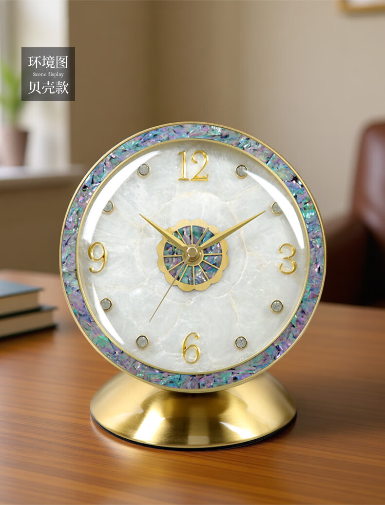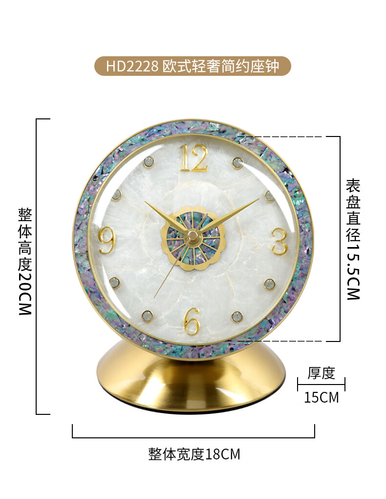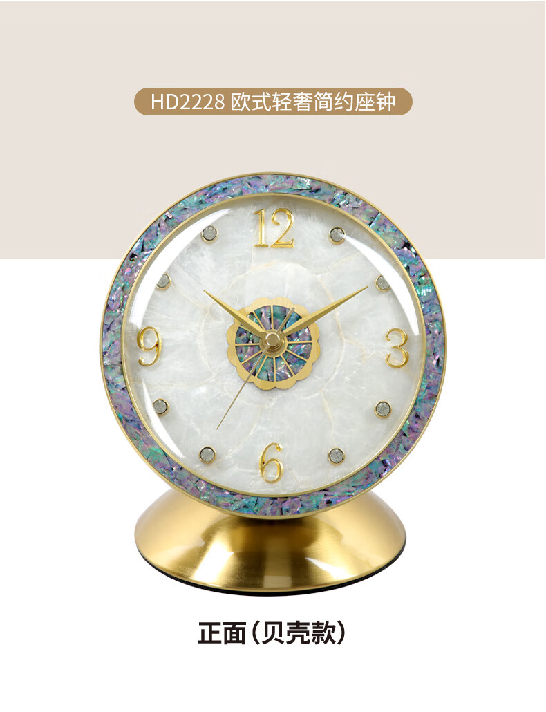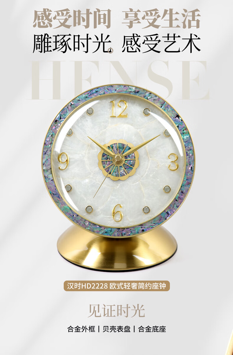 Hanshi (Hense) modern light luxury alloy shell clock living room home desktop table clock high-end clock TV cabinet clock HD2228 shell plate + abalone shell