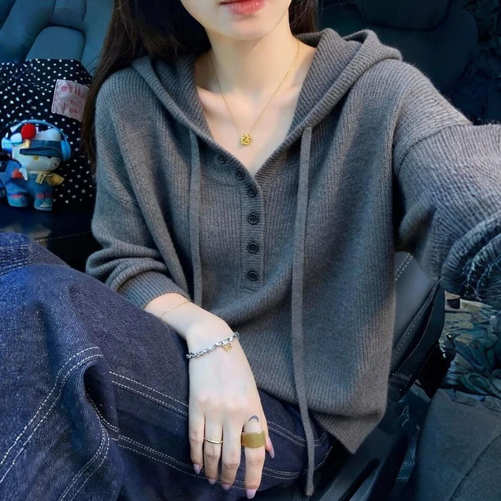 Hot selling hot style hooded commuter solid color pullover sweater autumn and winter versatile long-sleeved top sweater slim gray L recommended 120-150Jin Jin equals 0.5 kg