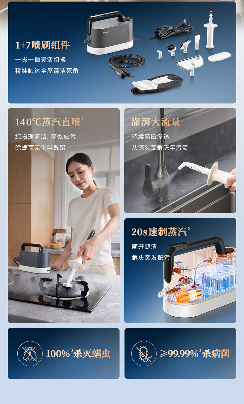 Donlim's blockbuster new product, glove steam cleaner, high-temperature steam sterilization and mite removal cleaning machine, household stove kitchen oil stain, glass gap steam cleaner DL-7902 with gloves version