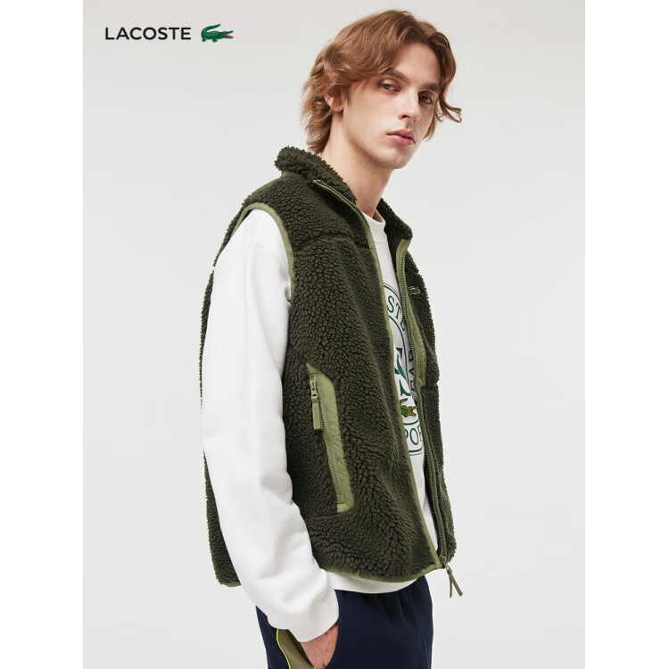 Crocodile (LACOSTE) Wang Yibo's same style LACOSTE French crocodile men's winter all-match warm vest jacket | BH2839 IER/dark green/khaki green One size fits all 6 185