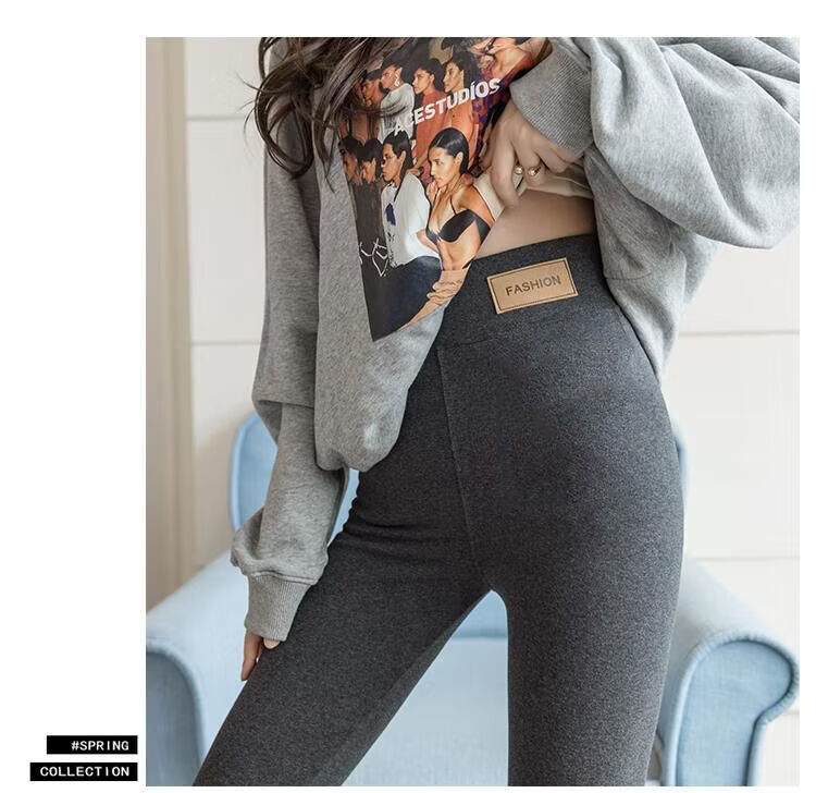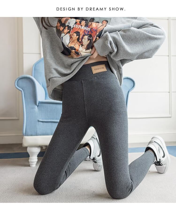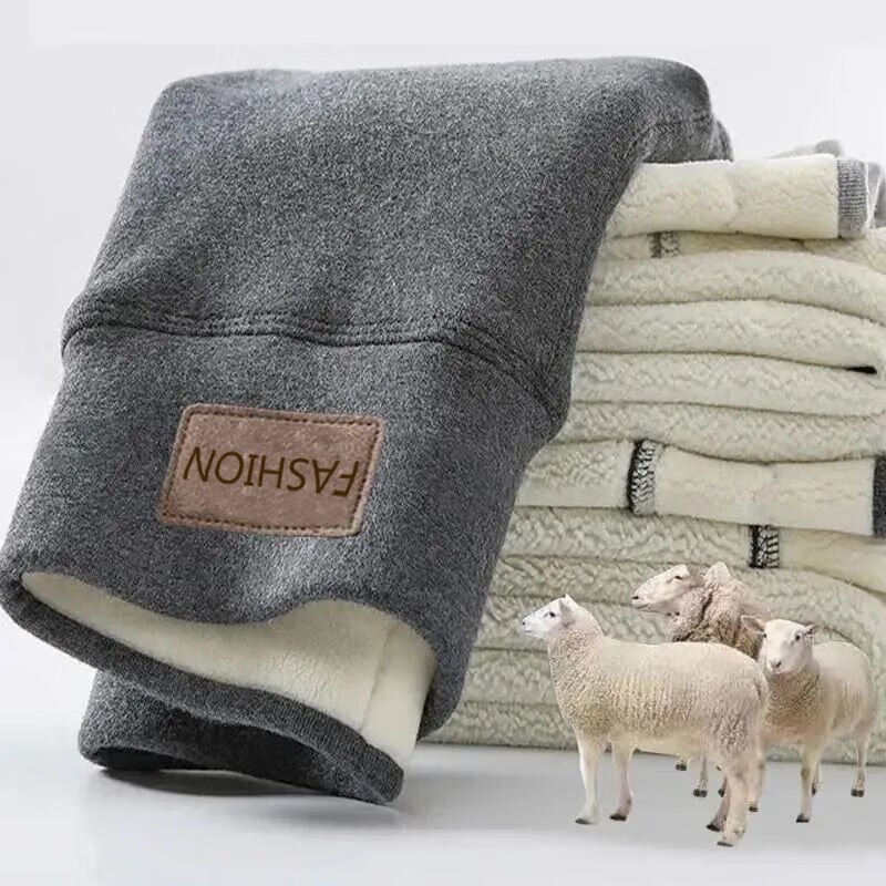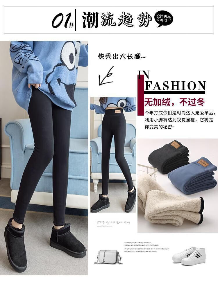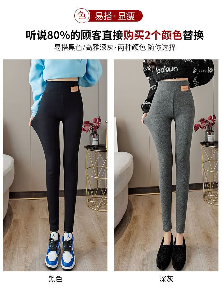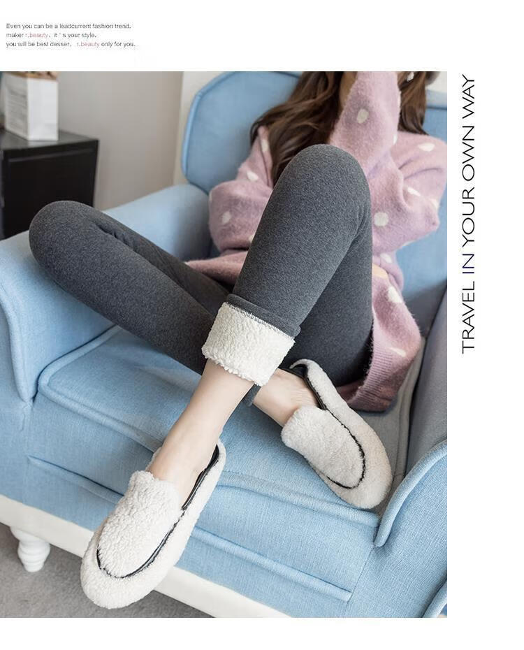 MiiOW 100 wool thermal pants sherpa bottoming for women plus velvet thickening winter outer wear large size high waist slimming dark gray pure/cotton sherpa - L 80-120Jin Jin equals 0.5 kg