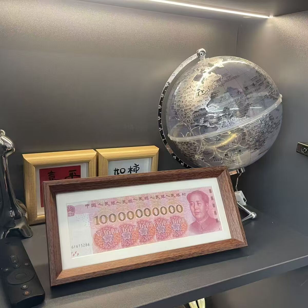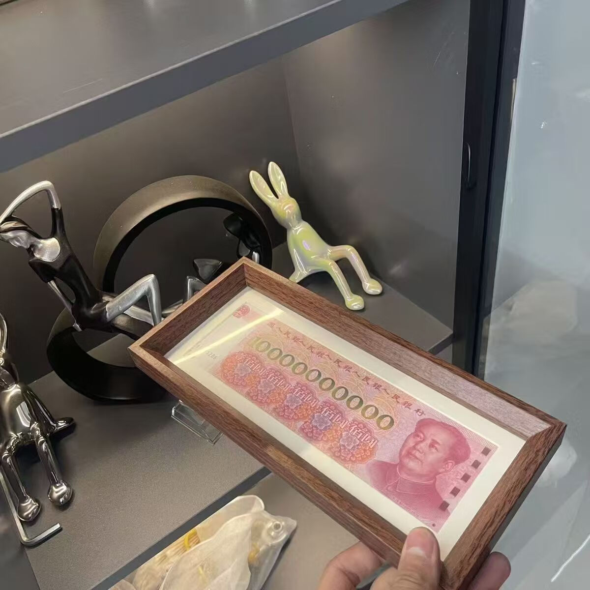 Jin Geyu Ten Billion Photo Frame RMB Photo Frame 10 Billion Coins Creative Money Frame Cash Money Ornament Mao Mao’s Table Walnut Color 1 Pack No Coins 12*28cm