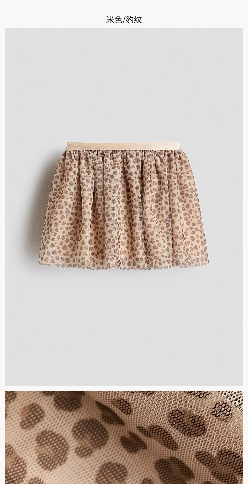 H&M2026 Spring New Children's Clothing Children's Girls Tulle Skirt 1331101 Beige/Leopard Print 150 150/66(10-12Y)