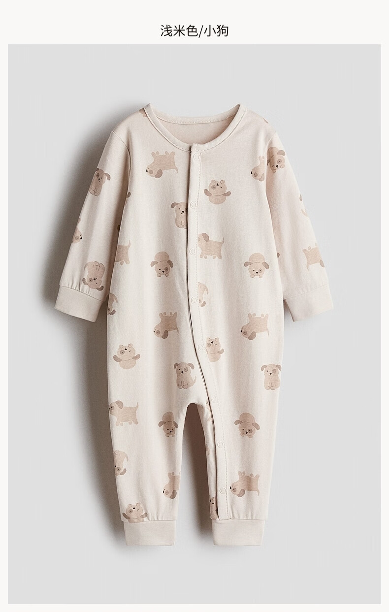 H&M 2026 new spring children's clothing for boys and girls printed one-piece pajamas 1200792 light beige/puppy 90cm 90/52 (1.5-2Y)