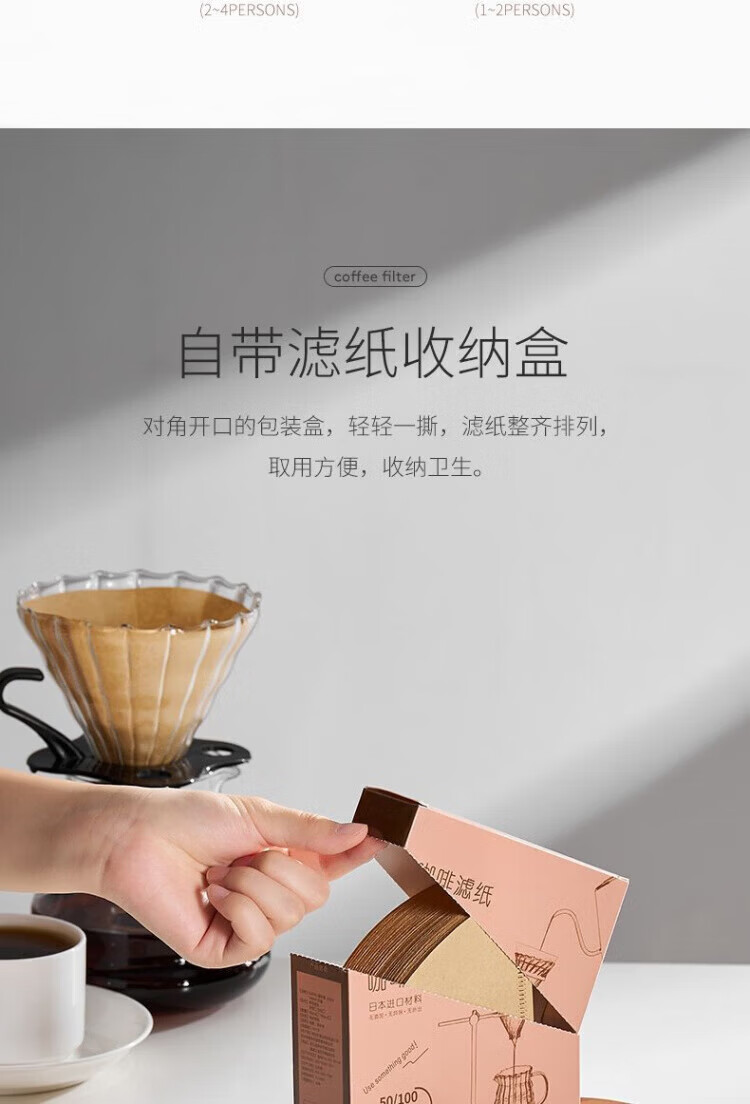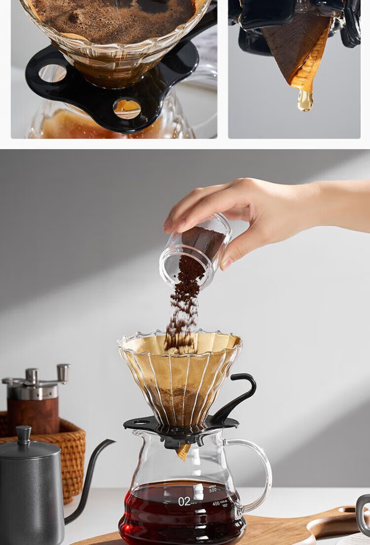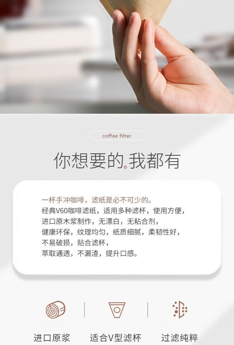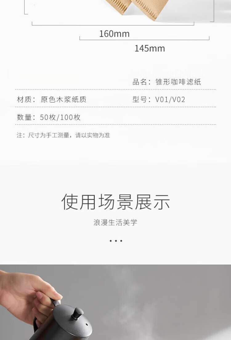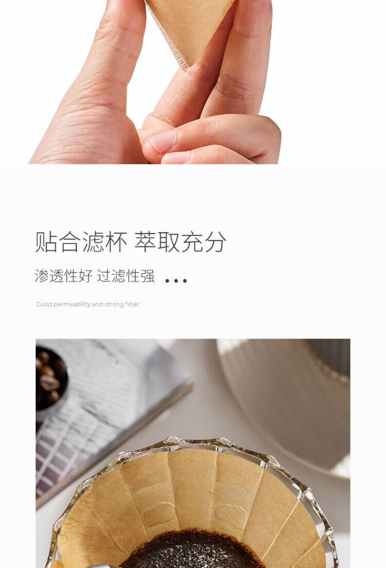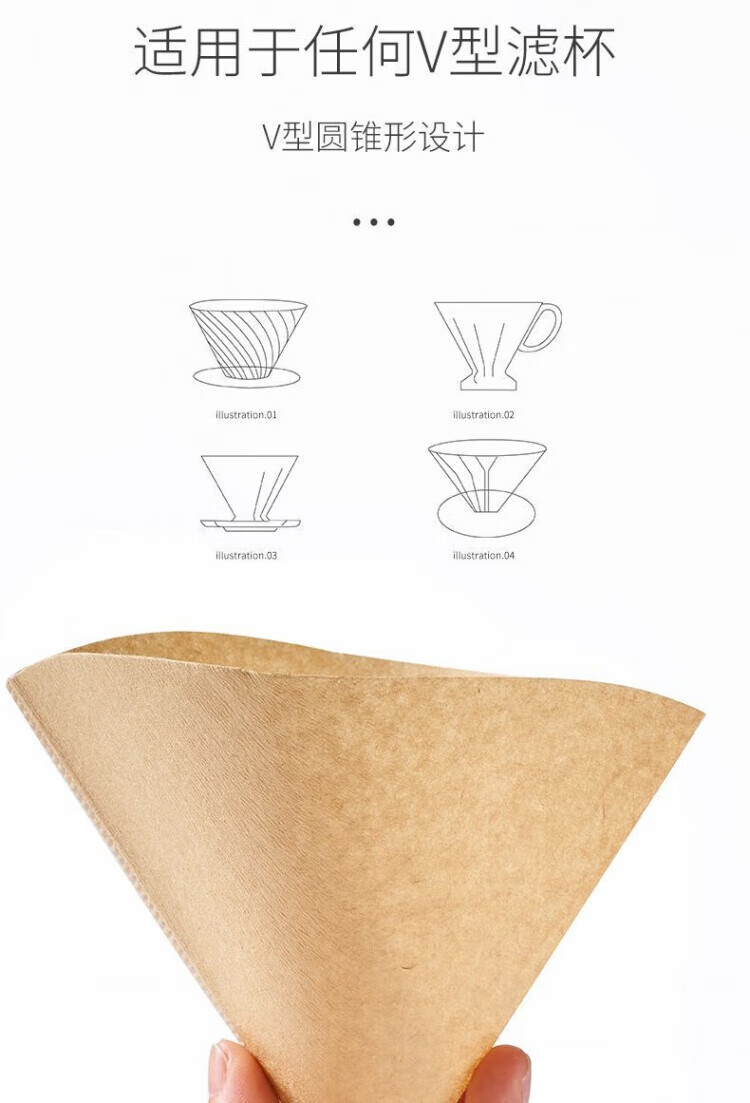 Kaooseen German fan-shaped coffee filter paper disposable hand-drew drip filter paper coffee powder hanging ear filter cup special filter 50 V-shaped small bags (imported raw pulp)
