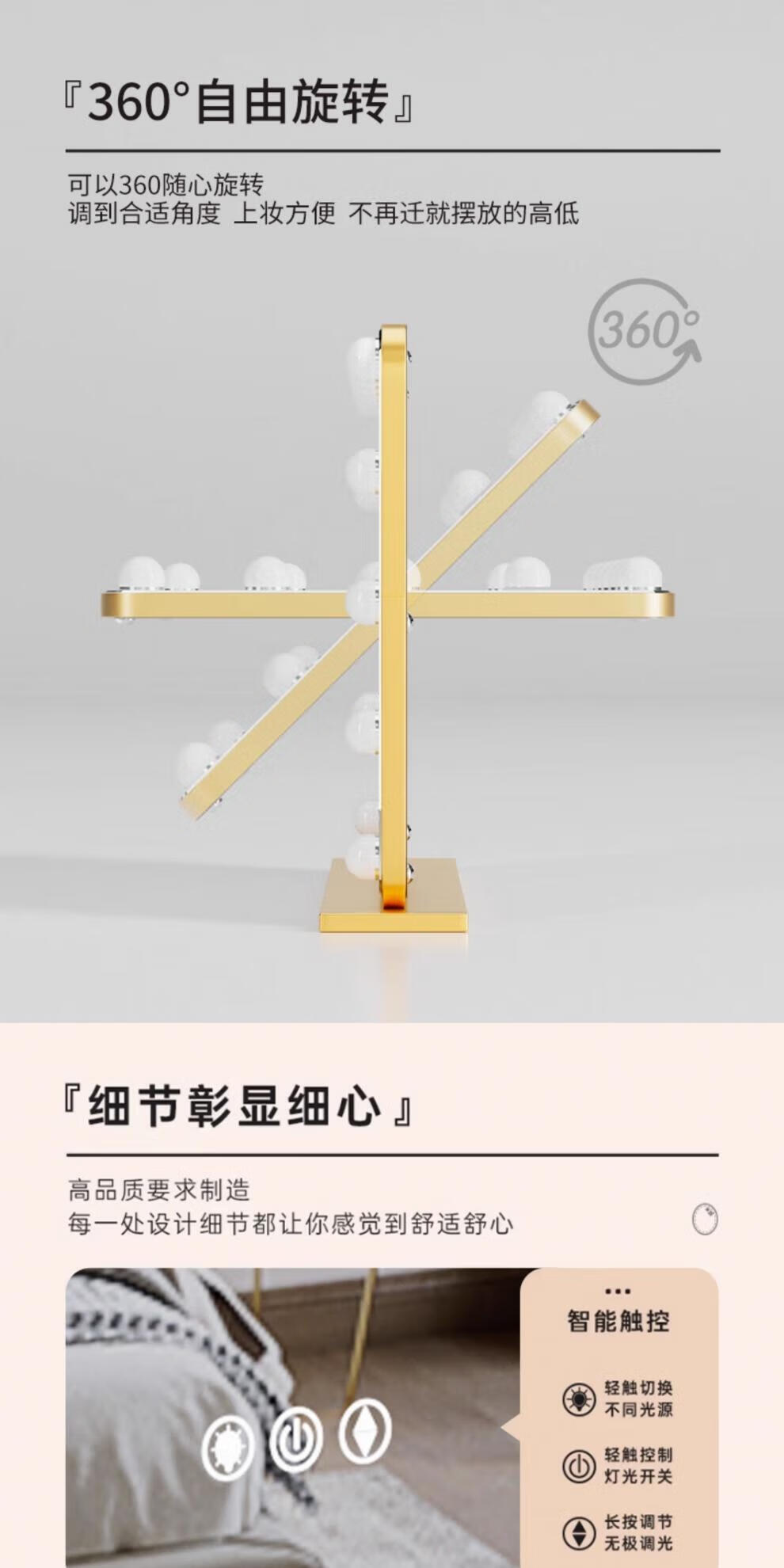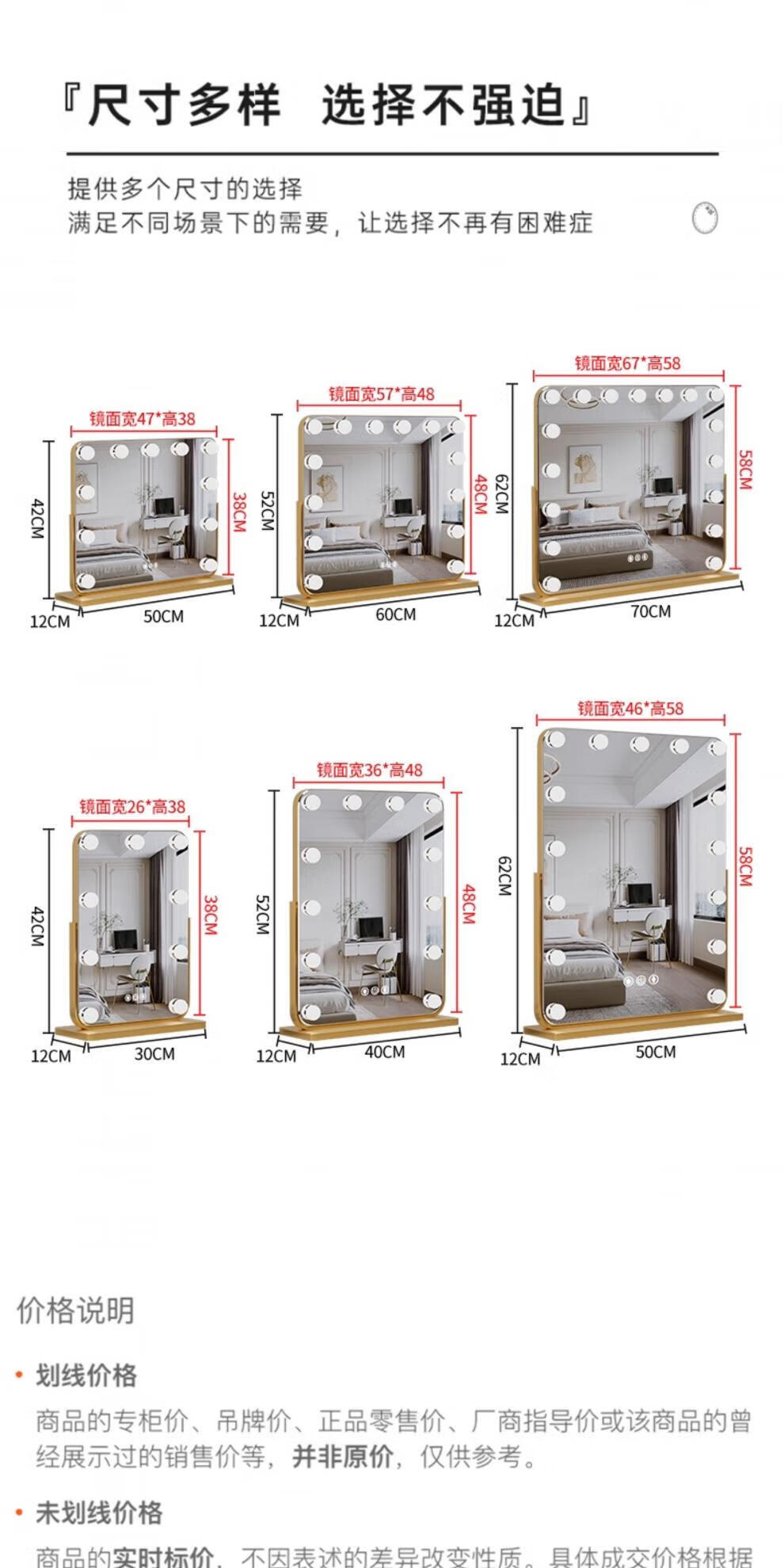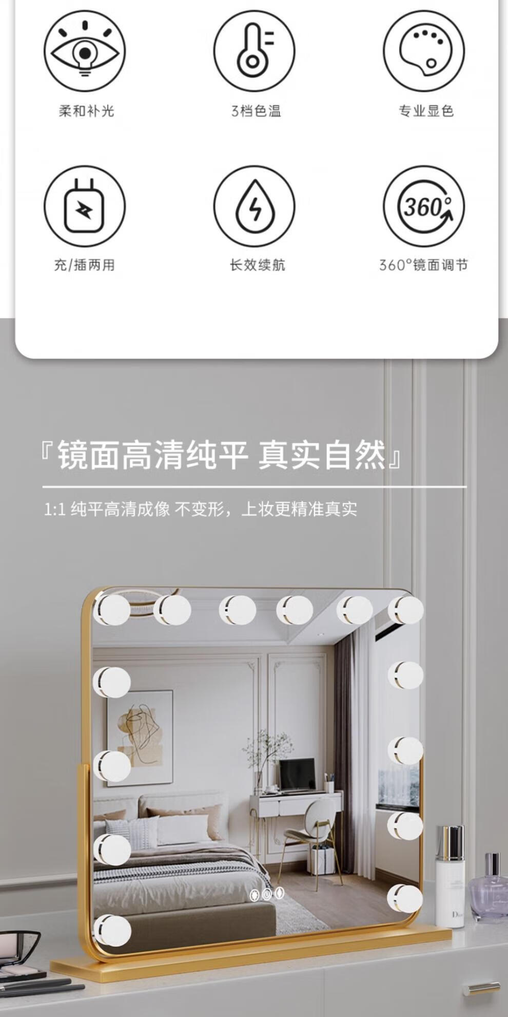 Cosmetic mirror with light desktop desktop LED light bulb square large rotatable rechargeable smart fill-in light vanity mirror horizontal style 60 52 white rechargeable