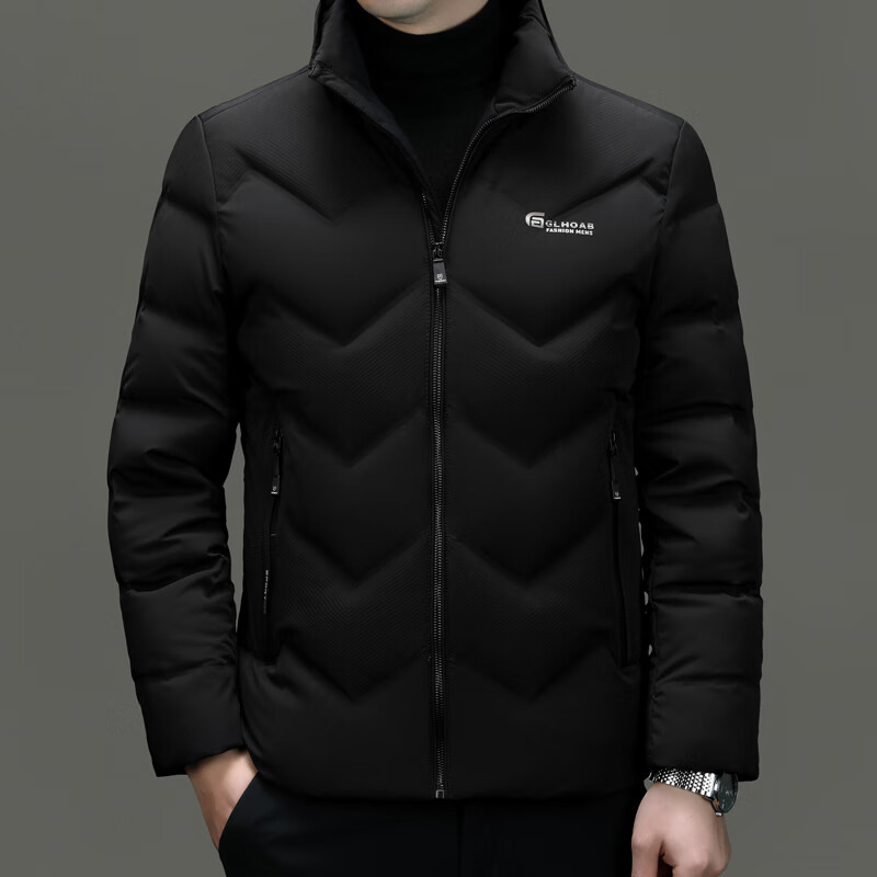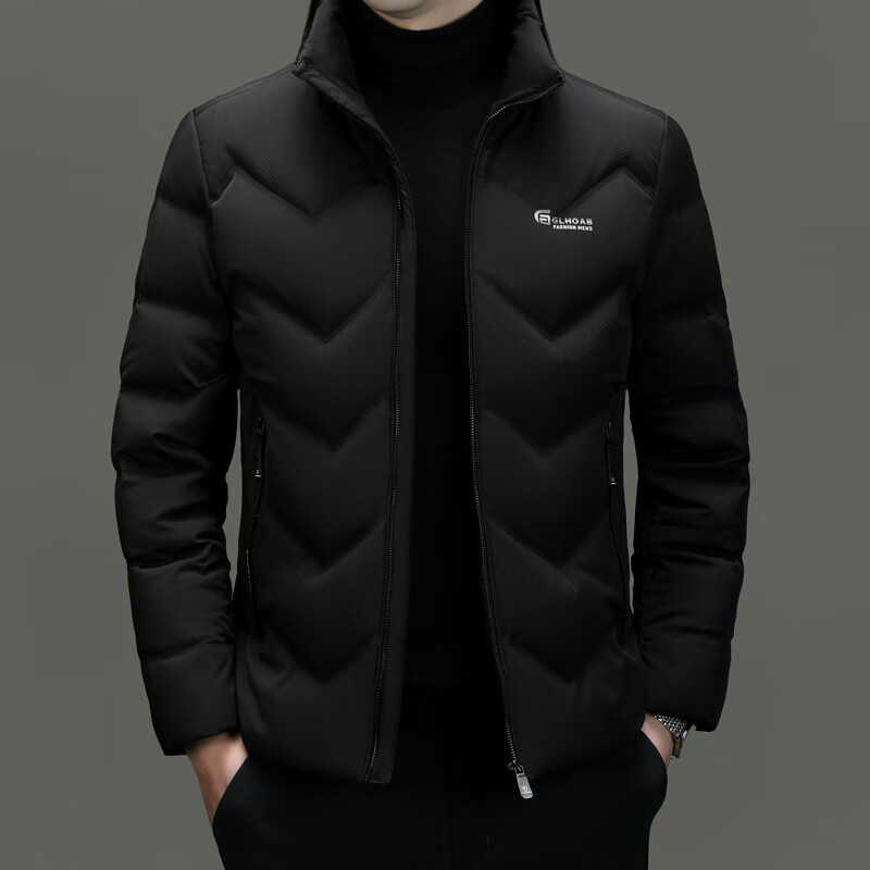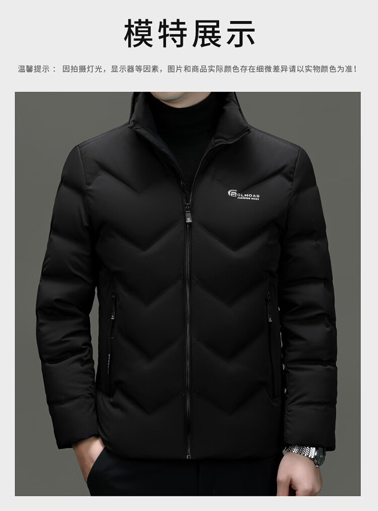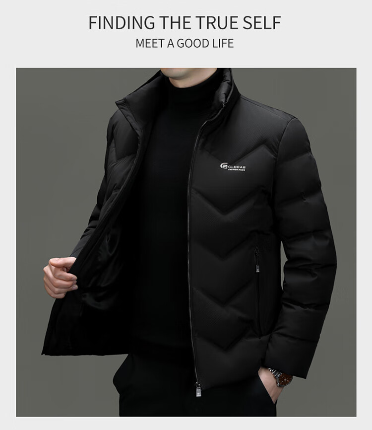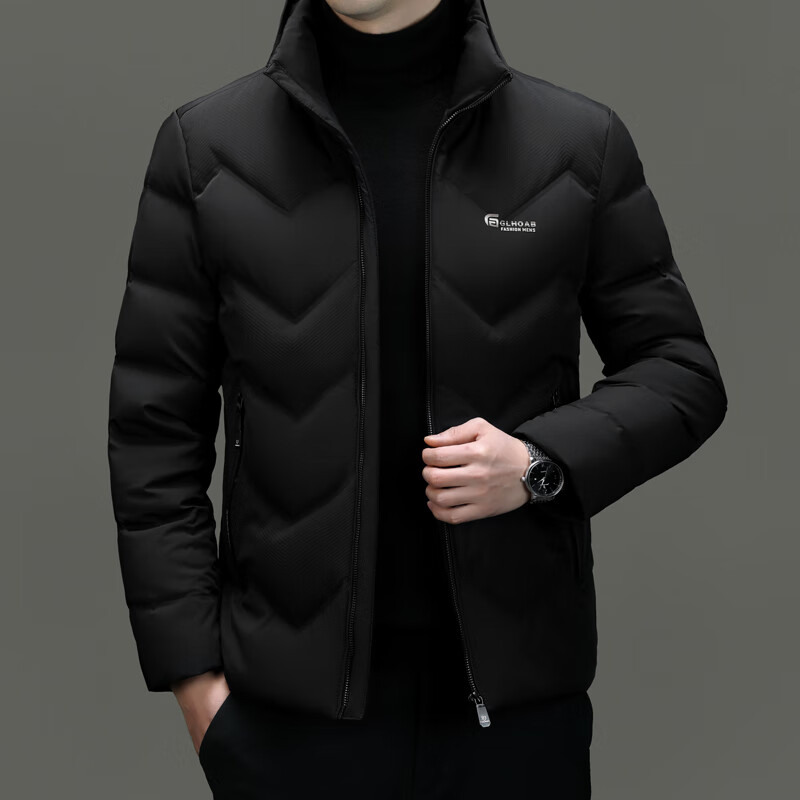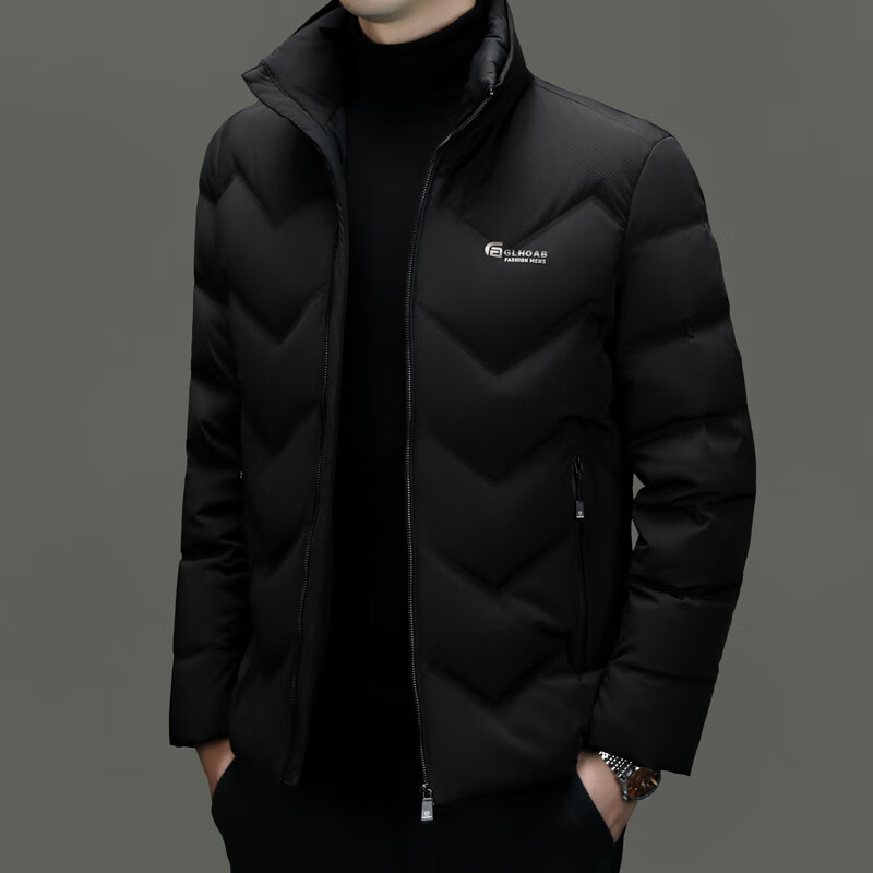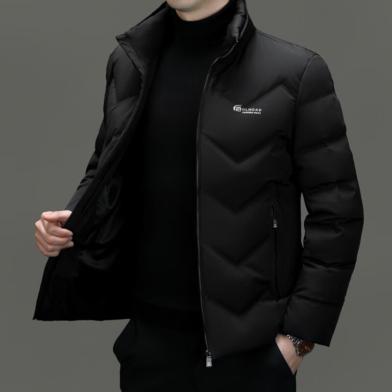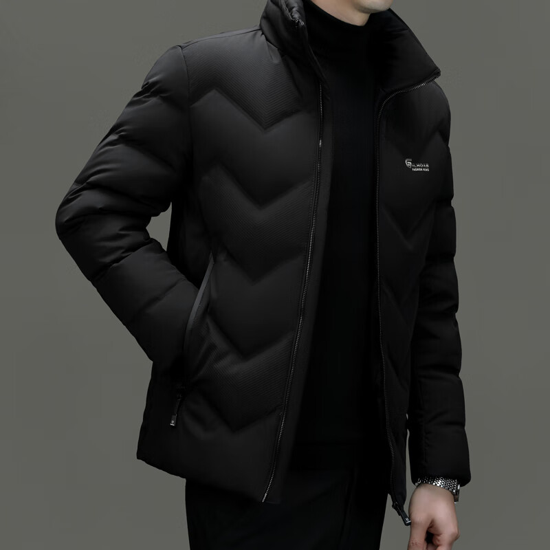 恒源祥轻薄羽绒服男士短款冬季新款加厚保暖白鸭绒休闲外套冬装防寒服 黑色 XL 180