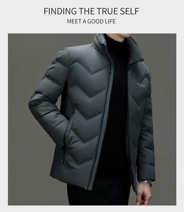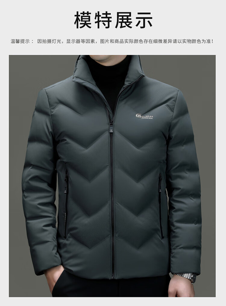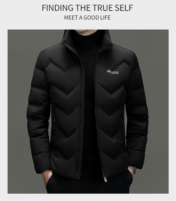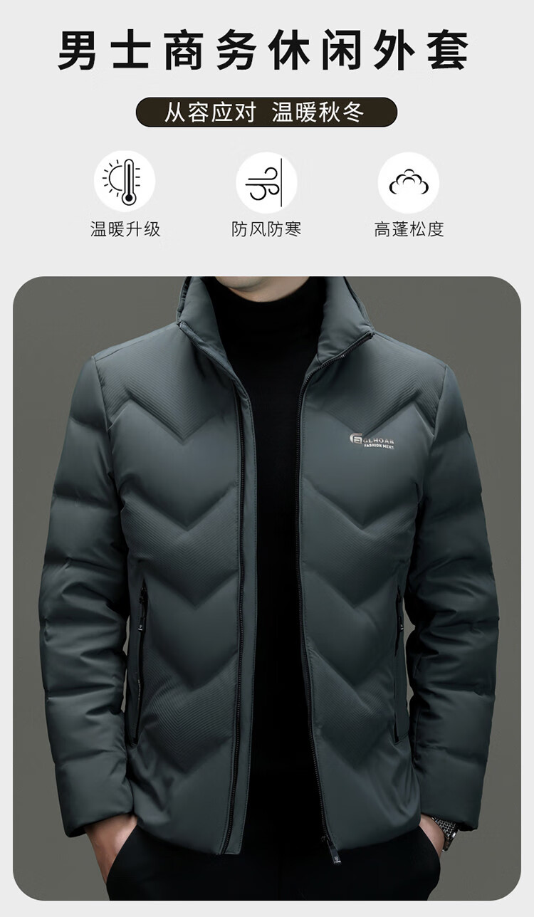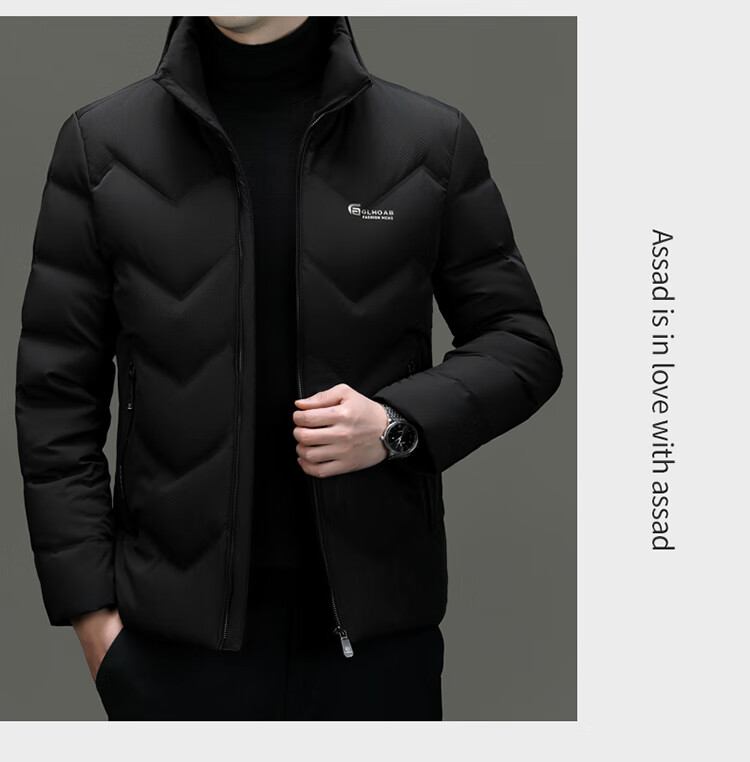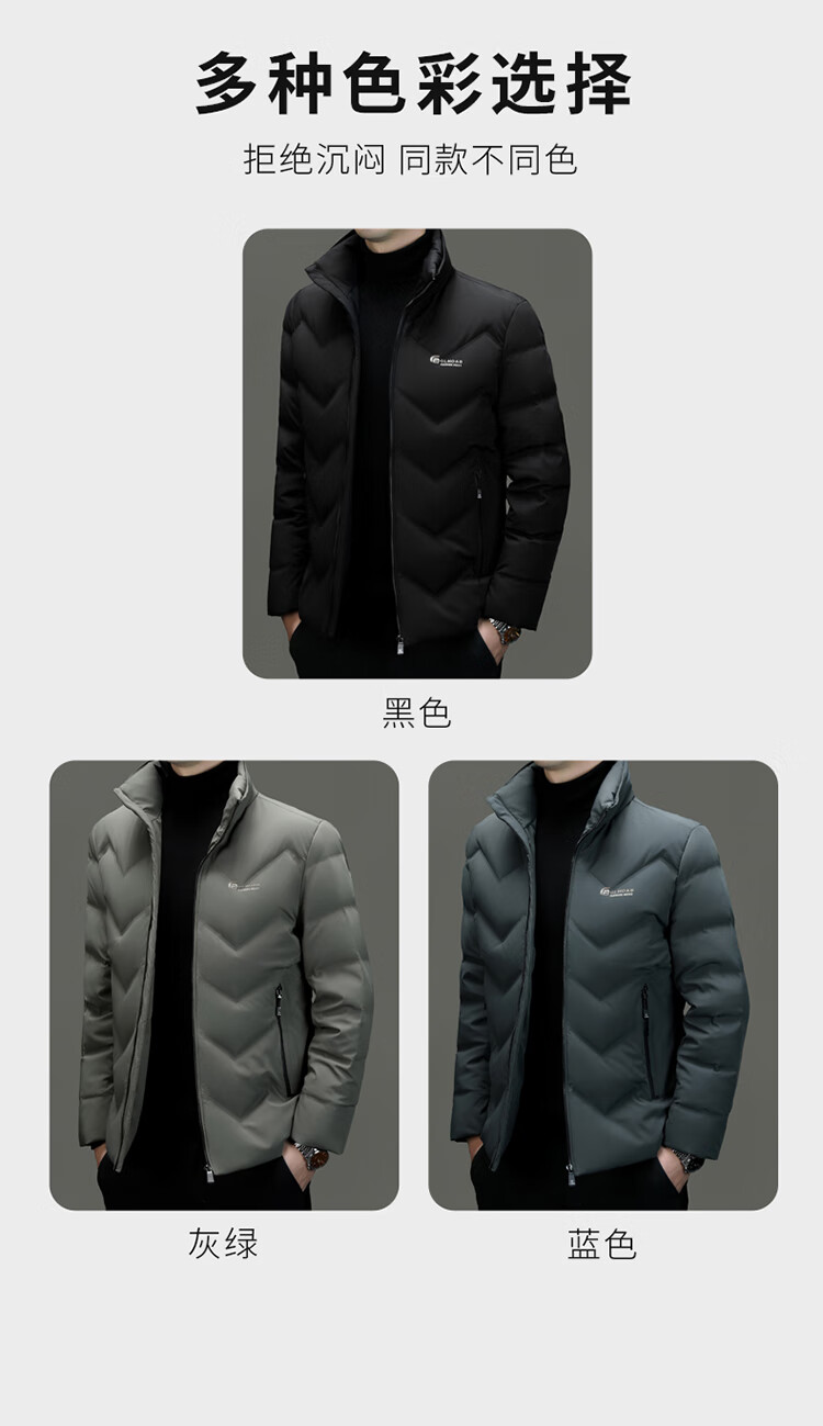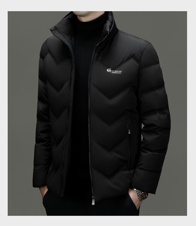 恒源祥轻薄羽绒服男士短款冬季新款加厚保暖白鸭绒休闲外套冬装防寒服 黑色 XL 180