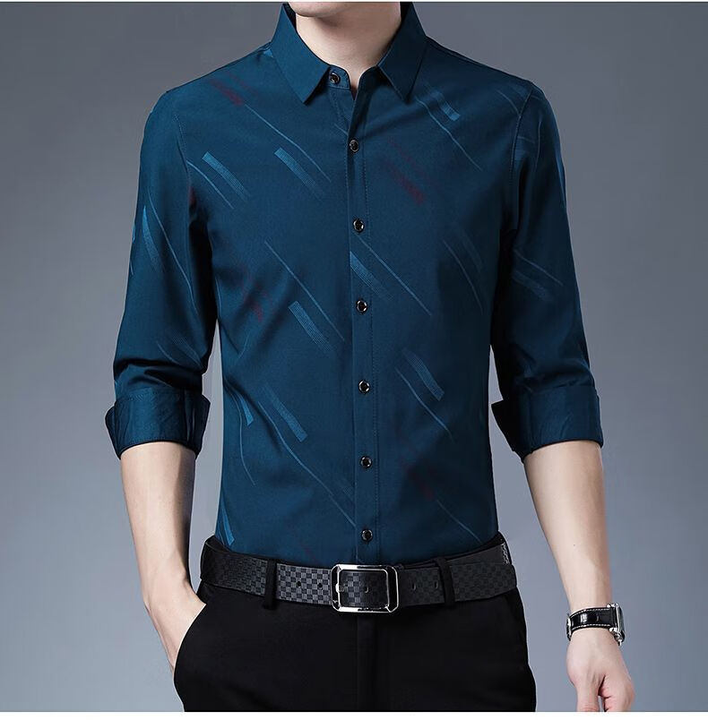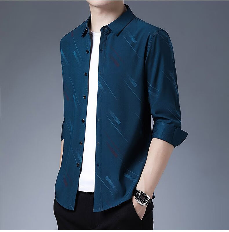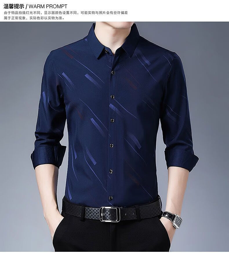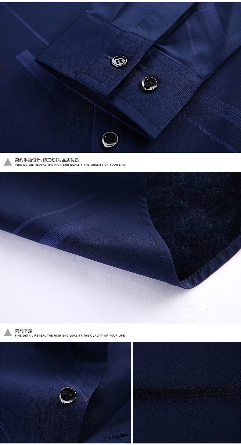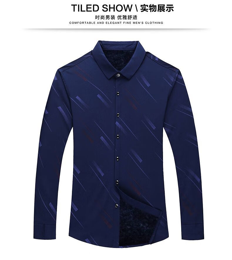 Playboy thickened velvet printed casual shirt men's long-sleeved autumn and winter business ironing-free shirt for young and middle-aged men's men's navy blue flower-170 plus velvet L 170 recommended 120-135Jin Jin equals 0.5 kg to wear