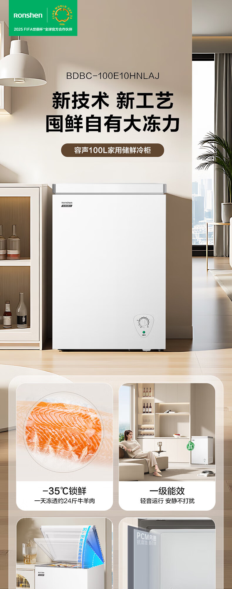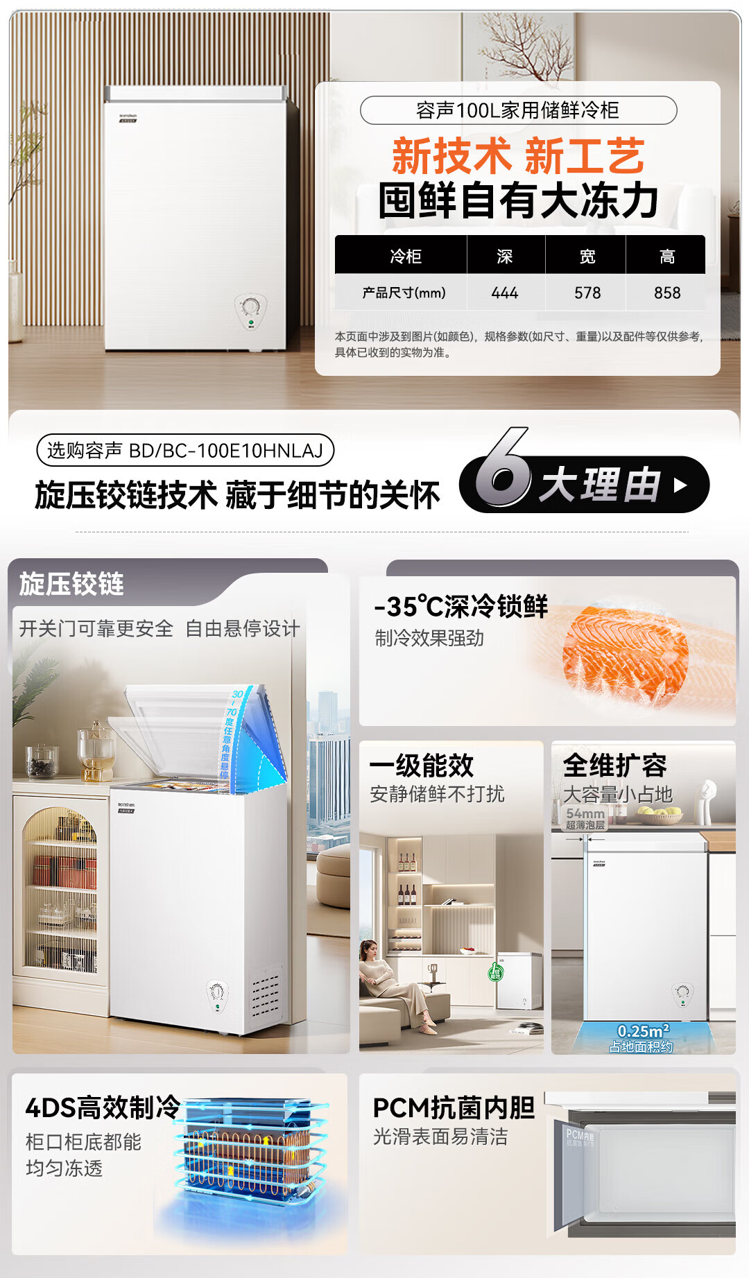 Rongsheng Hisense Microfrost 100L single-temperature household freezer PCM antibacterial liner deep-freeze fresh-keeping First-class energy efficiency energy-saving freezer BD/BC-100E10HNLAJ Trade-in subsidy BD/BC-100E10HNLAJ 100L