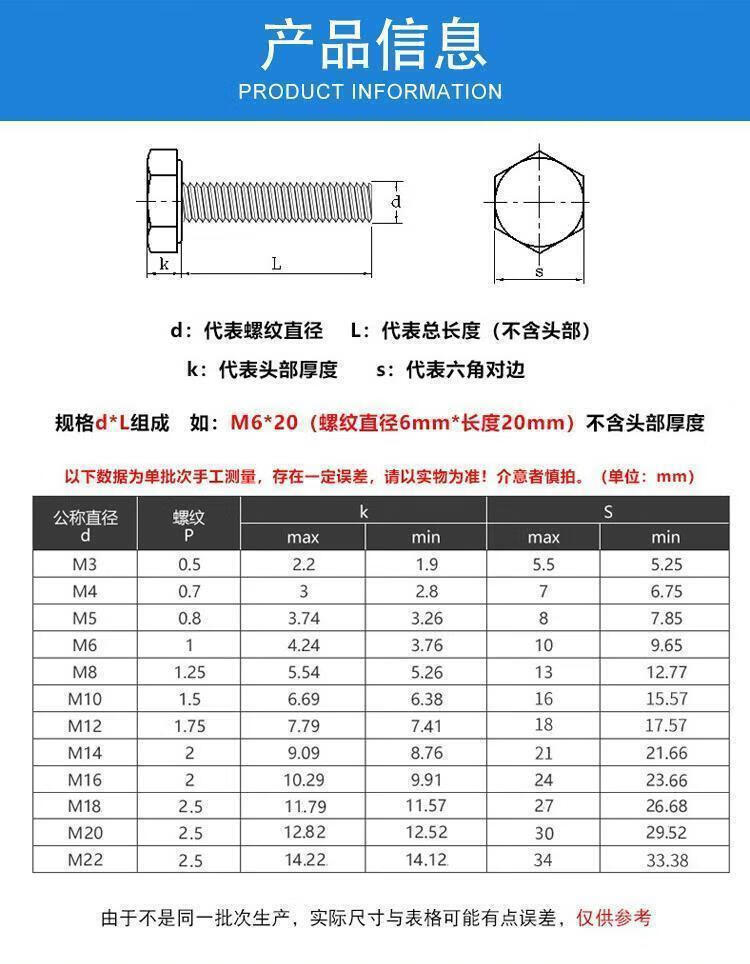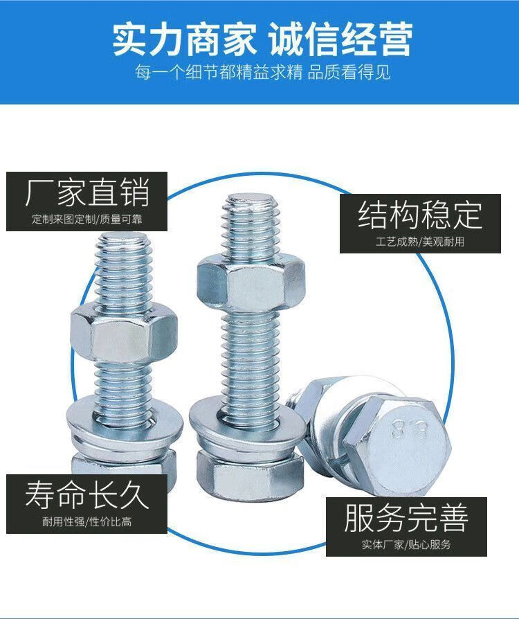 Vinoa 4.8 grade electro-galvanized external hexagonal bolt and nut set GB5782/GB5783 screw and nut combination M6-24 16*120 (18 sets)