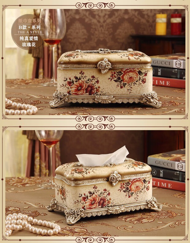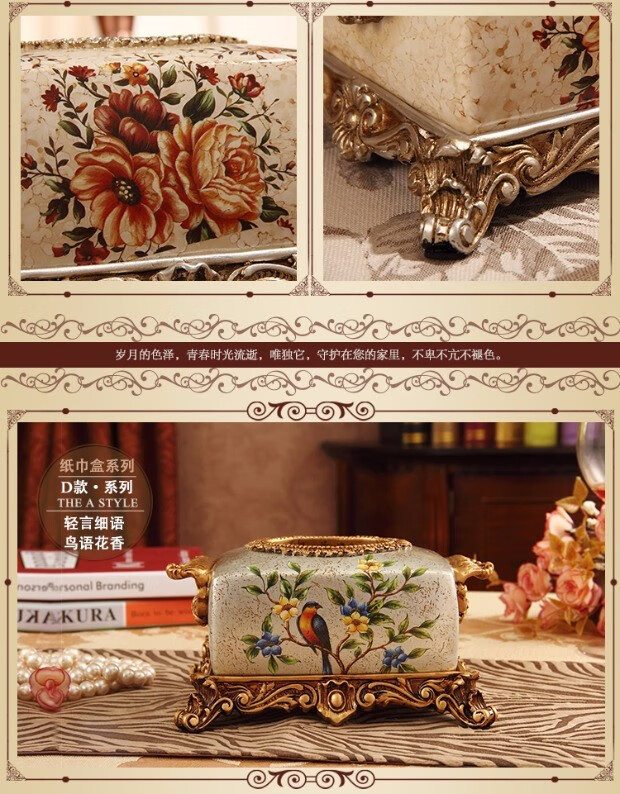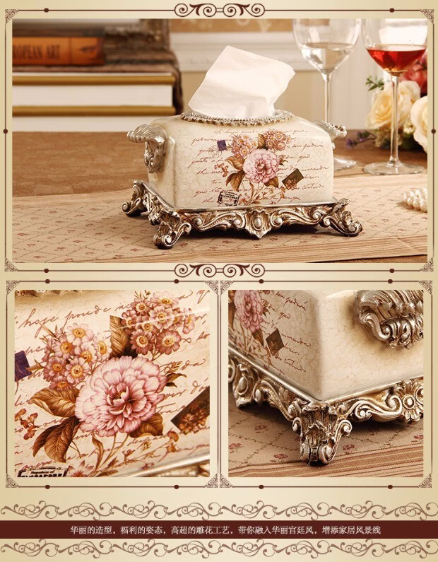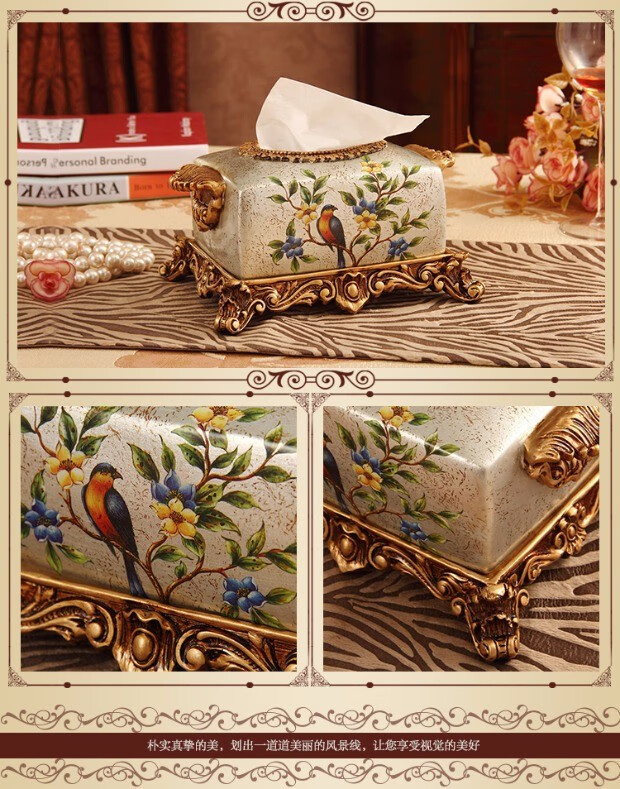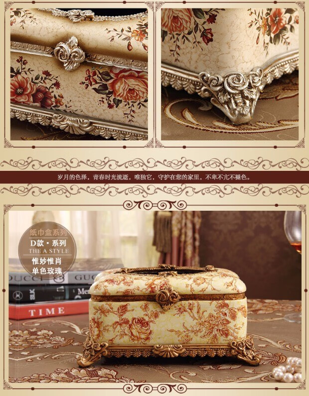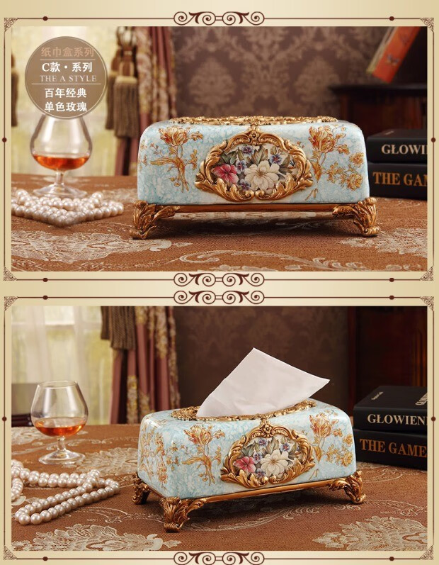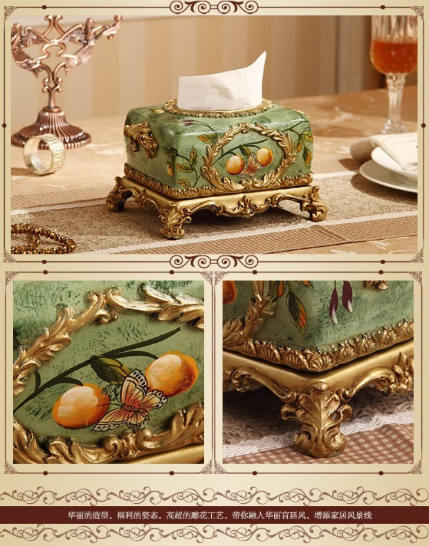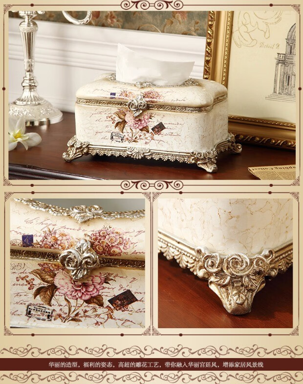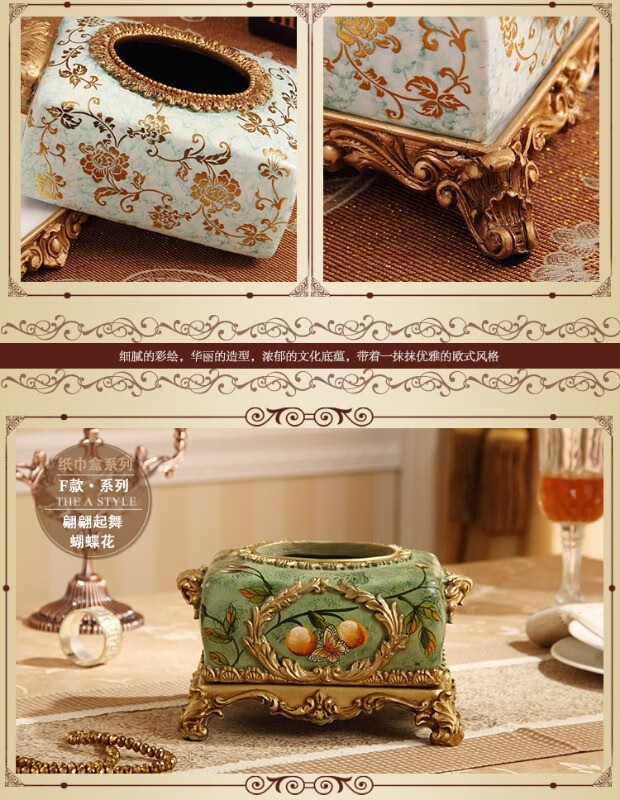 RSRDDY Zhanhong Craft European Retro Resin Tissue Box American Home Desktop Napkin Box Storage Ornament Decoration Blue Wood Grain Tissue Box
